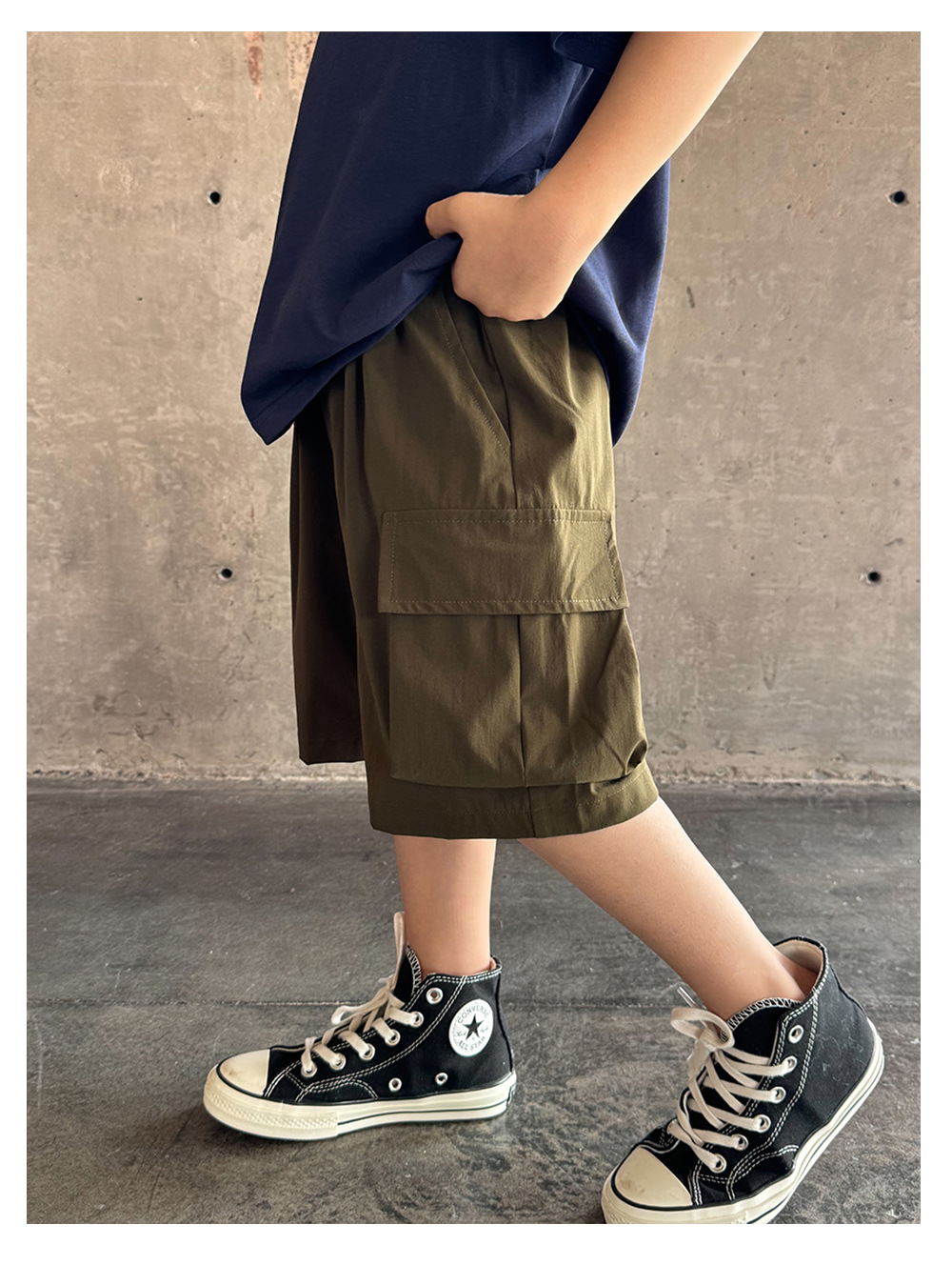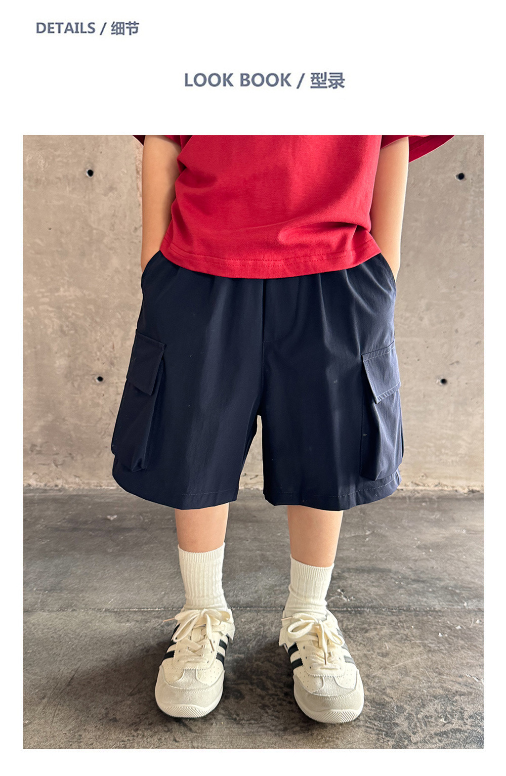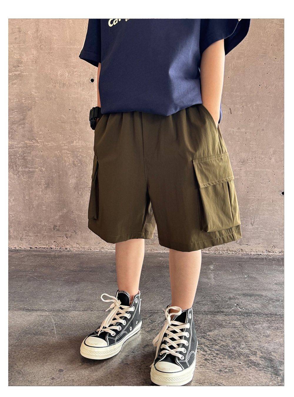 2025 새로운 여름 스타일 중간 바지 미국 스타일 느슨한 작업복 어린이 캐주얼 바지 야외 속건 소년 반바지