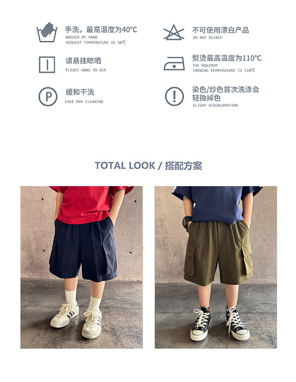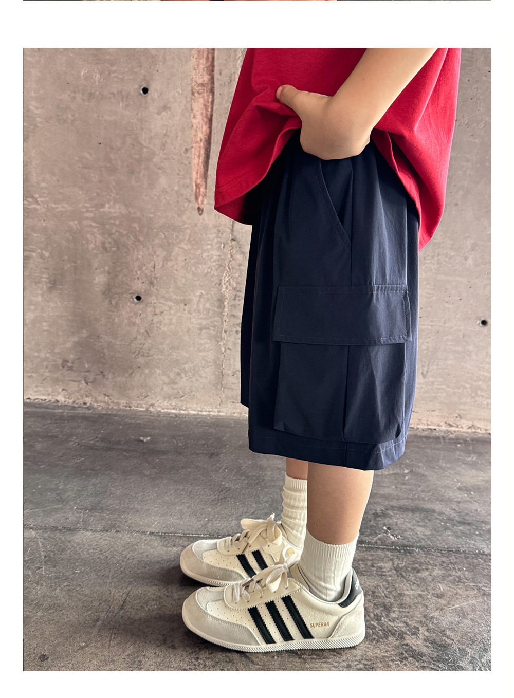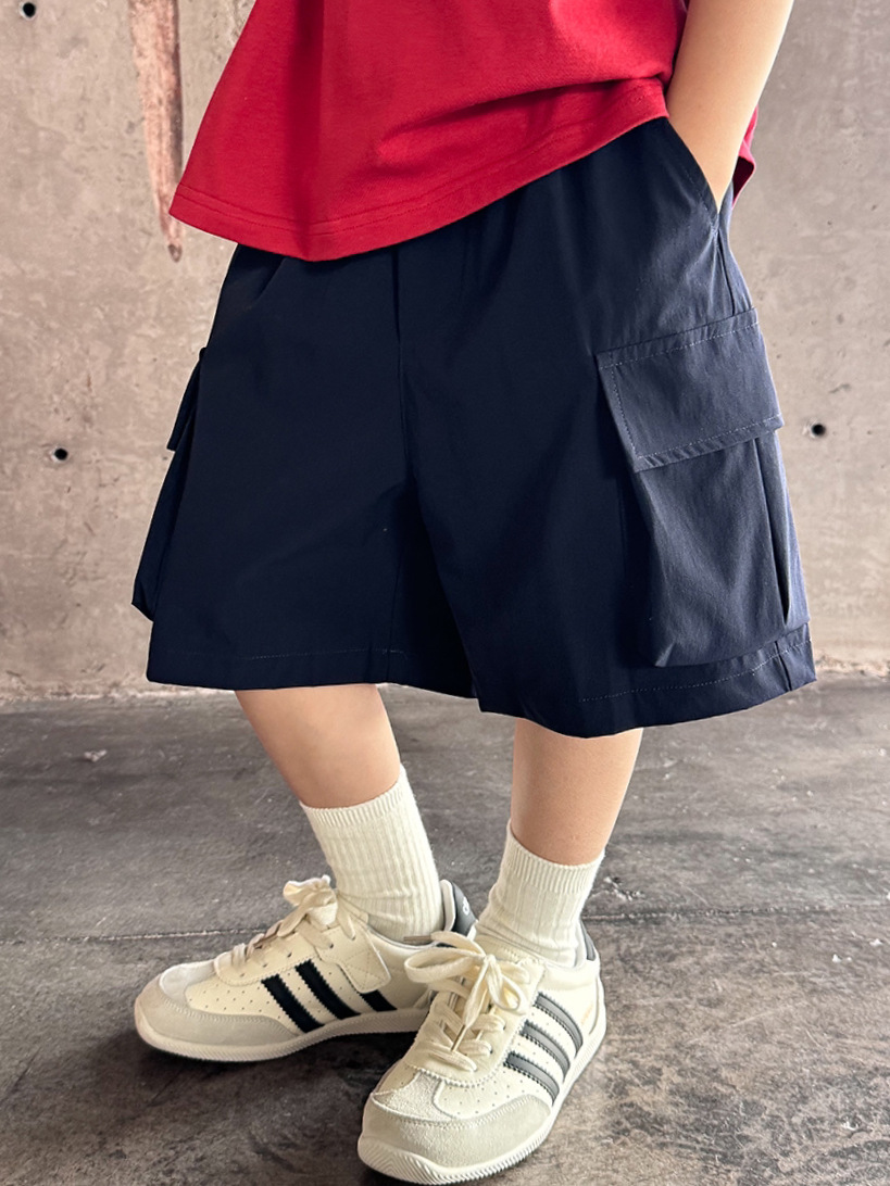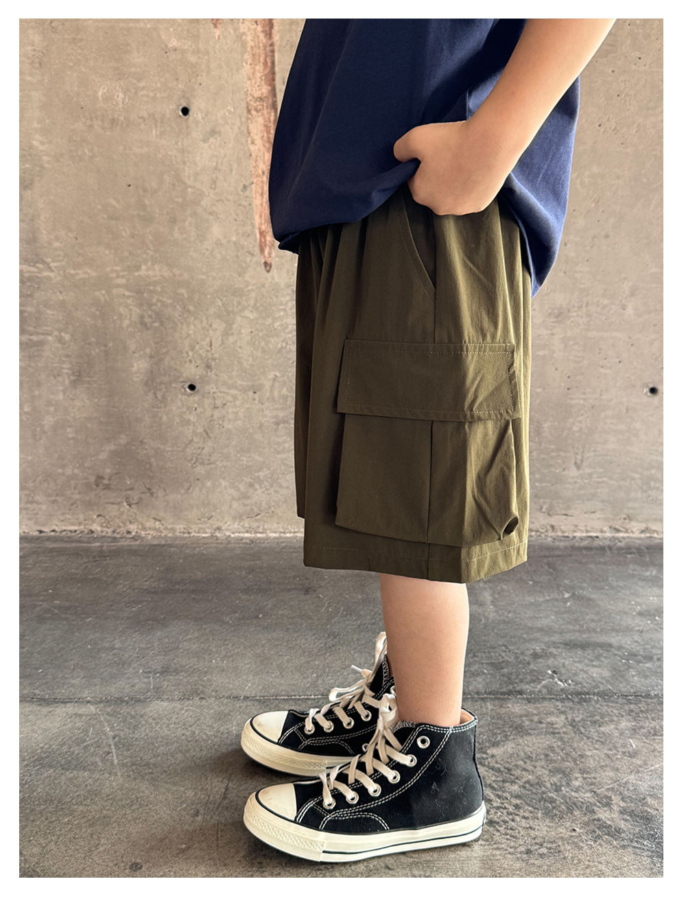 2025 새로운 여름 스타일 중간 바지 미국 스타일 느슨한 작업복 어린이 캐주얼 바지 야외 속건 소년 반바지
