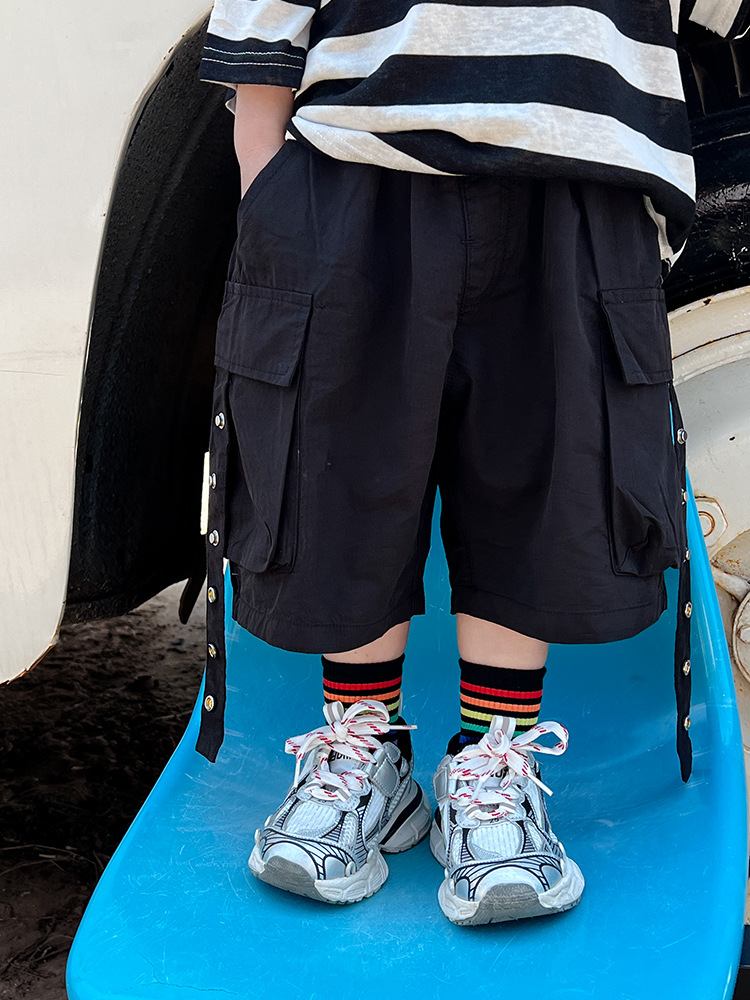 두꺼운 아동복 어린이 작업 반바지 2025 여름 새로운 아기 캐주얼 바지 소년 패션 잘 생긴 바지