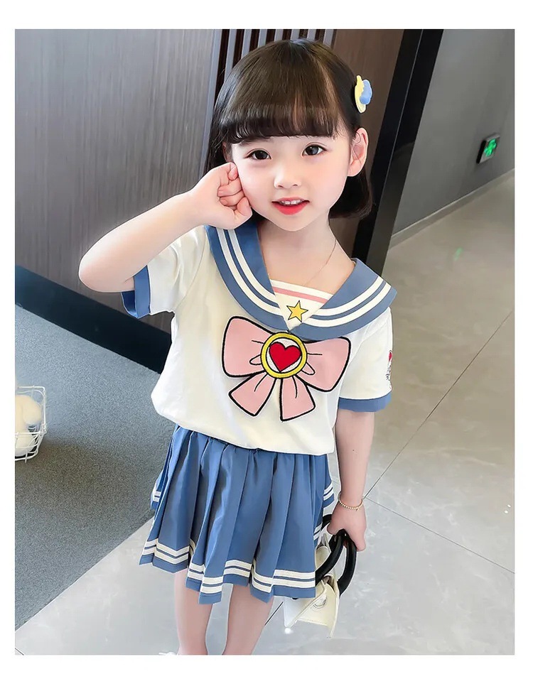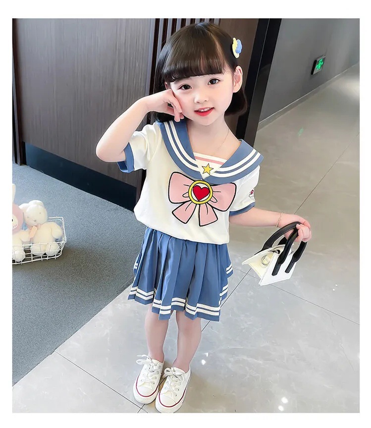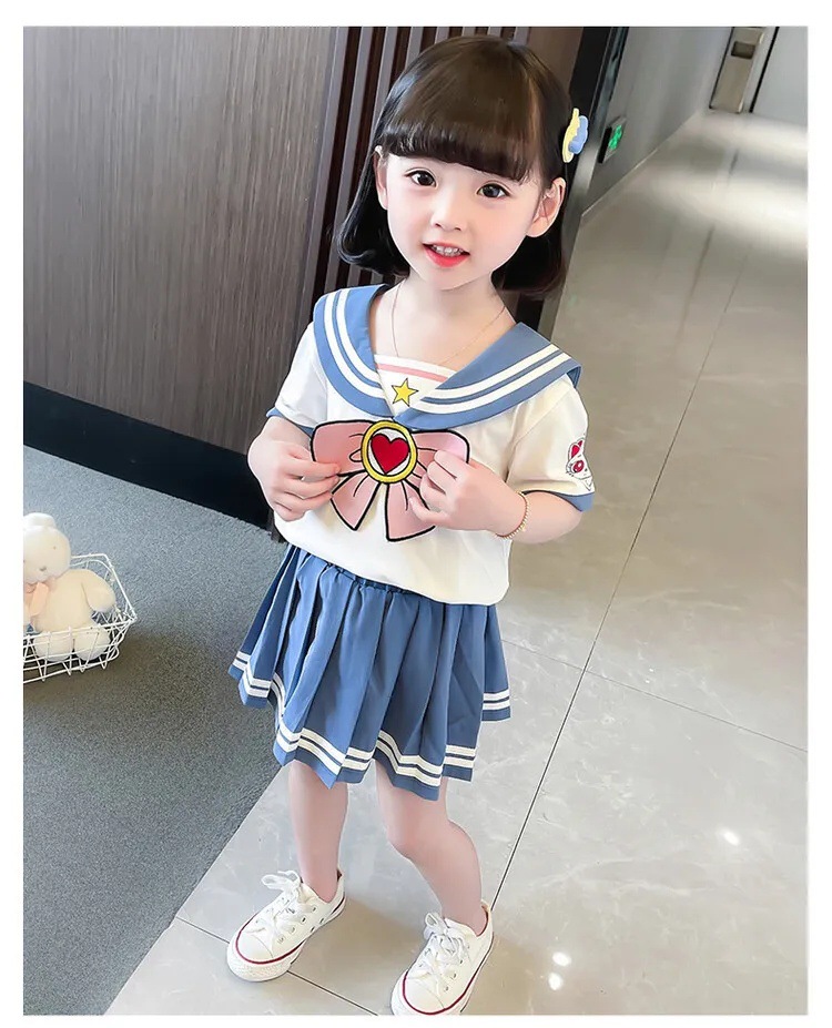 여자 여름 착용 아카데미 스타일 세트 주름 치마 어린이 착용 여름 원피스 소녀 아기 2 조각 유행 세트