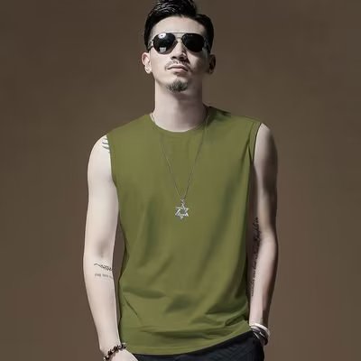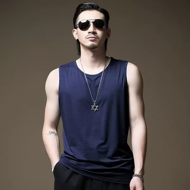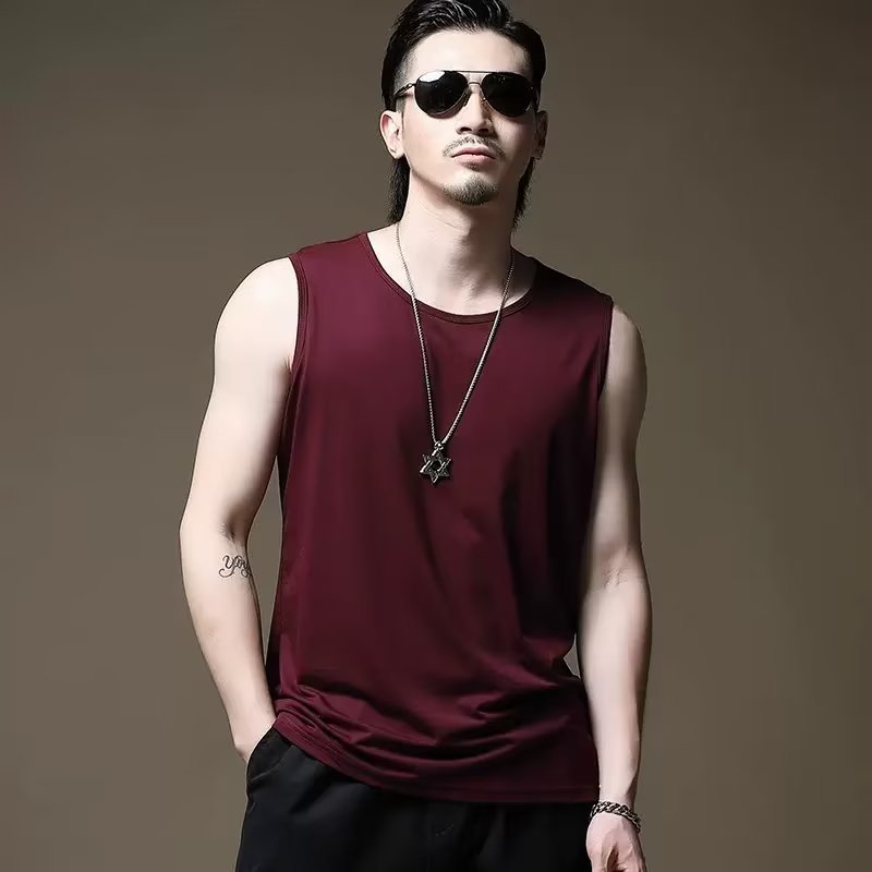 [직접 판매] 모달 민소매 조끼 남성용 라운드 넥 조끼 여름 얼음 실크 통기성 스포츠 피트니스 반팔