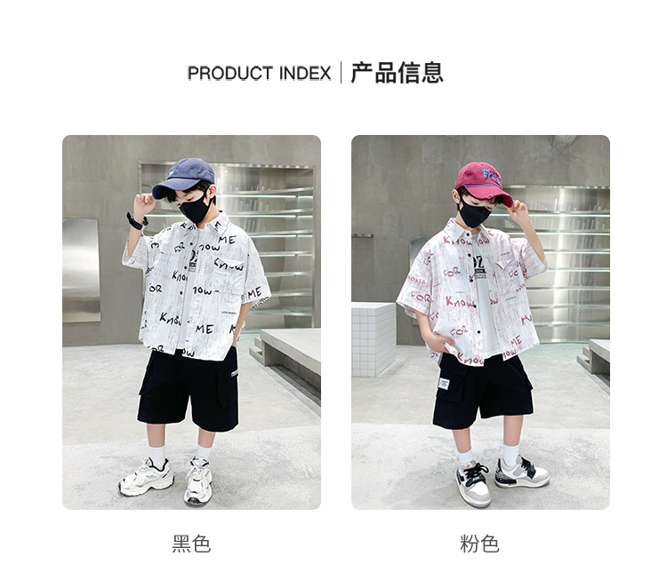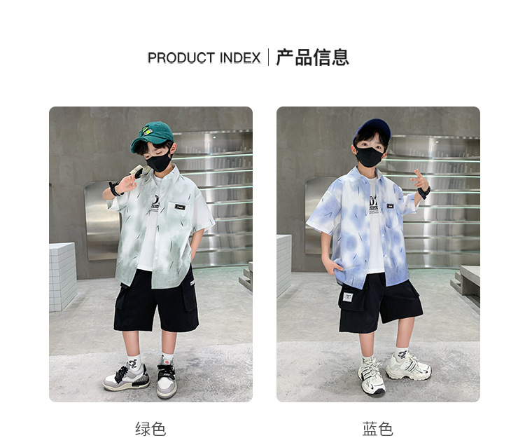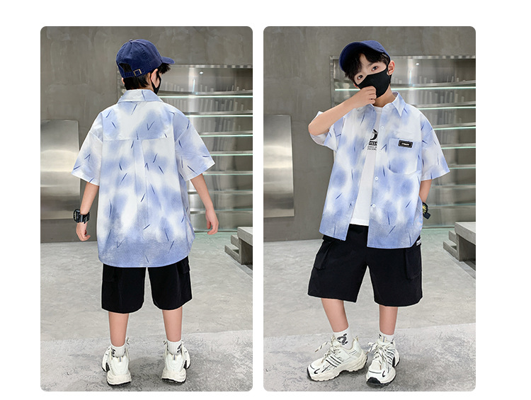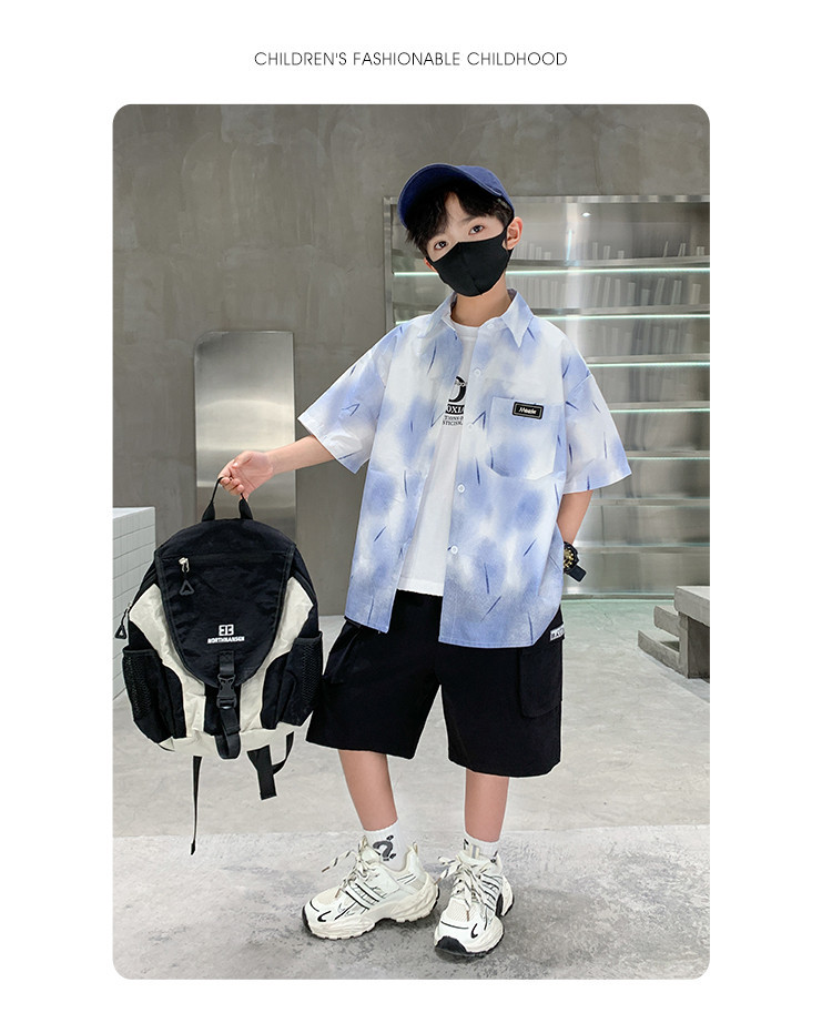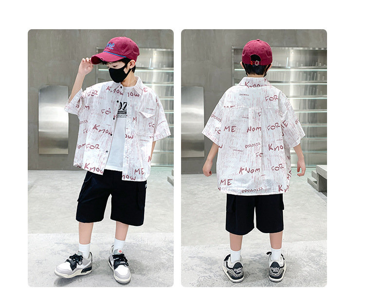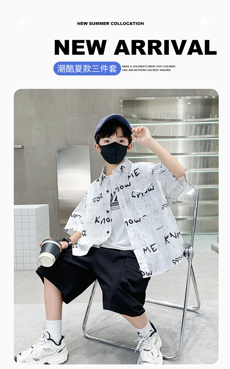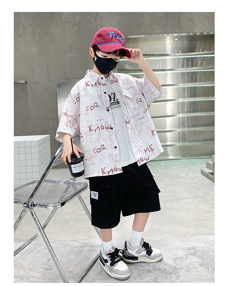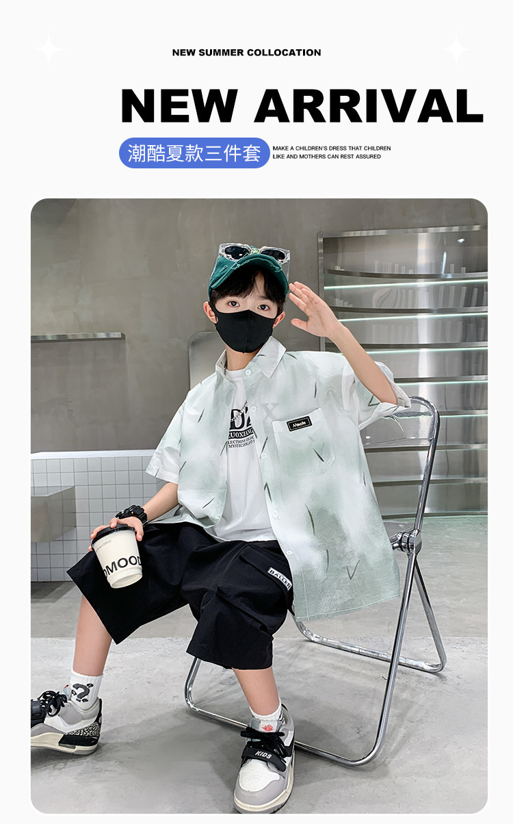 소년 여름 셔츠 2025 새로운 여름 중대형 어린이 소년 여름 스타일 반팔 셔츠 3 피스 세트스토어 가기