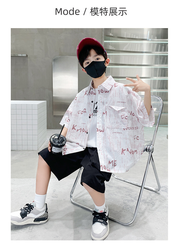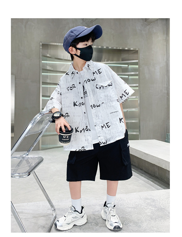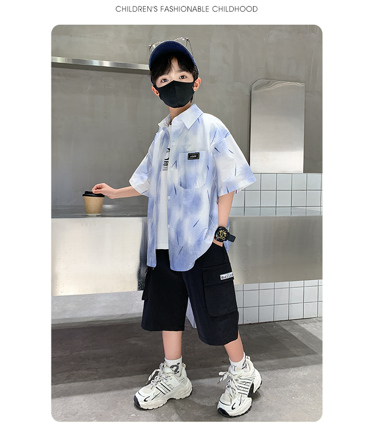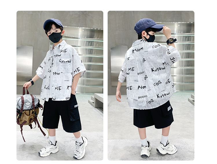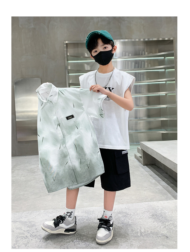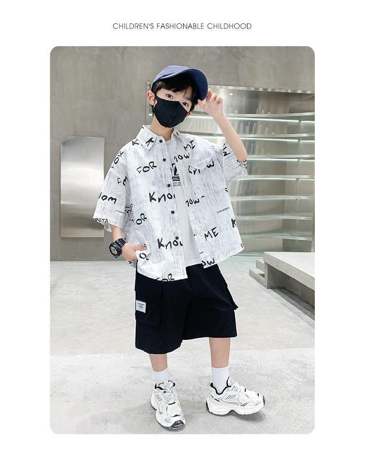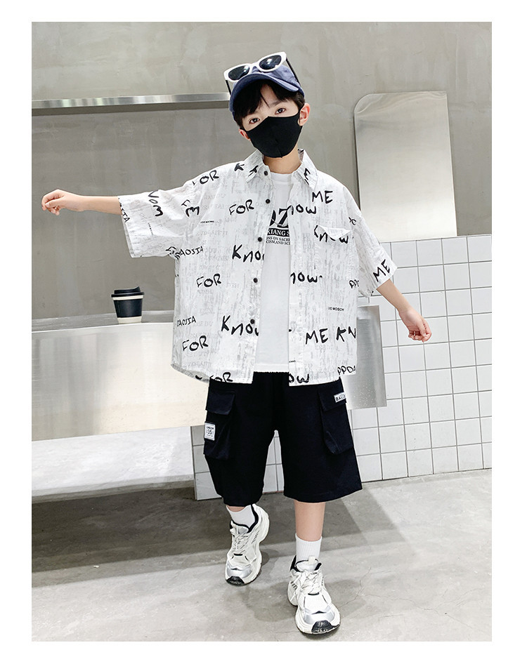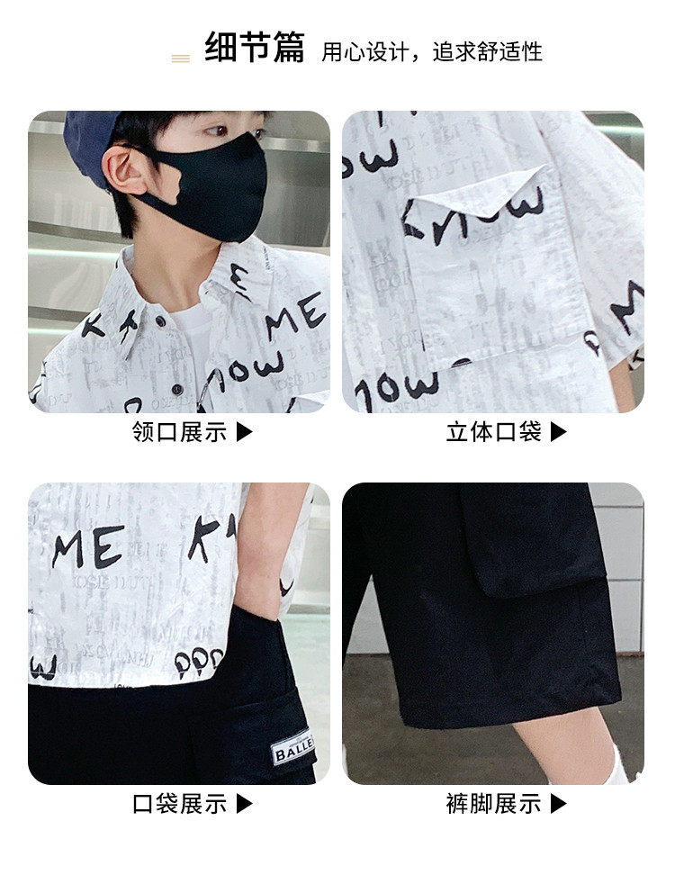 소년 여름 셔츠 2025 새로운 여름 중대형 어린이 소년 여름 스타일 반팔 셔츠 3 피스 세트스토어 가기