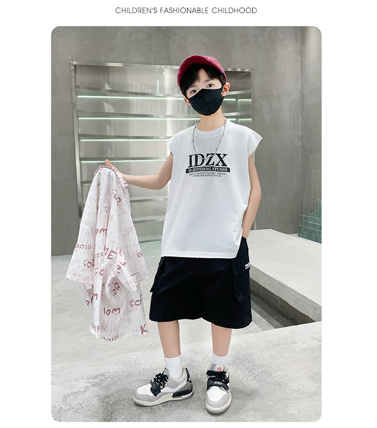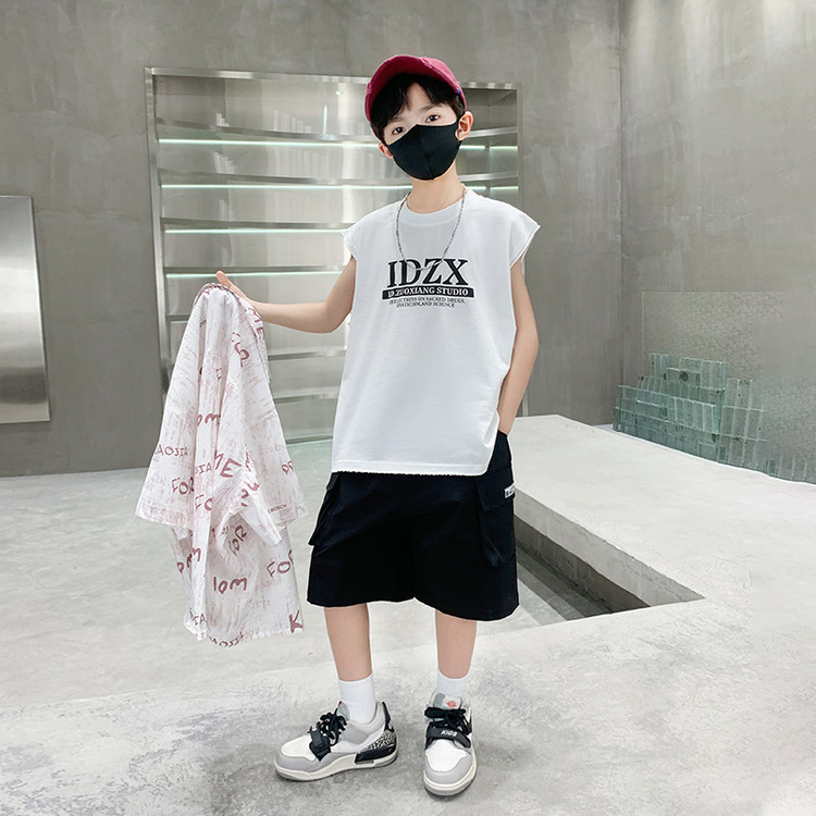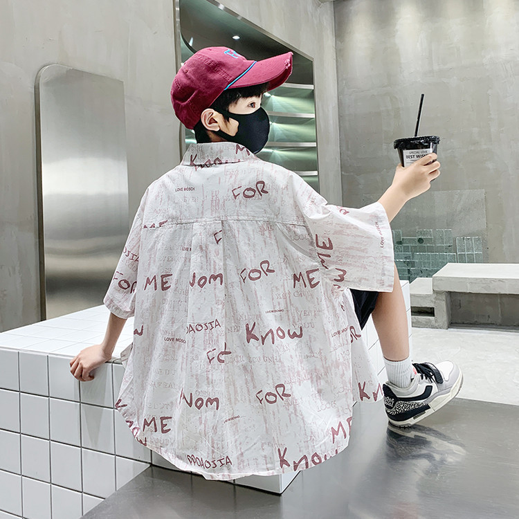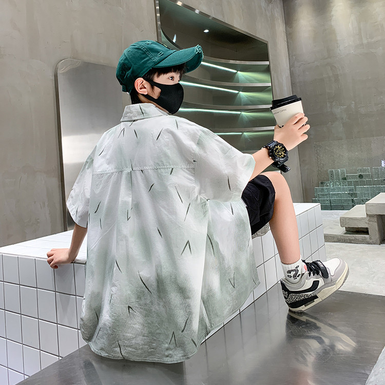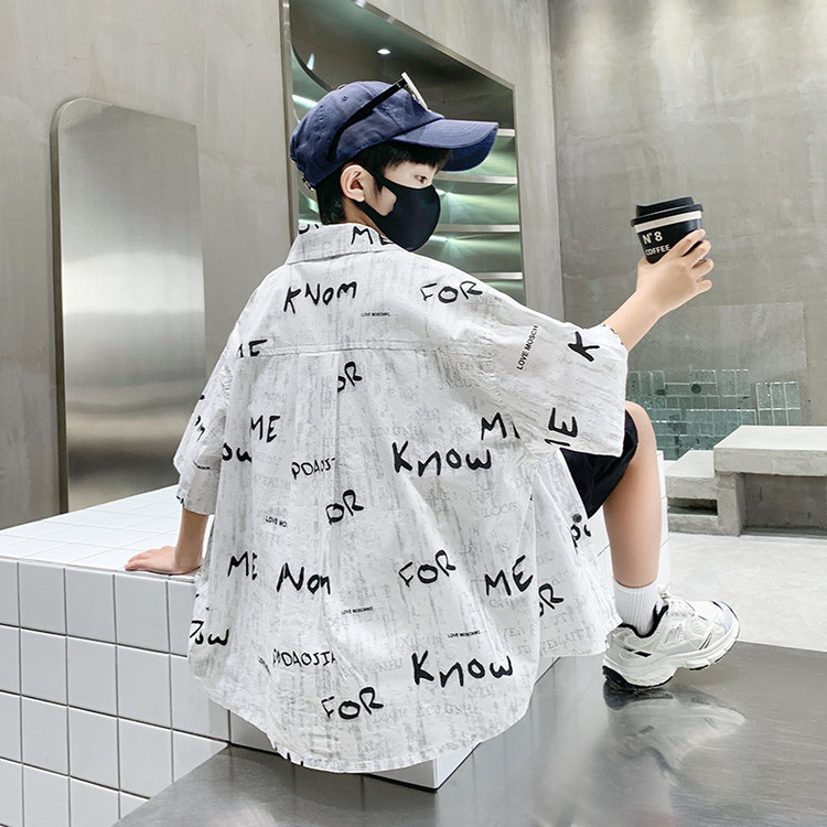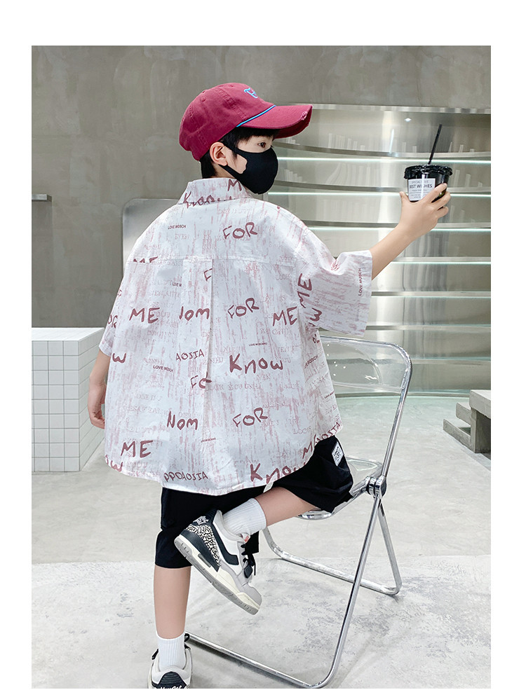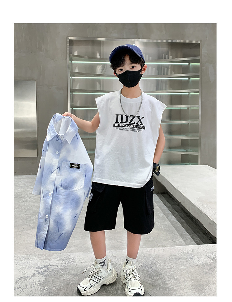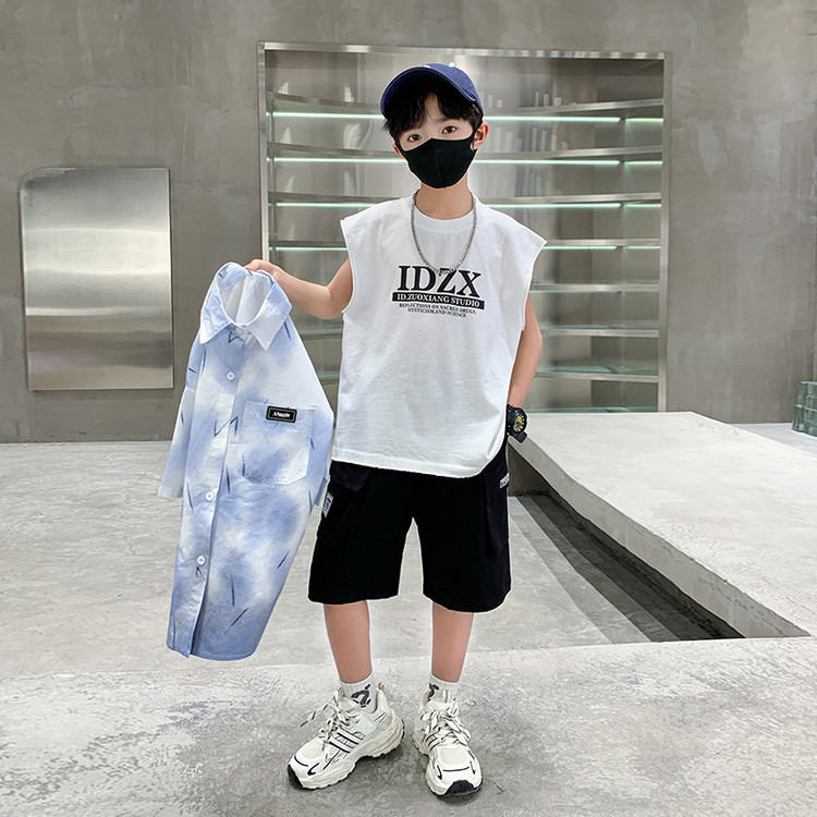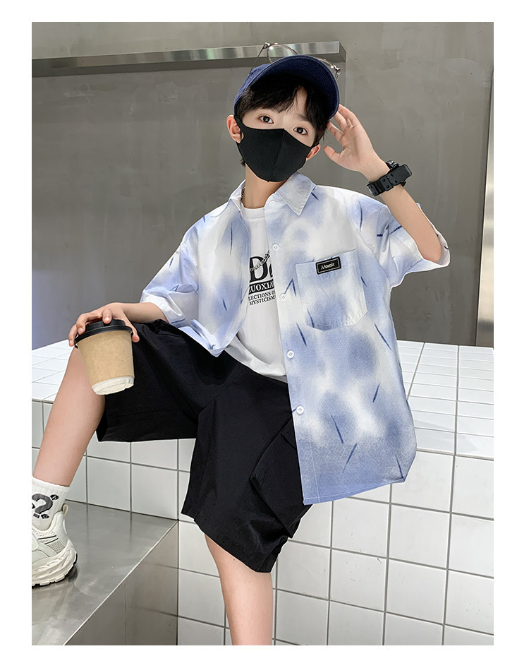 소년 여름 셔츠 2025 새로운 여름 중대형 어린이 소년 여름 스타일 반팔 셔츠 3 피스 세트스토어 가기
