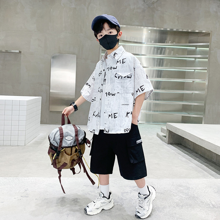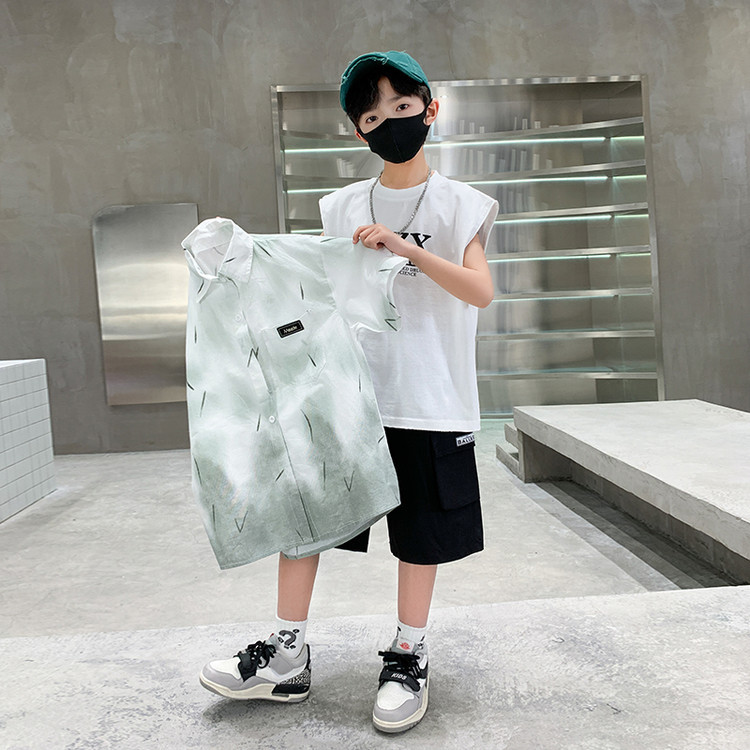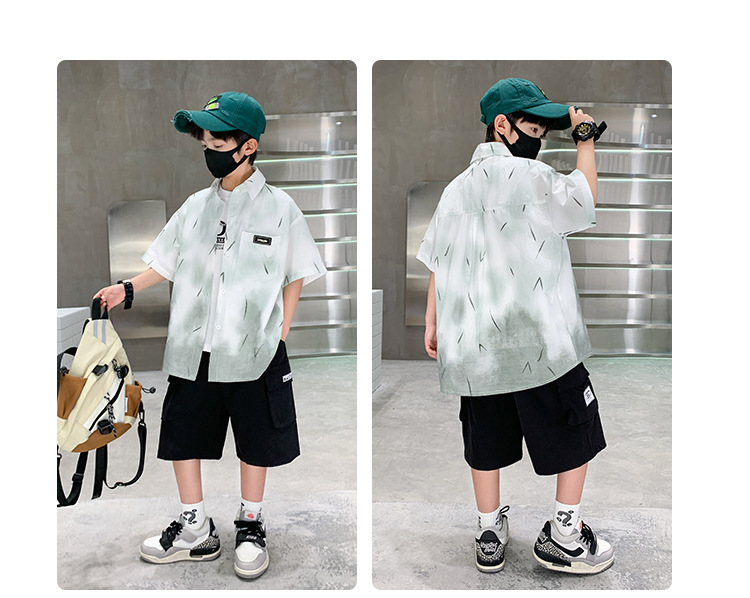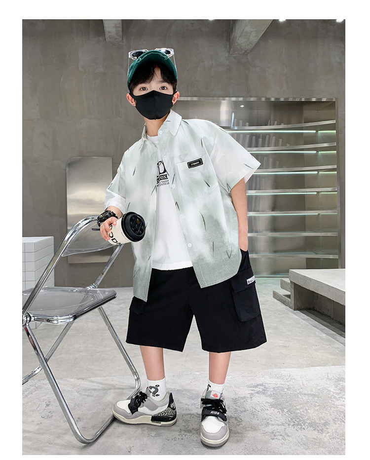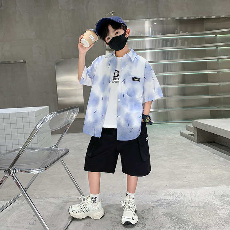 소년 여름 셔츠 2025 새로운 여름 중대형 어린이 소년 여름 스타일 반팔 셔츠 3 피스 세트