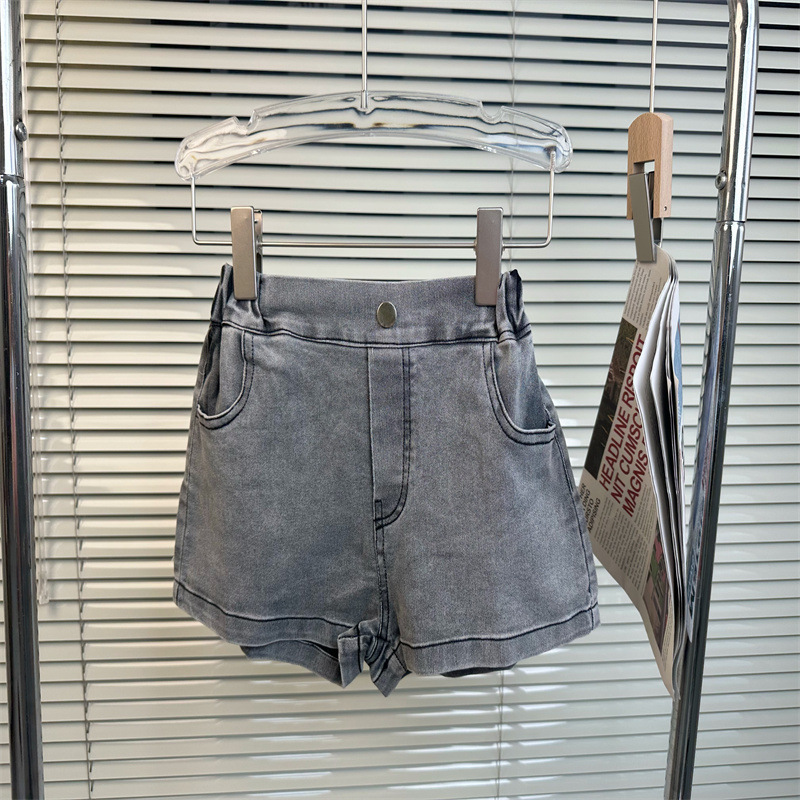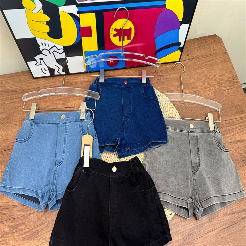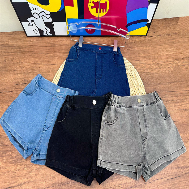 여자 여름 새로운 탄성 데님 반바지 2025 한국어 버전 새로운 단색 탄성 바닥 핫 팬츠 타이트 핫 팬츠스토어 가기
