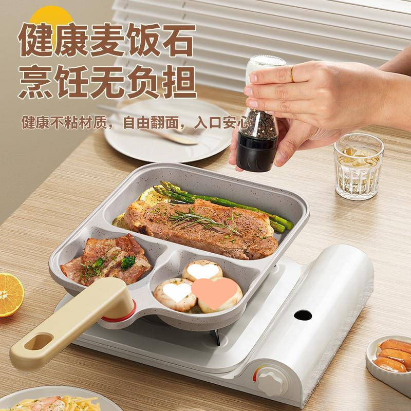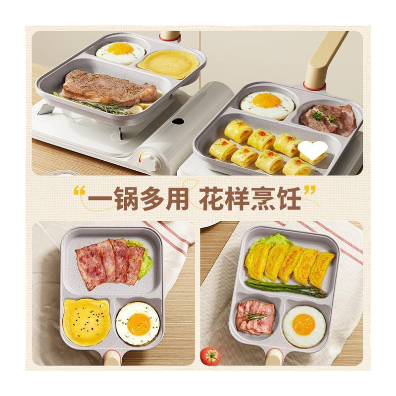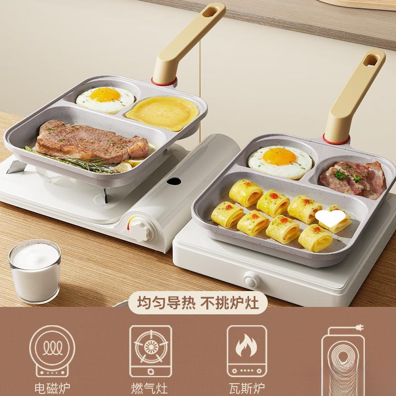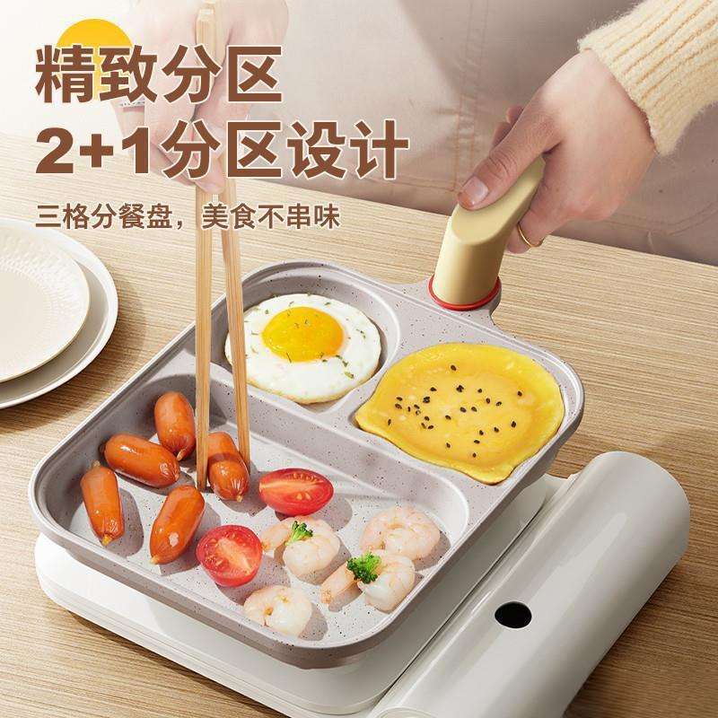 Yiyalu 3-in-1 프라이팬 온도 조절 2세대 프라이팬 계란 버거 팬 붙지 않는 스테이크 아침 식사 팬 가정용스토어 가기