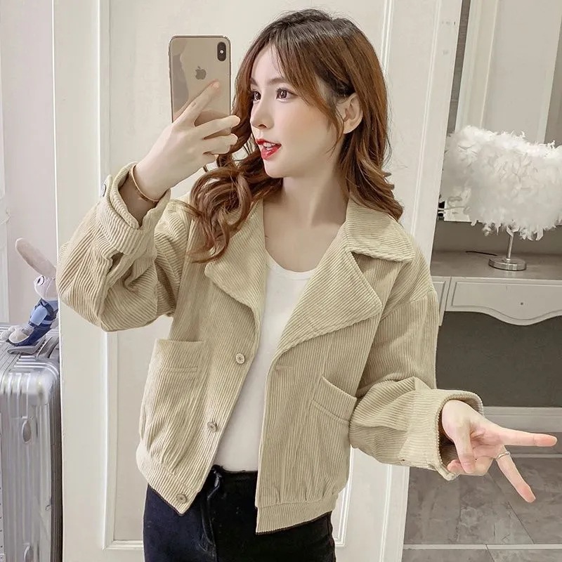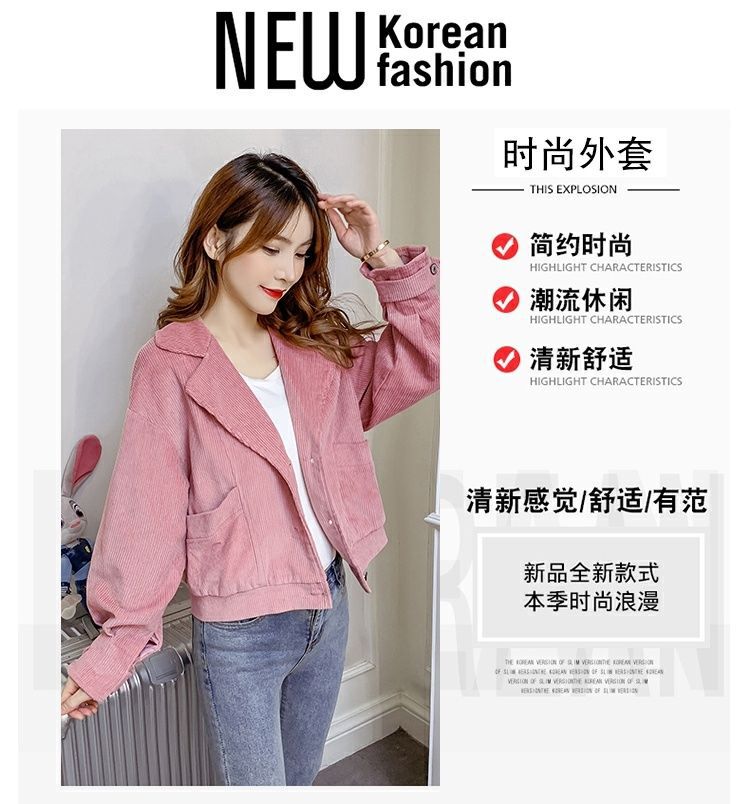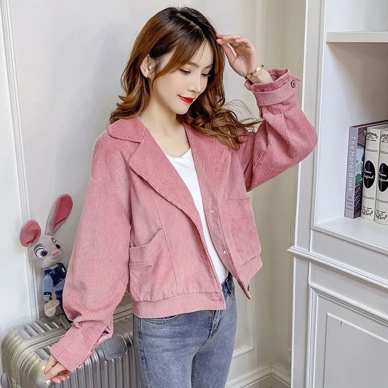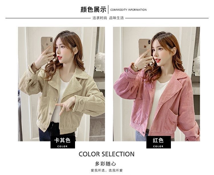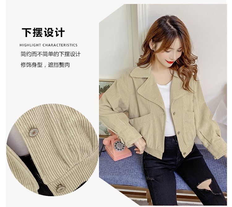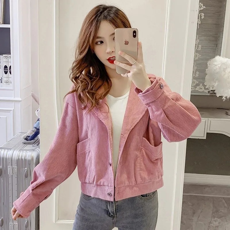 8936 코듀로이 코트 여성 봄과 가을 2024 새로운 연령 감소 느슨한 긴 소매 재킷 짧은 올 매치스토어 가기