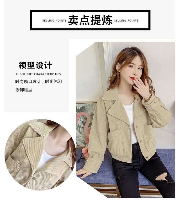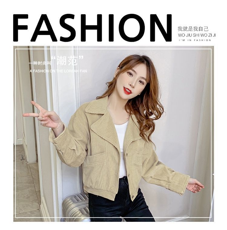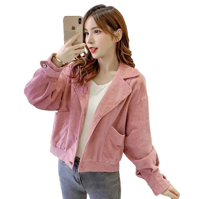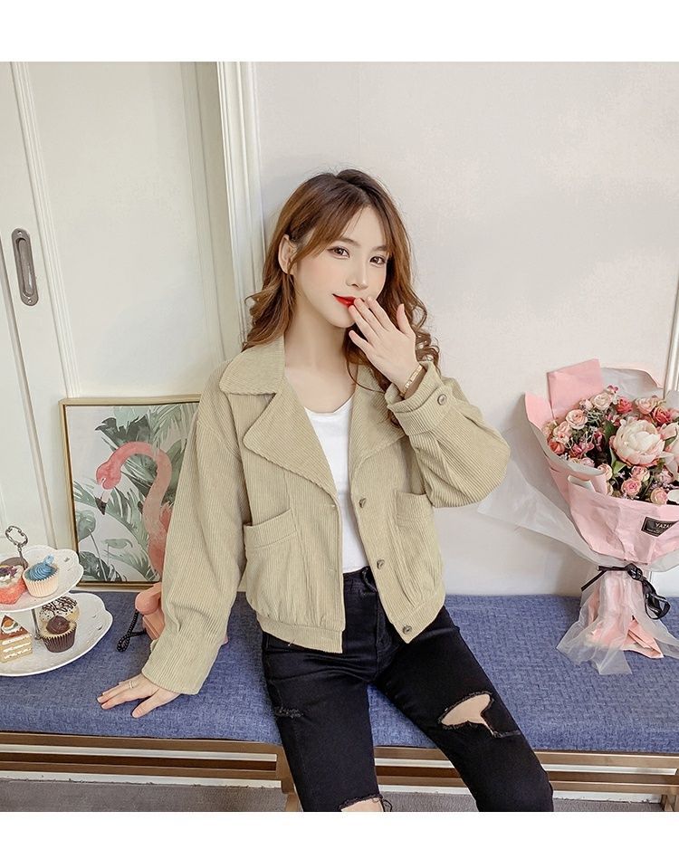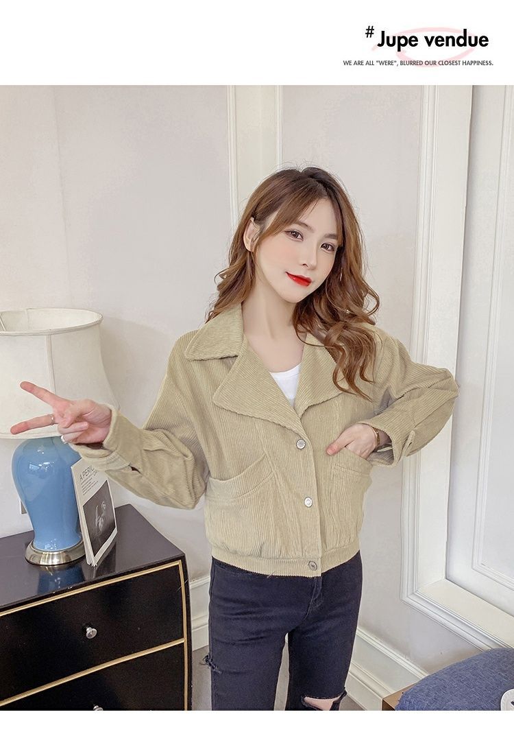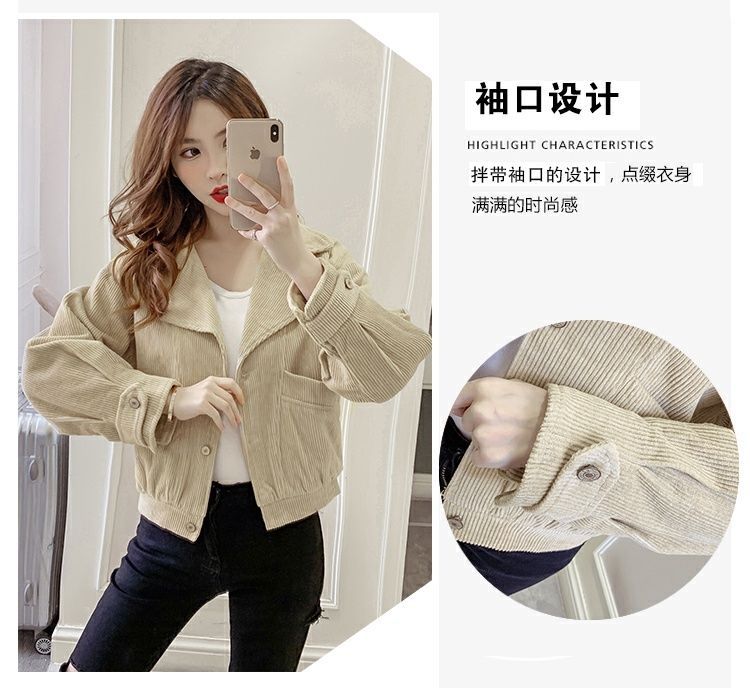 8936 코듀로이 코트 여성 봄과 가을 2024 새로운 연령 감소 느슨한 긴 소매 재킷 짧은 올 매치스토어 가기