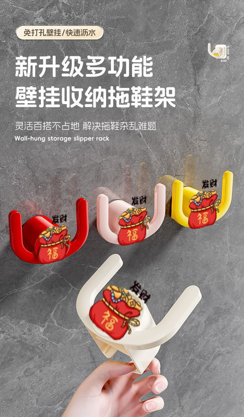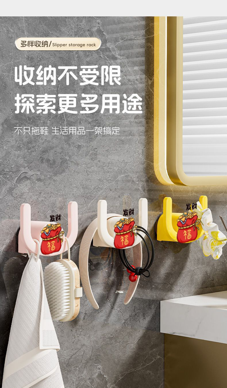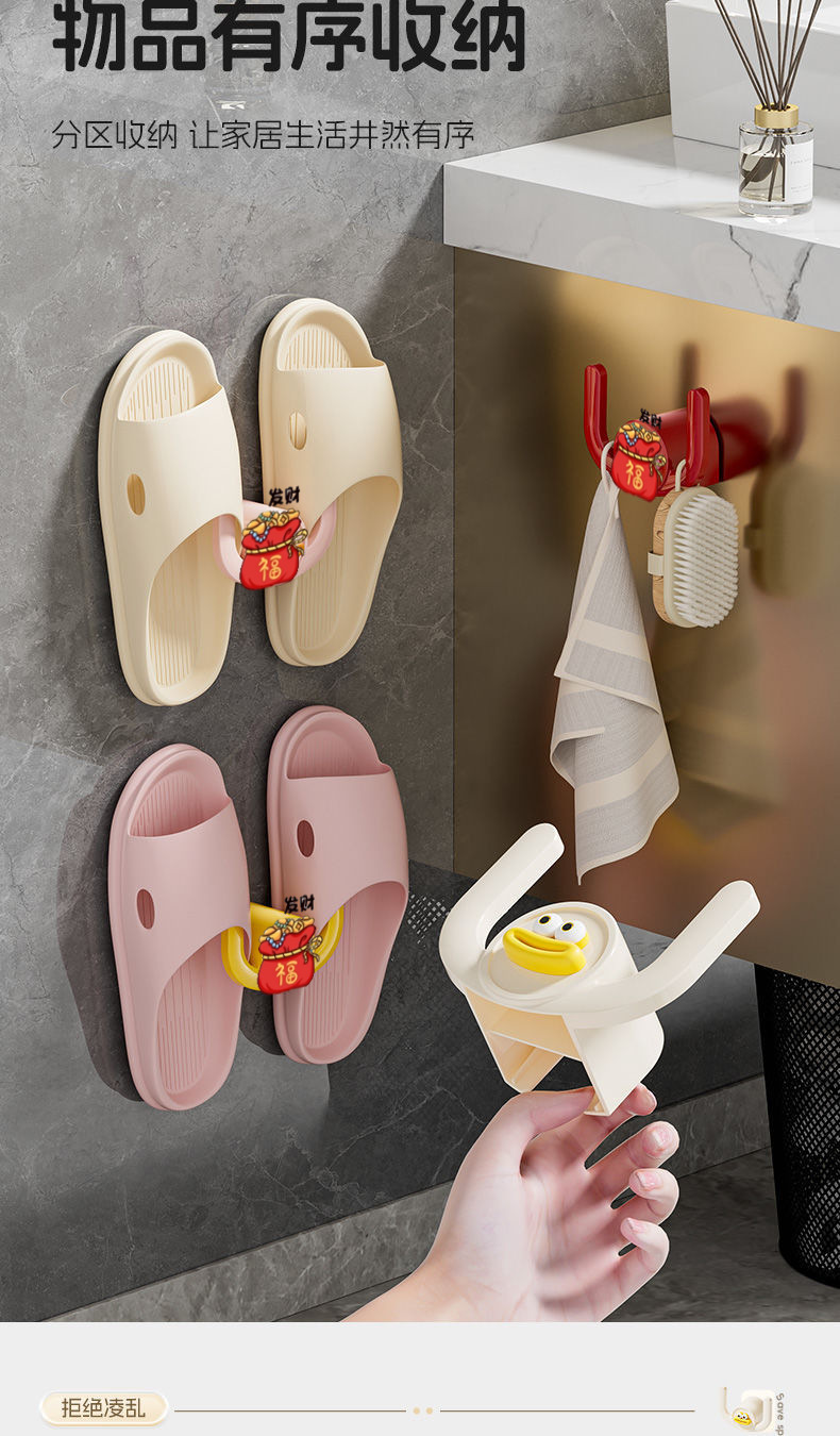 만화 소시지 입 슬리퍼 후크 욕실 슬리퍼 랙 펀치없는 벽걸이 형 도어 후크 욕실 보관함스토어 가기