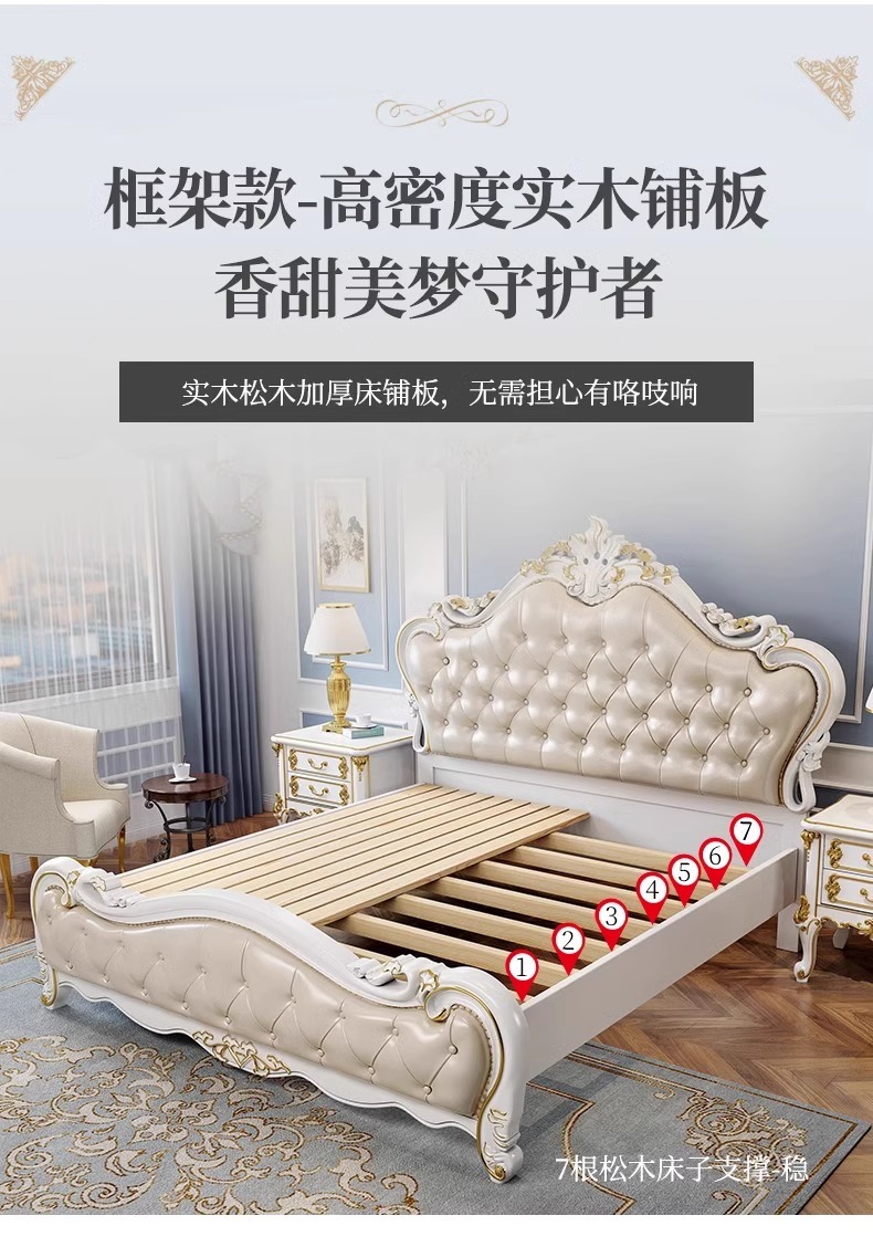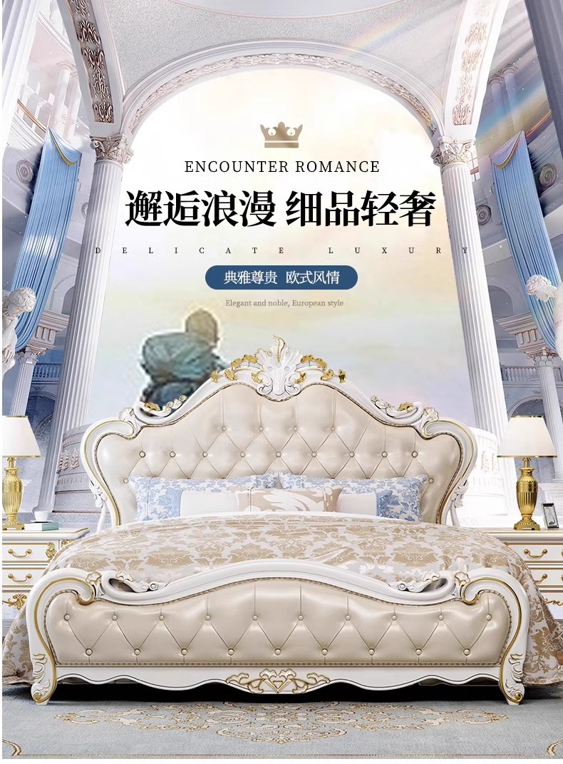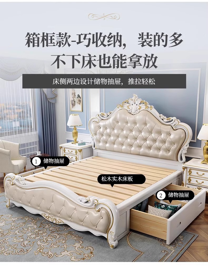 유럽식 풀 솔리드 우드 더블 침대 1.8 m 가죽 오크 조각 공주 침대 프랑스 웨딩 침대 디럭스 큰 유럽 마스터 침실스토어 가기