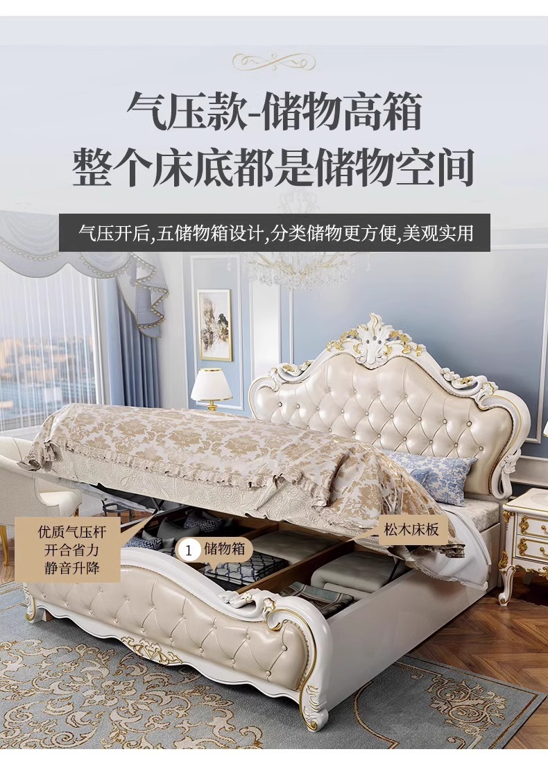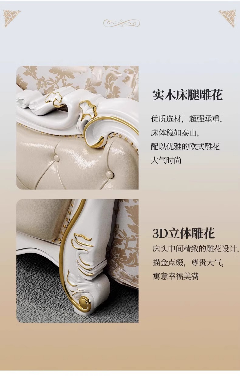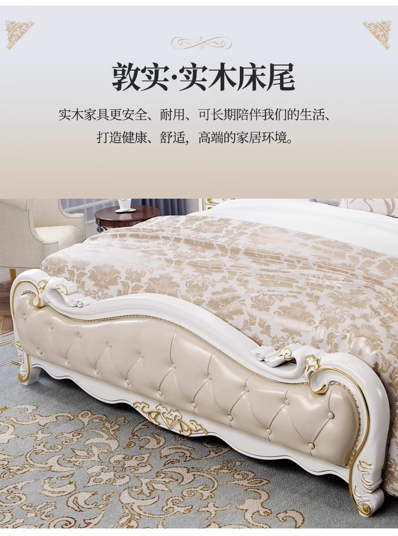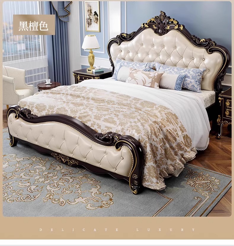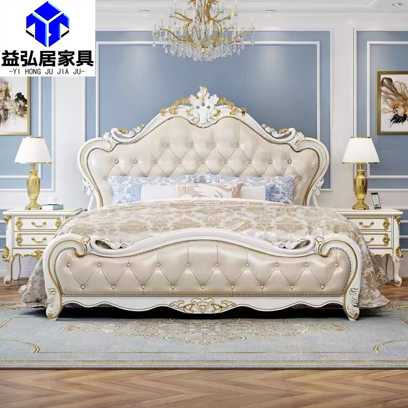 유럽식 풀 솔리드 우드 더블 침대 1.8 m 가죽 오크 조각 공주 침대 프랑스 웨딩 침대 디럭스 큰 유럽 마스터 침실