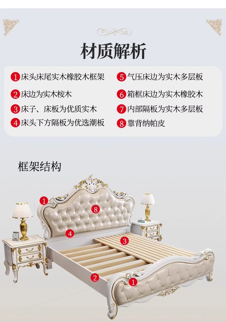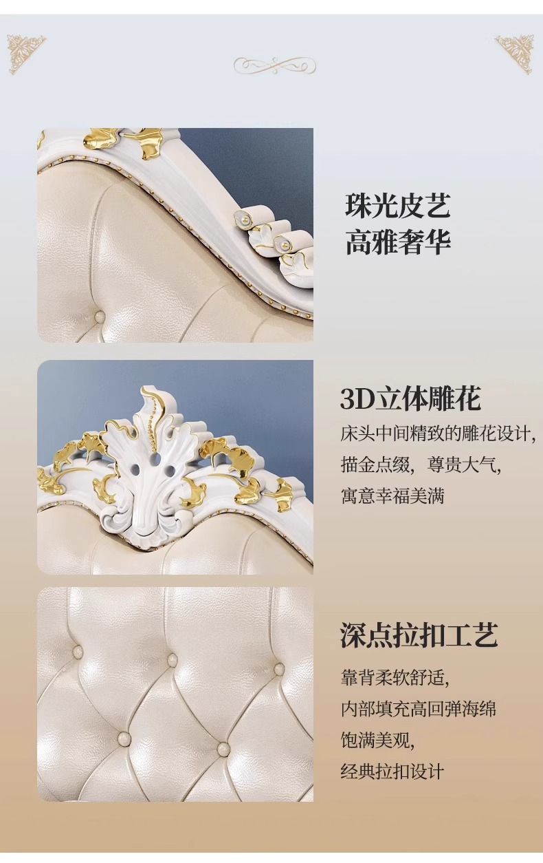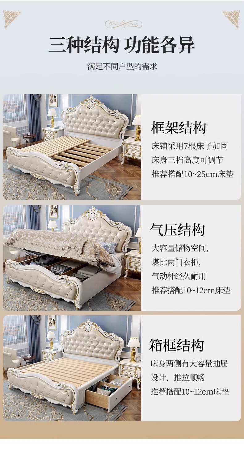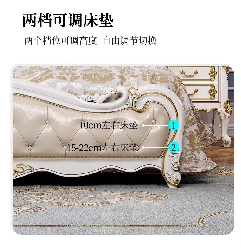 유럽식 풀 솔리드 우드 더블 침대 1.8 m 가죽 오크 조각 공주 침대 프랑스 웨딩 침대 디럭스 큰 유럽 마스터 침실