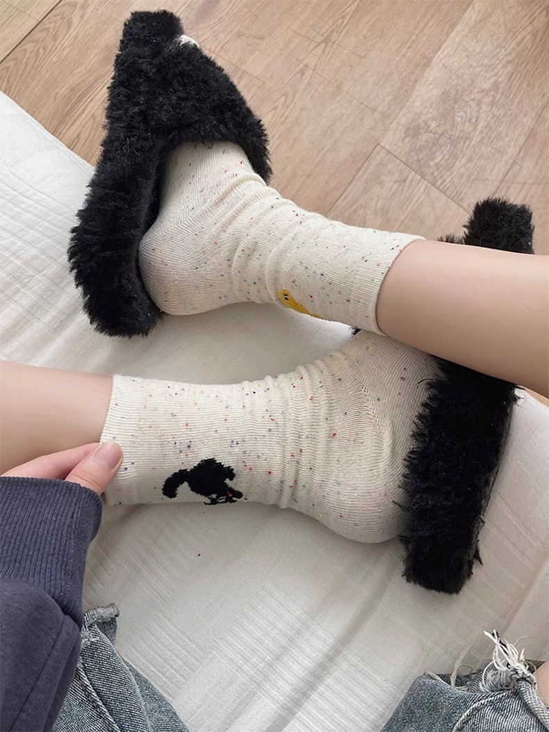 일본 귀여운 만화 새끼 고양이 봄과 가을 새로운 귀여운 그림 학생을위한 힐 플록 컬러 도트 중간 튜브 양말스토어 가기