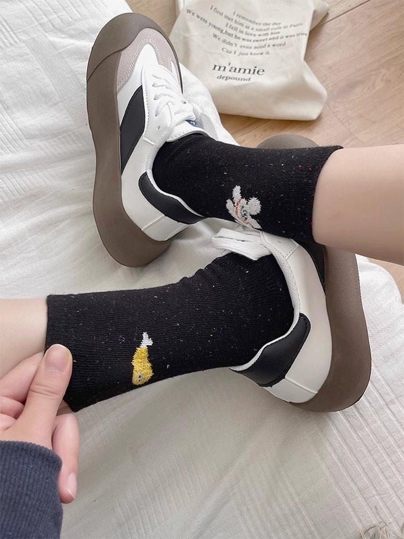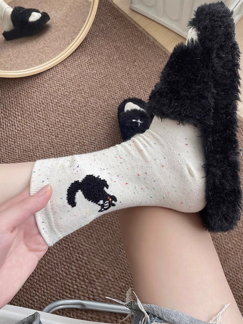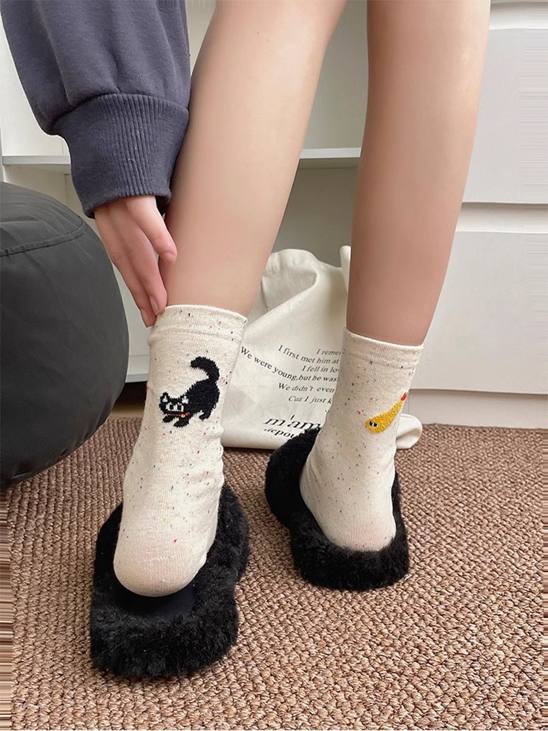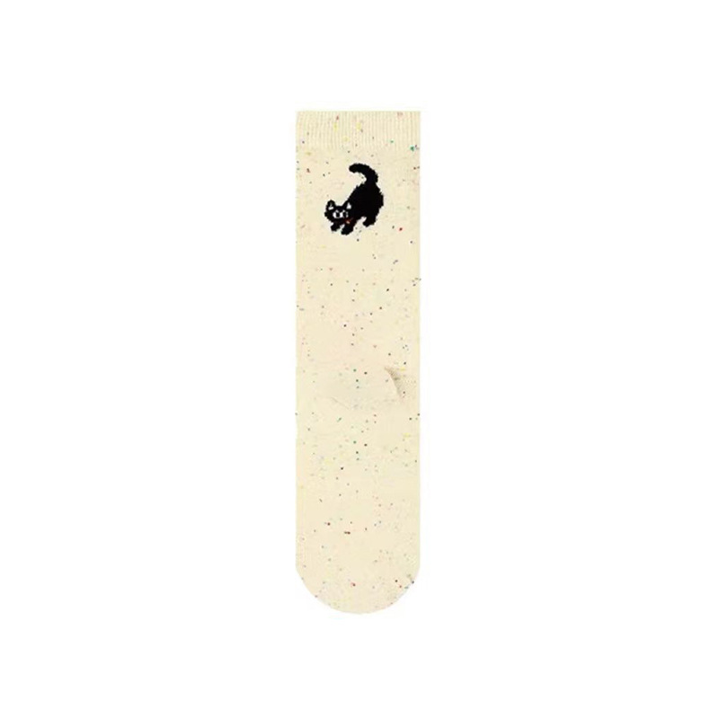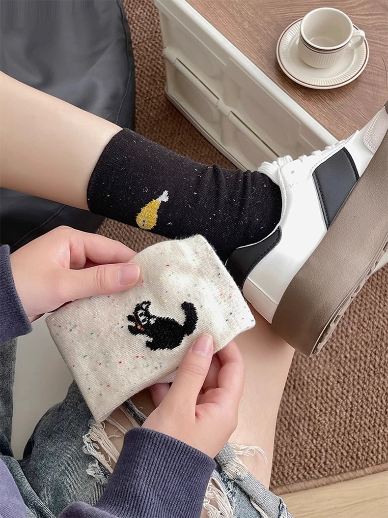 일본 귀여운 만화 새끼 고양이 봄과 가을 새로운 귀여운 그림 학생을위한 힐 플록 컬러 도트 중간 튜브 양말