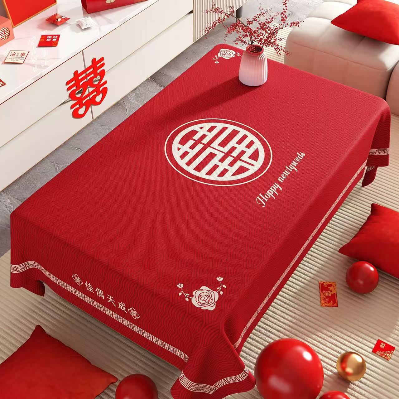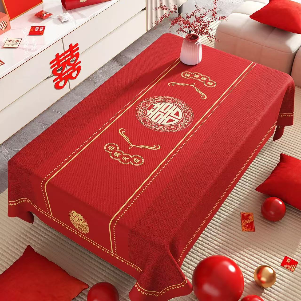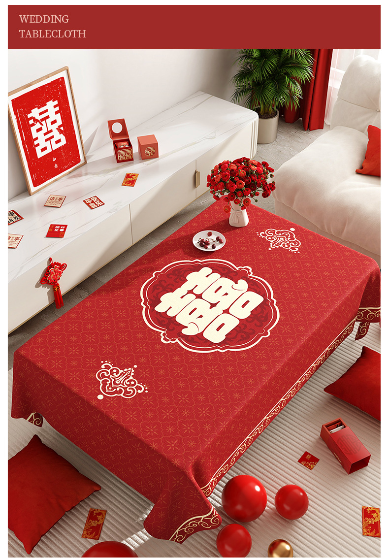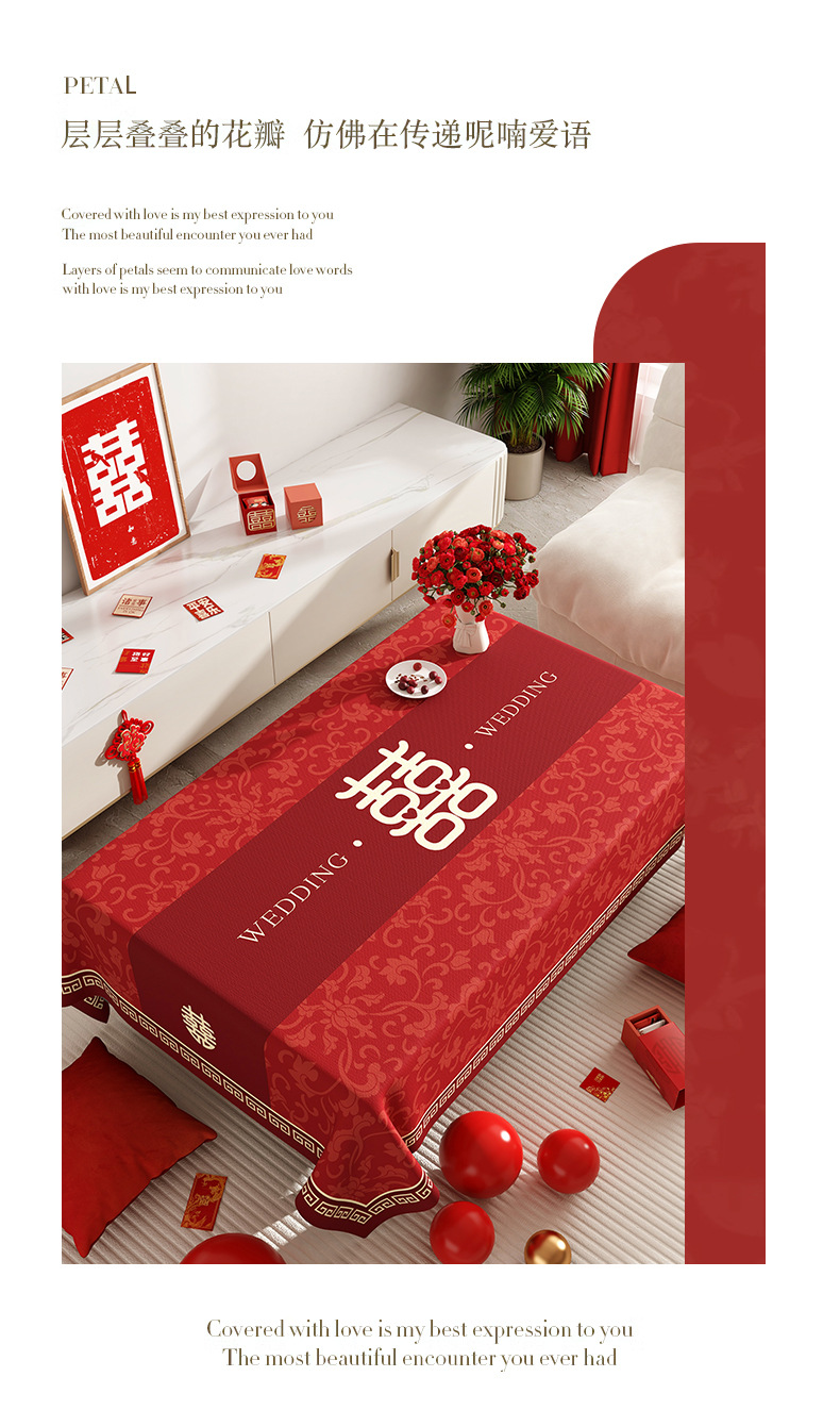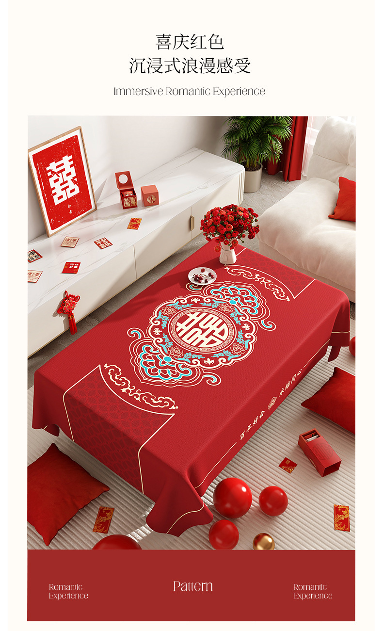 웨딩 커피 테이블 식탁보 붉은 축제 분위기 식탁 방수 기름 방지 세탁 불가능한 결혼식 장식 테이블 천스토어 가기