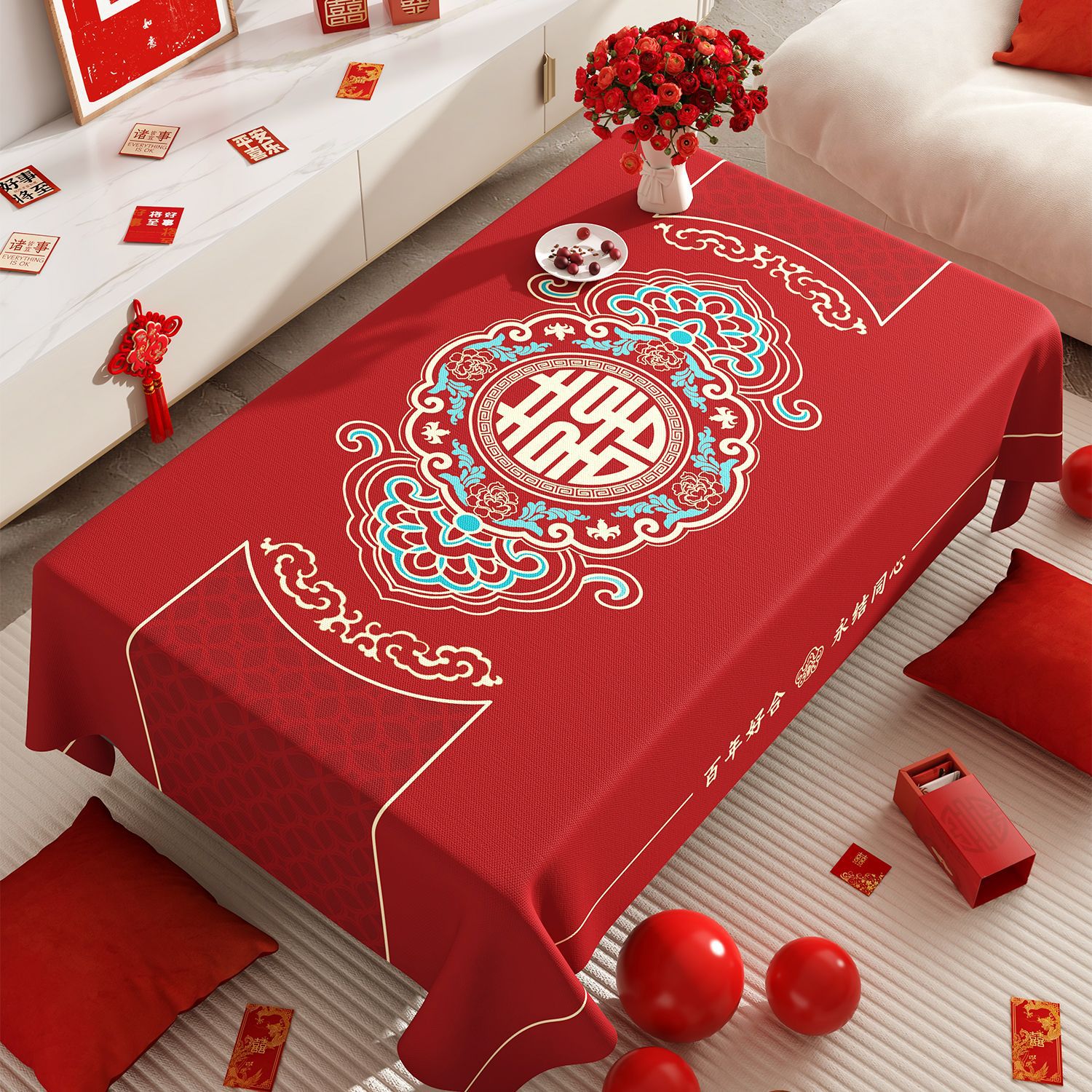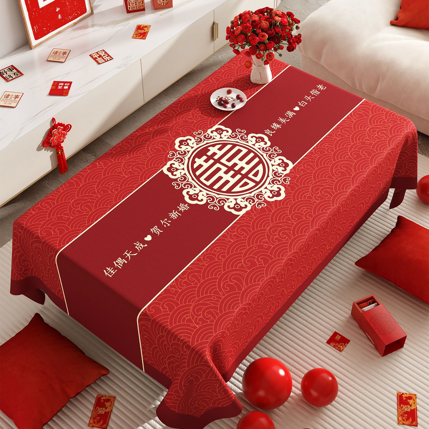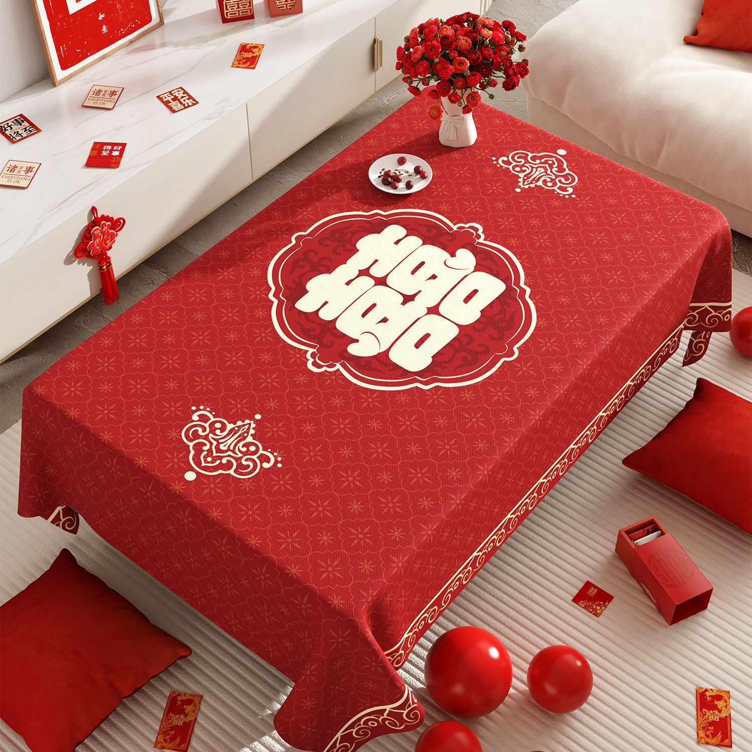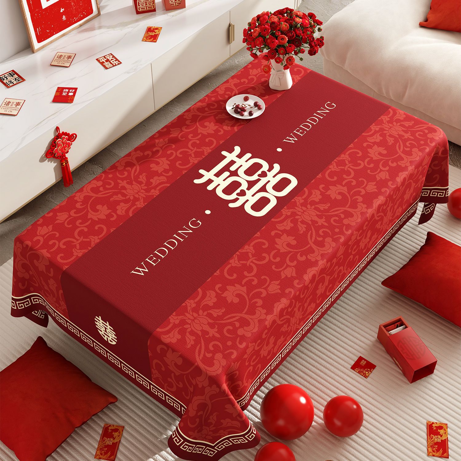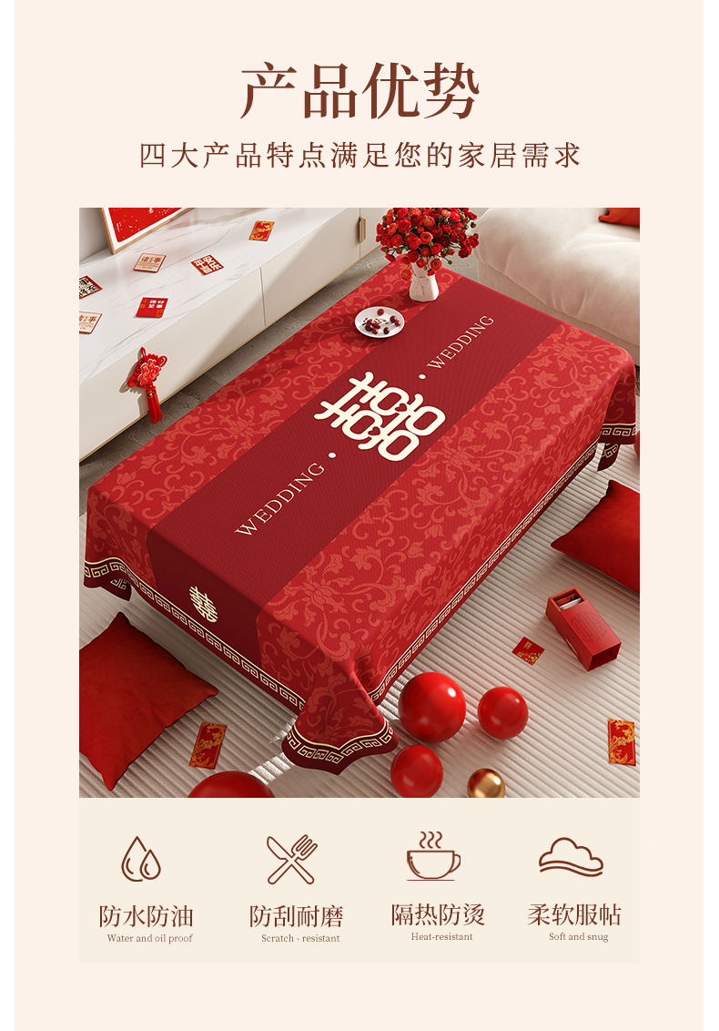 웨딩 커피 테이블 식탁보 붉은 축제 분위기 식탁 방수 기름 방지 세탁 불가능한 결혼식 장식 테이블 천스토어 가기