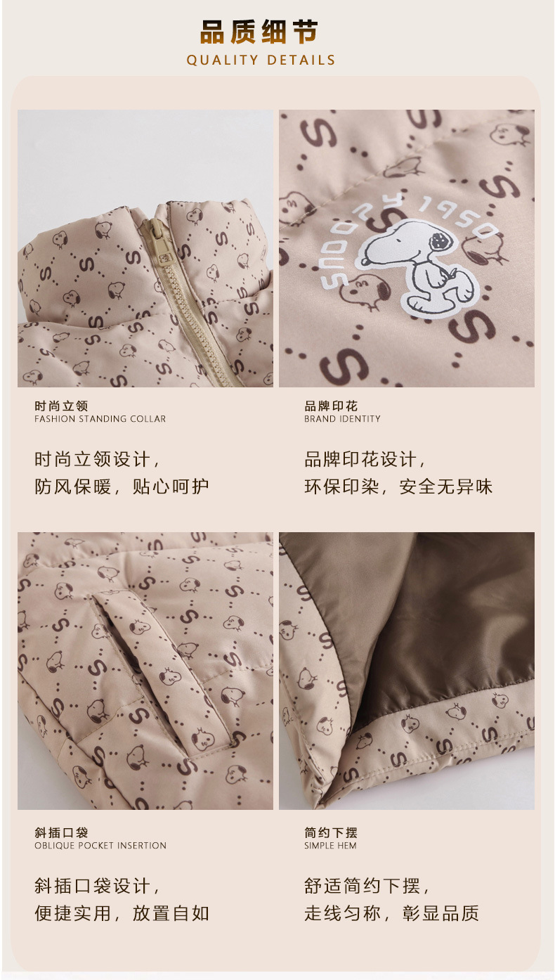 소년 소녀를위한 스누피 아동면 양복 조끼 가을 겨울 착용 한국 아기 조끼 코튼 코트 재킷스토어 가기