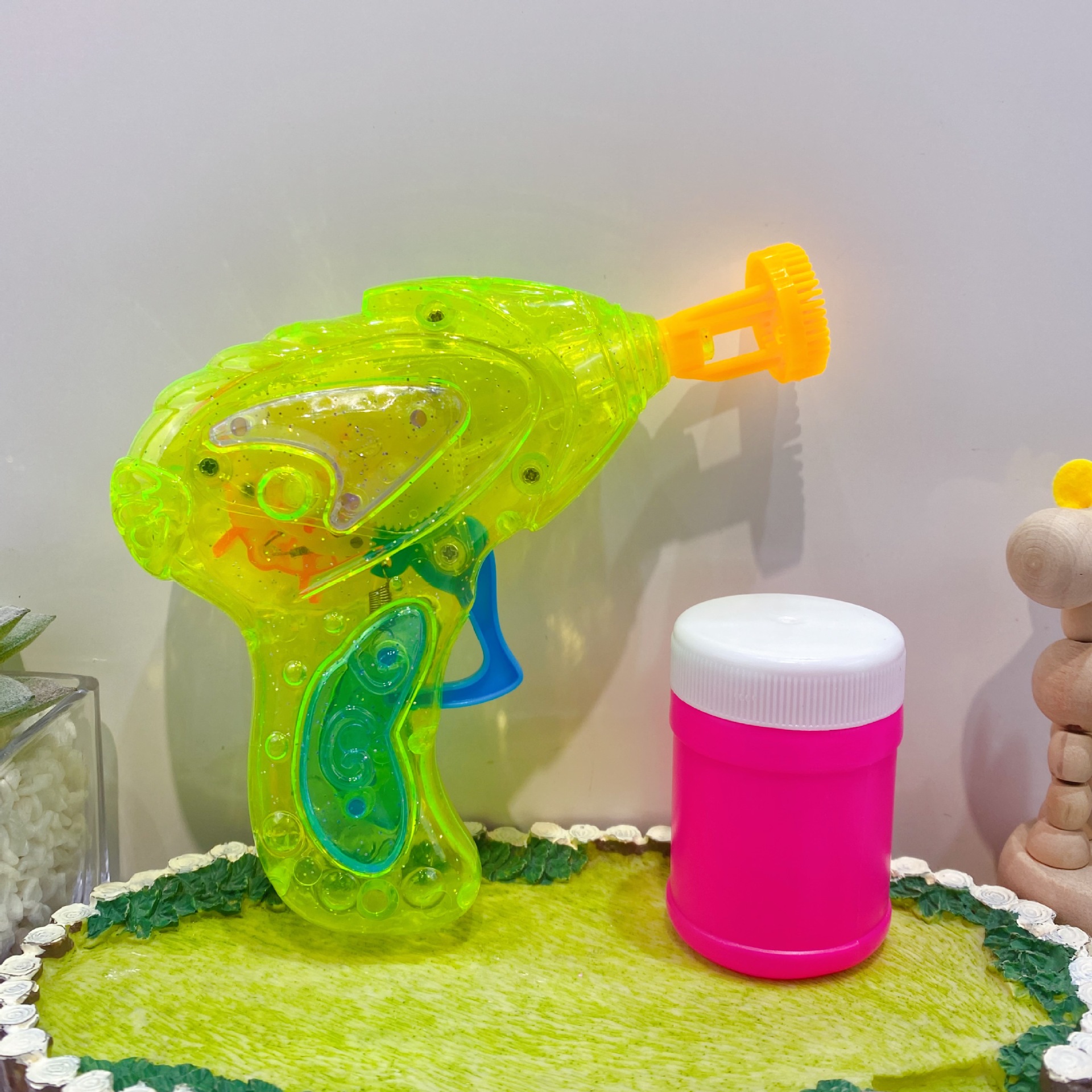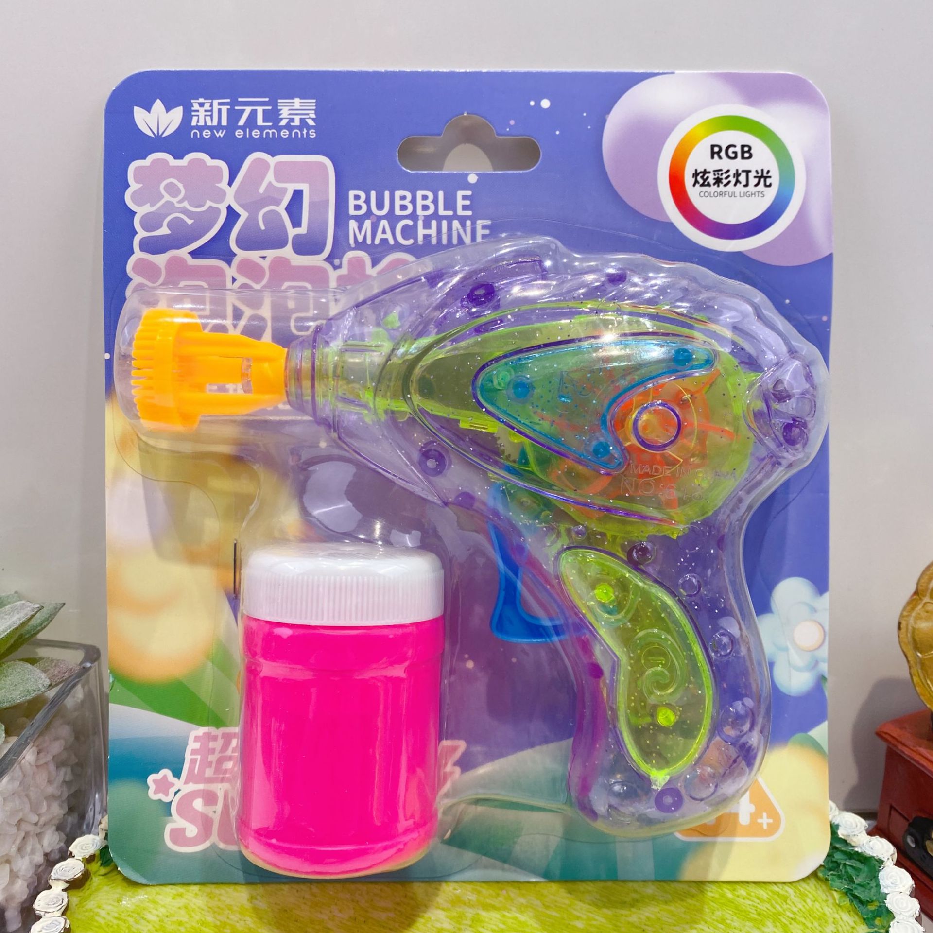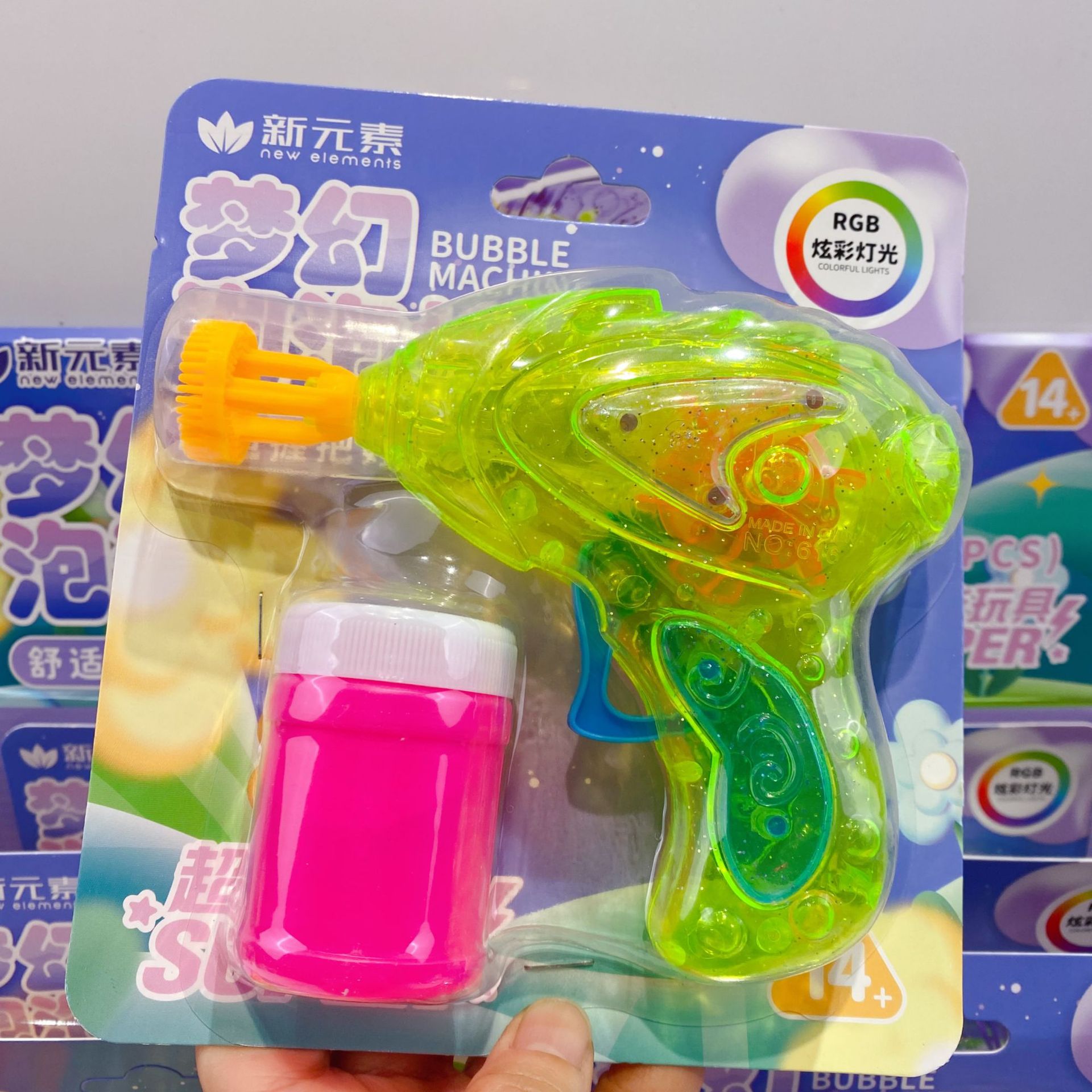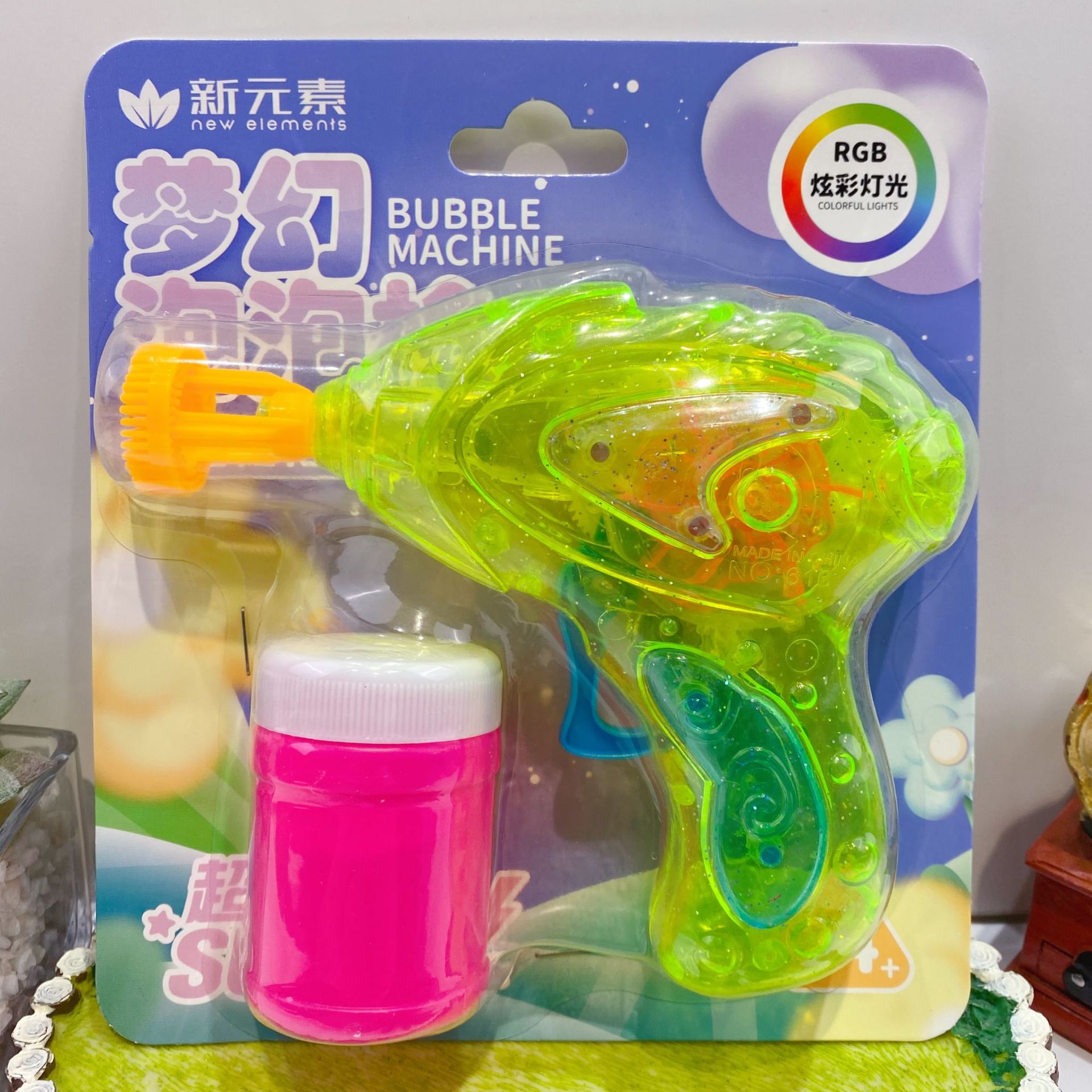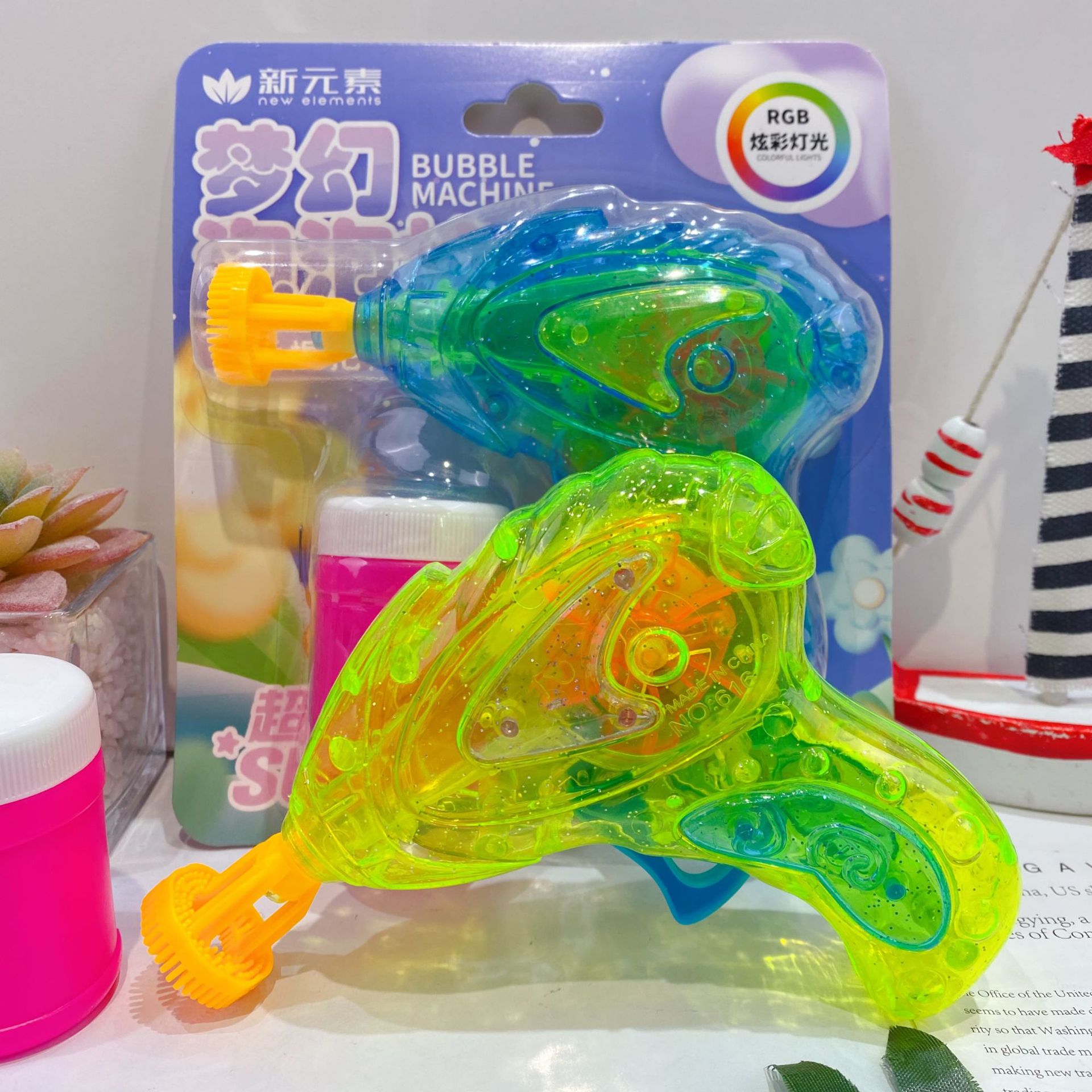 새로운 판타지 다채로운 빛 거품 총 귀여운 그물 붉은 거품 기계 다채로운 빛 부는 거품 총 물 집중