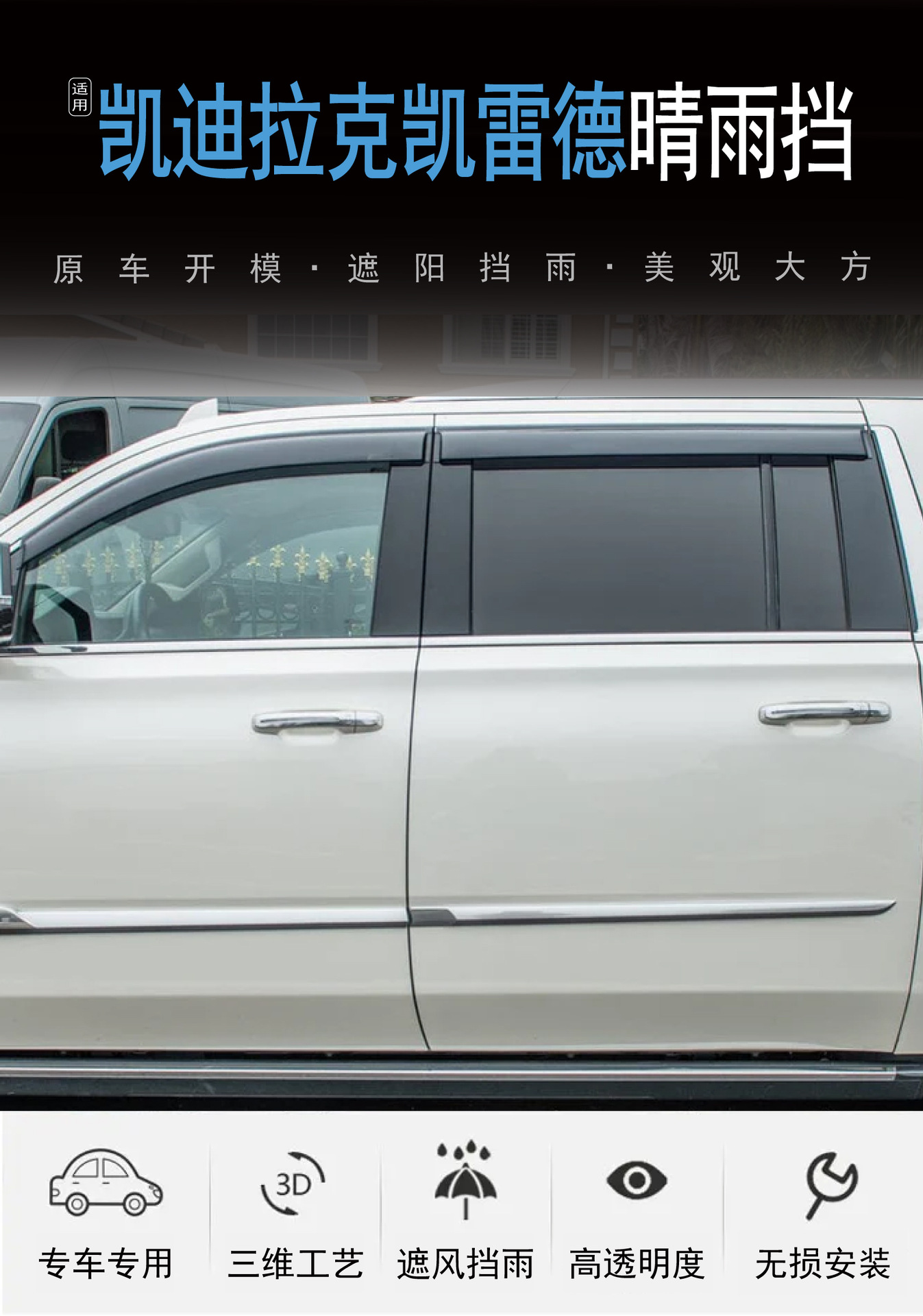 2002-2024 Cadillac Escalade 창 차단 비 내장 자동차 비 또는 빛 차단에 적합