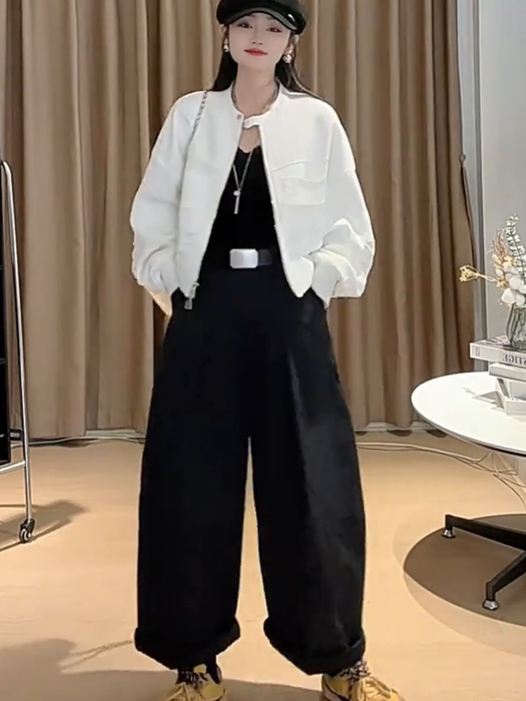 봄 2025 새로운 한국 스타일 캐주얼 올 매치 남자 쇼트 재킷 세로 칼라 여자 재킷 트렌디 탑스토어 가기