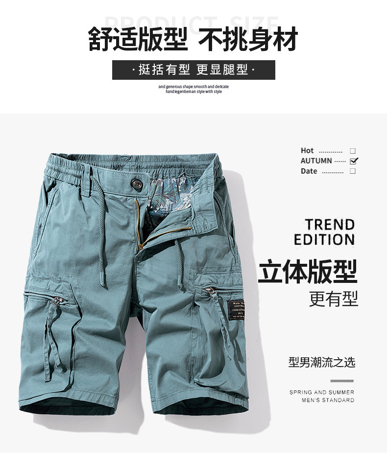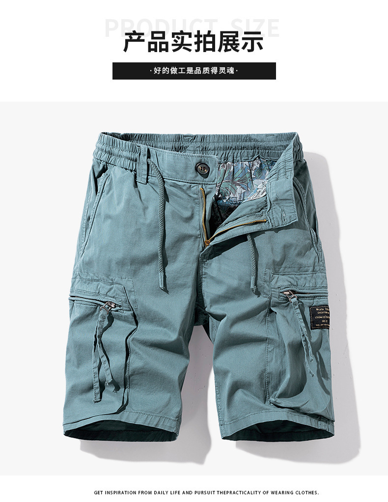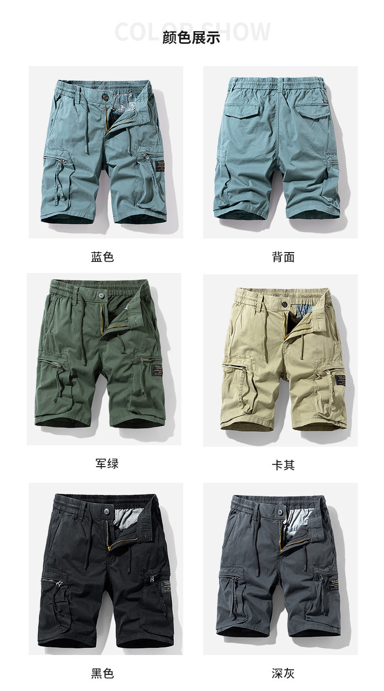 작업복 반바지 남성 여름 야외 군용 녹색 루즈 캐주얼 스포츠 5부 바지 겉옷 면 멀티 포켓 남성용 다용도스토어 가기