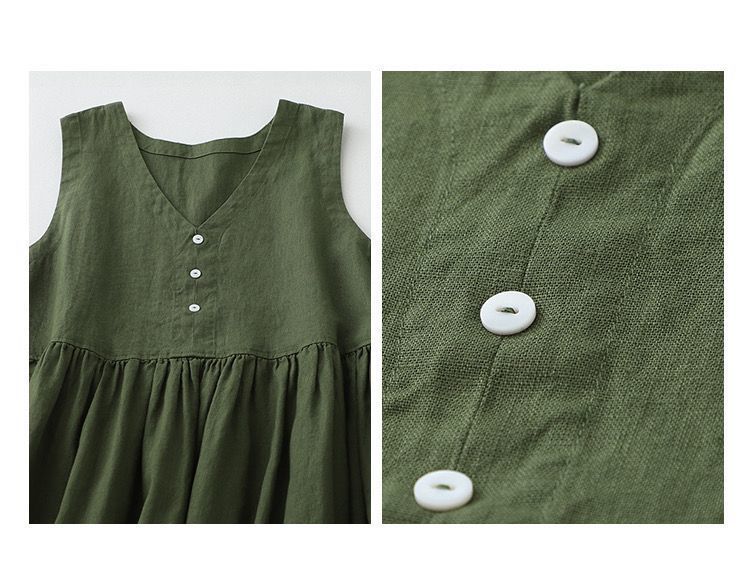 면화와 리넨 일본 간단한 컬러 조끼 2025 여름 느슨한 플러스 사이즈 배꼽 커버 슬리밍 민소매 원피스