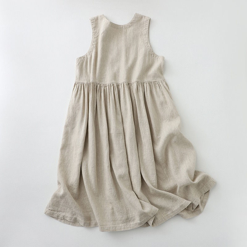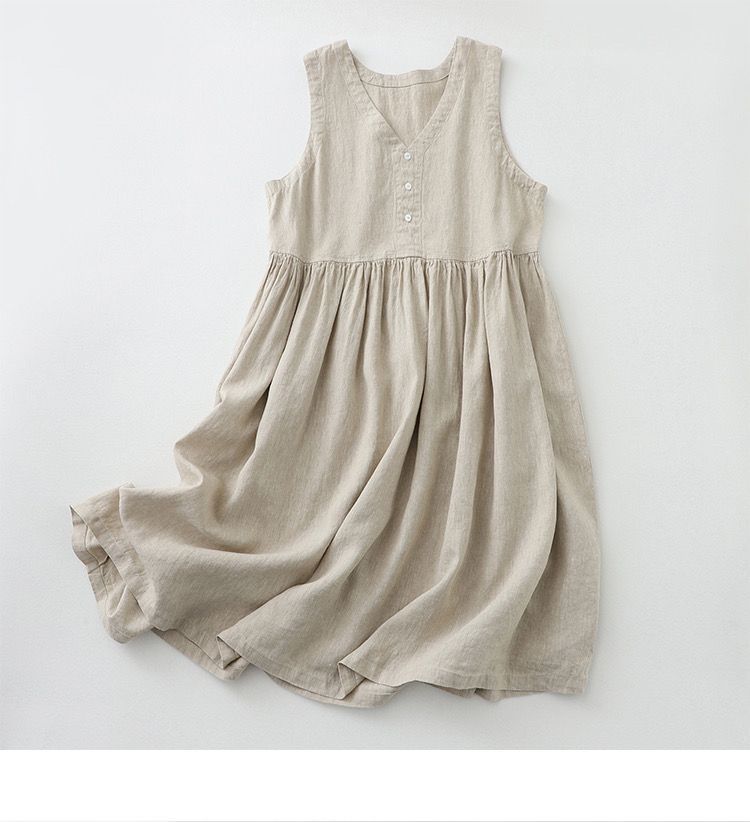 면화와 리넨 일본 간단한 컬러 조끼 2025 여름 느슨한 플러스 사이즈 배꼽 커버 슬리밍 민소매 원피스스토어 가기