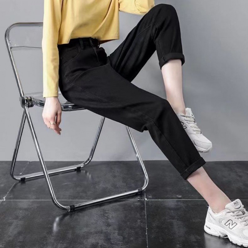 • 블랙 신축성이 없는 루즈한 하렘팬츠