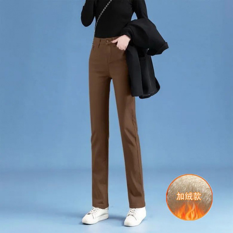 • 다크 브라운 팬츠, 신축성 있는 봄, 가을 스타일