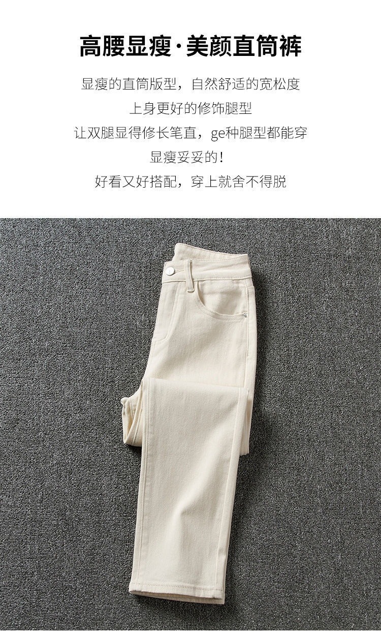 아이보리 스트레치 청바지 여성의 느슨한 높은 허리 2025 봄과 여름 새로운 슬리밍 화이트 데님 바지 연기 튜브스토어 가기