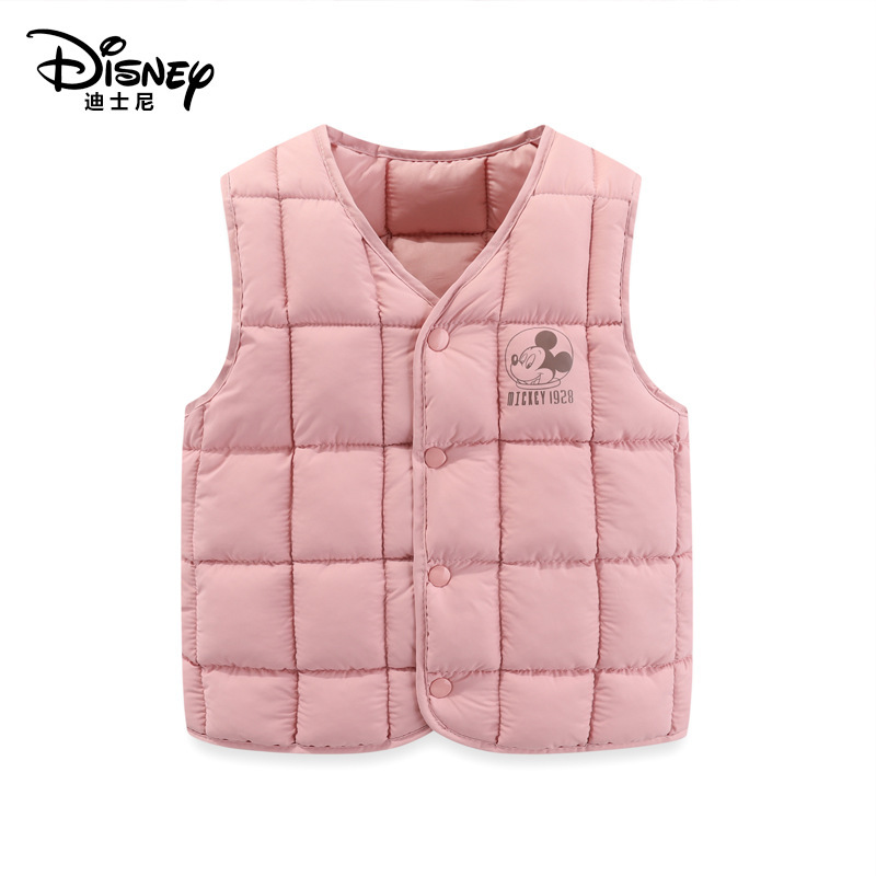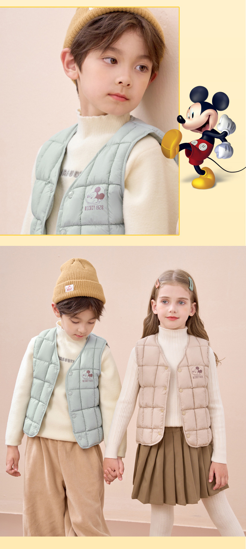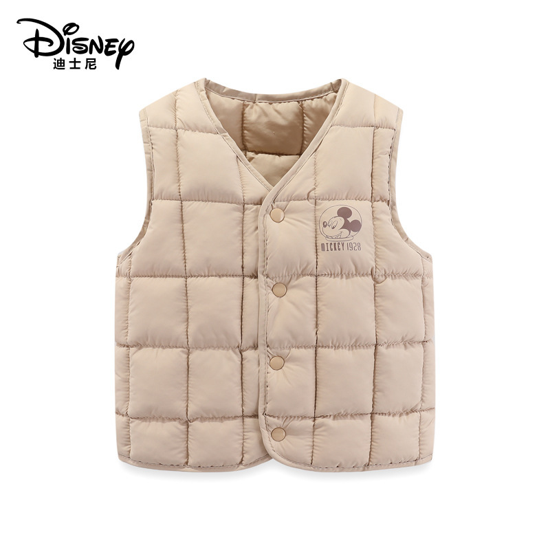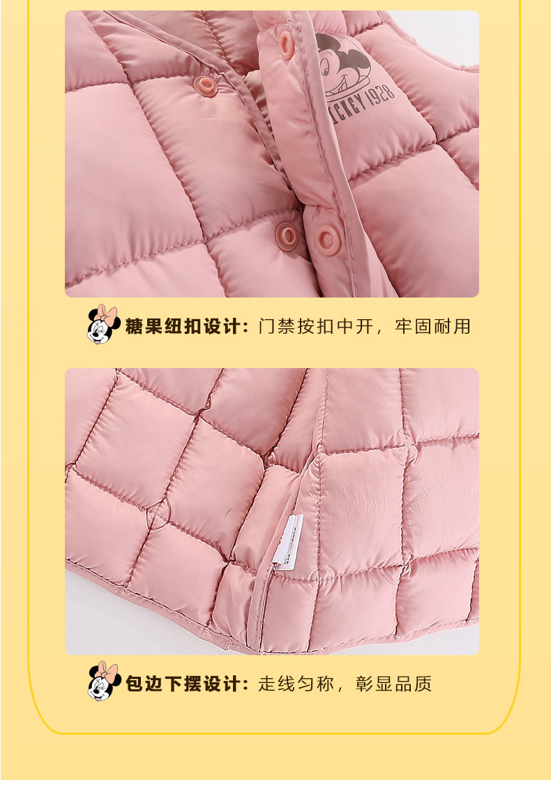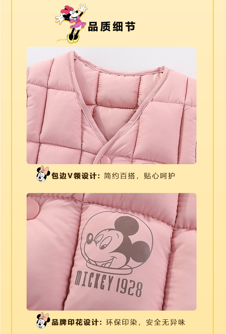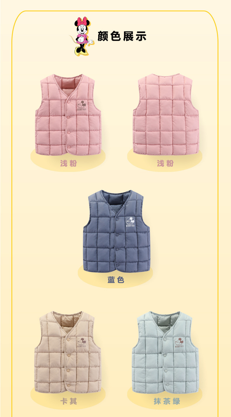 디즈니 어린이 조끼 소년과 소녀 면화 조끼 2024 가을, 겨울 얇은 내부 아기 겉옷 따뜻한 조끼