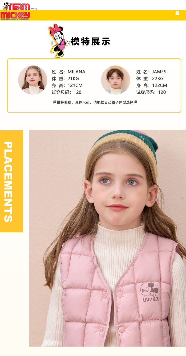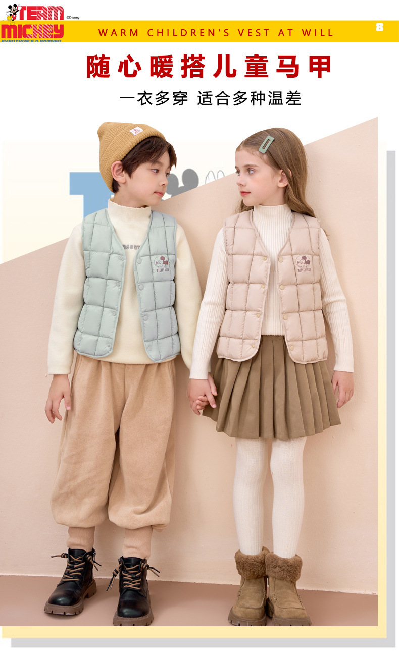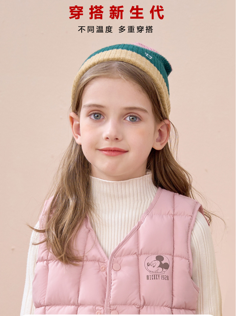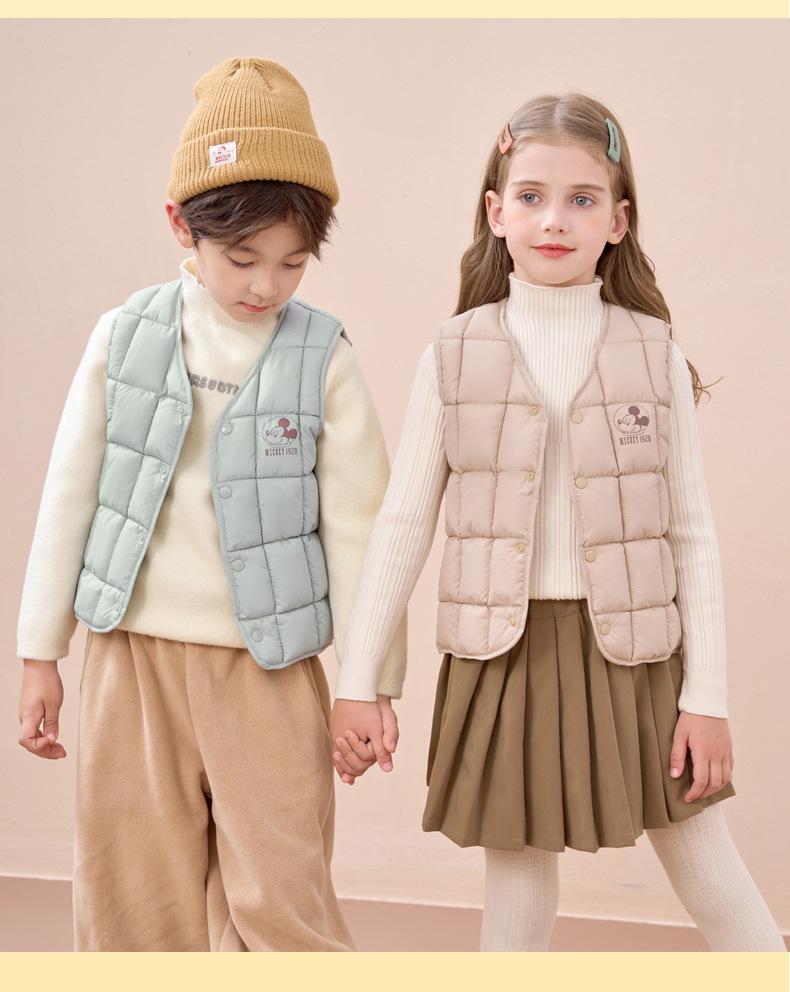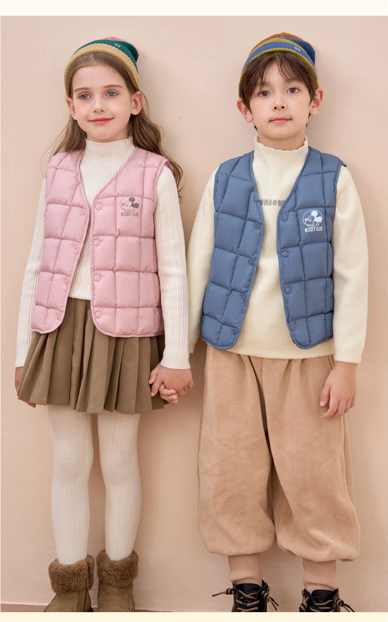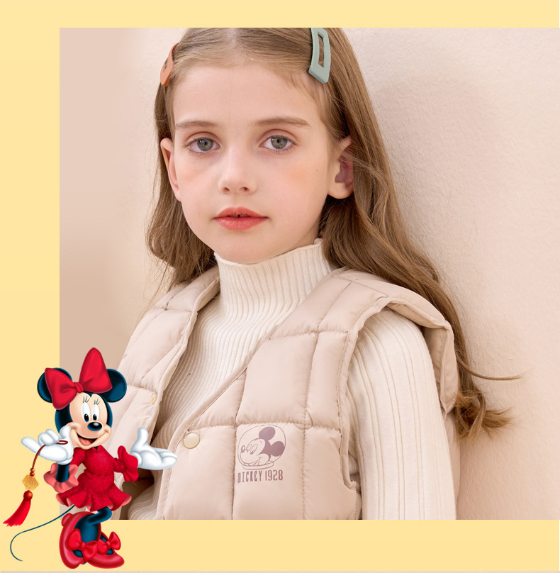 디즈니 어린이 조끼 소년과 소녀 면화 조끼 2024 가을, 겨울 얇은 내부 아기 겉옷 따뜻한 조끼