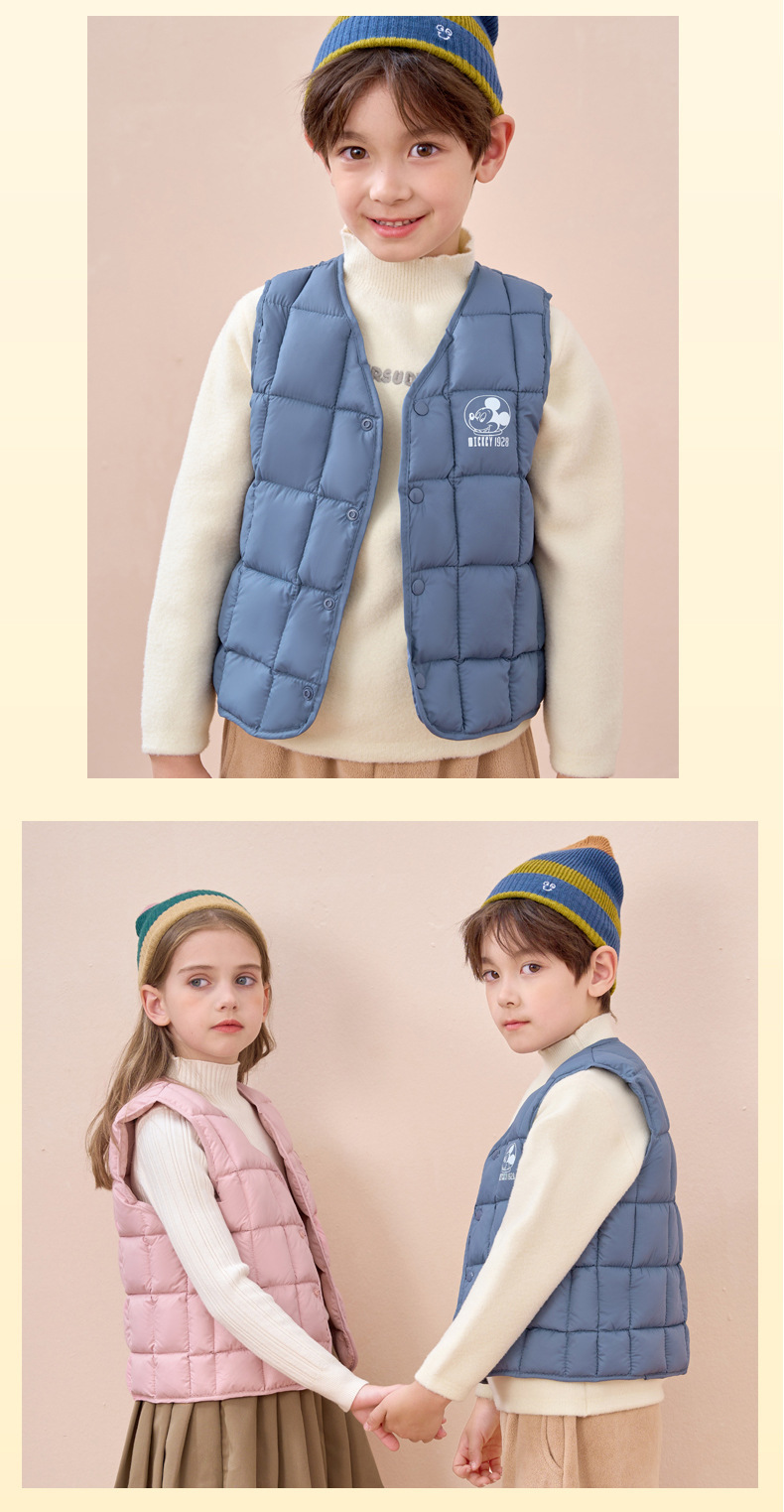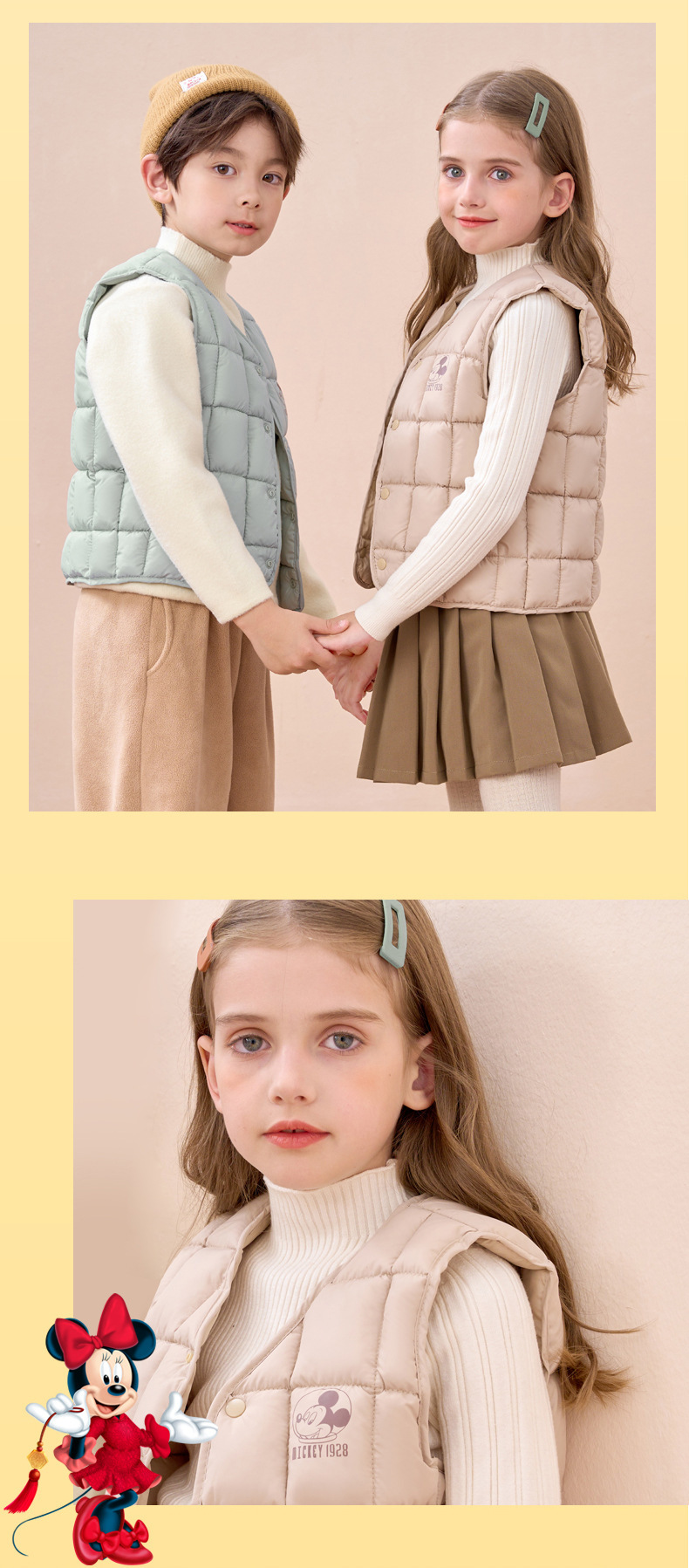 디즈니 어린이 조끼 소년과 소녀 면화 조끼 2024 가을, 겨울 얇은 내부 아기 겉옷 따뜻한 조끼스토어 가기