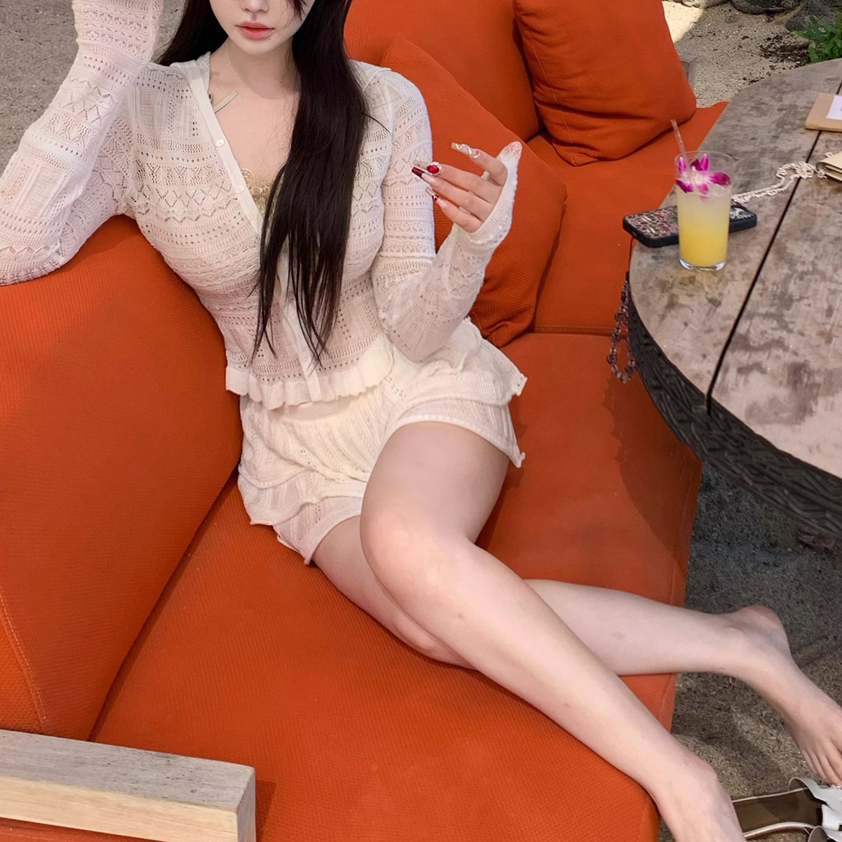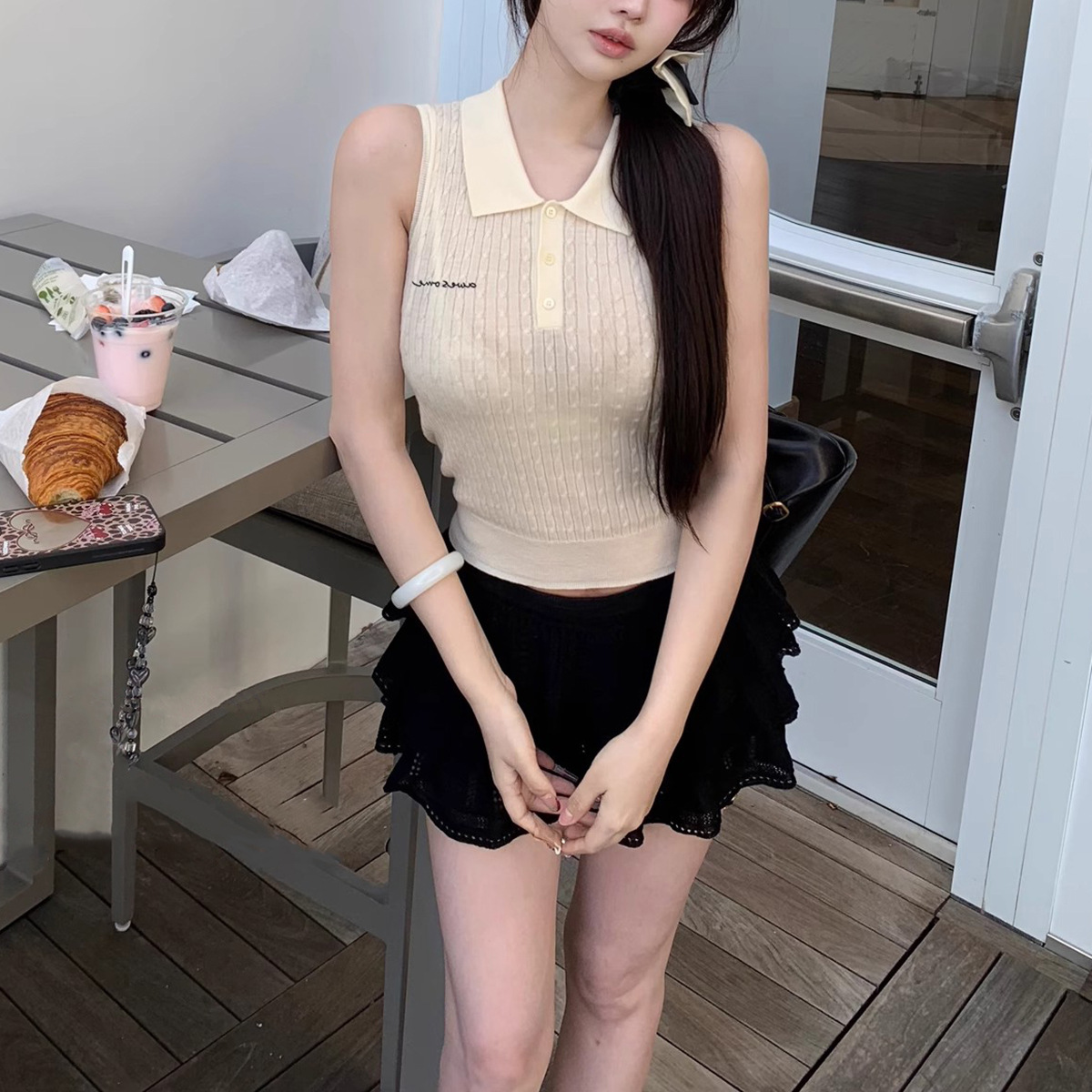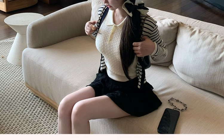 재고 있음 부드러운 소녀 스타일 60수 100% 울 니트 레이스 상의/폴로 반팔스토어 가기