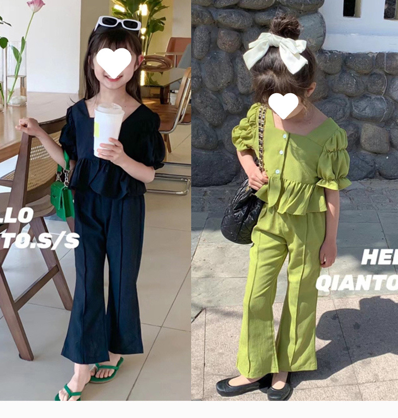 2022 새로운 여아 정장, 새로운 중대형 아동 패션 여름 옷, 아동 여름 인터넷 연예인 스트리트 투피스 세트스토어 가기