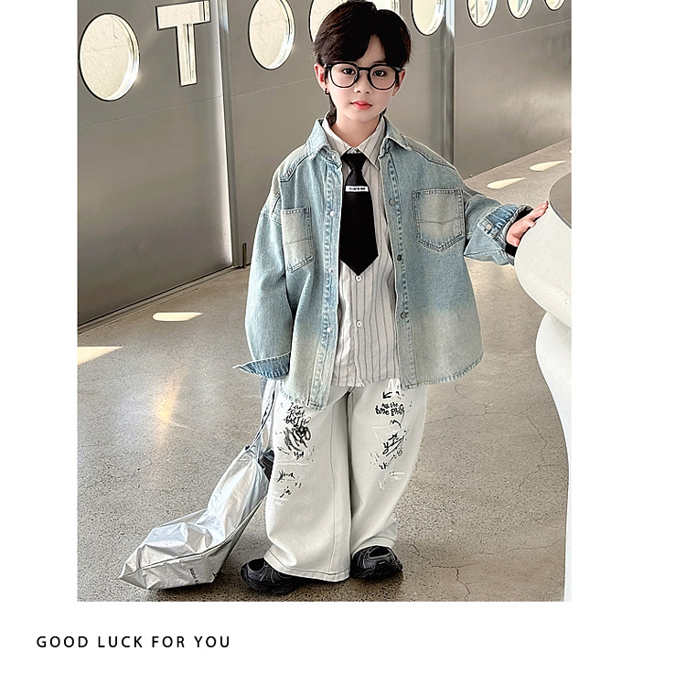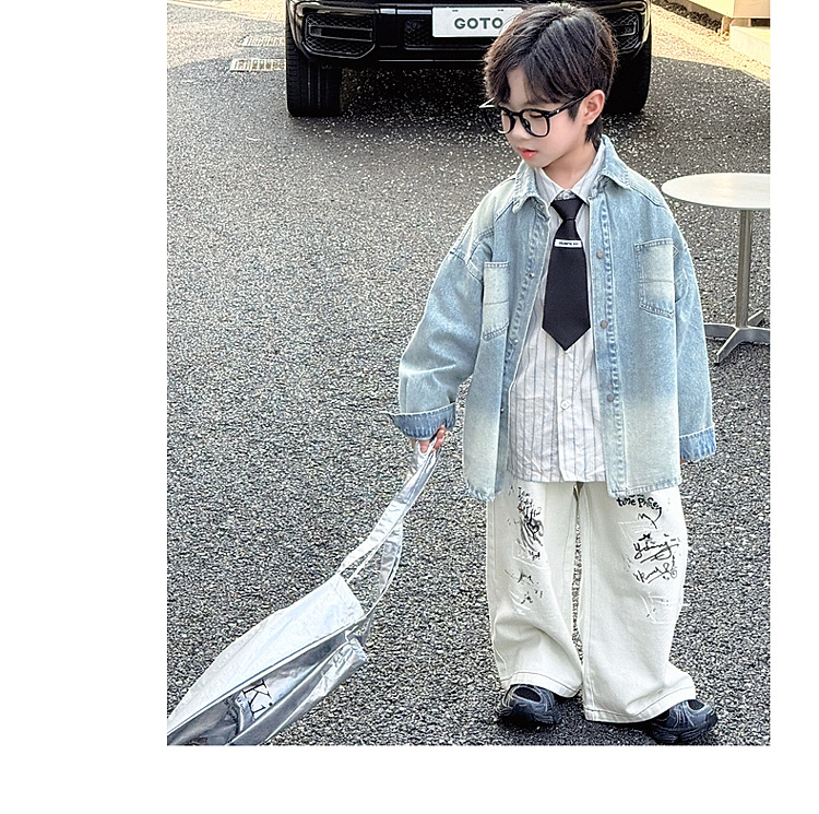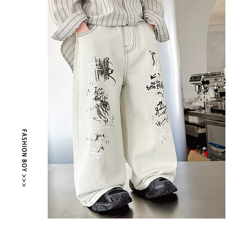 소년 캐주얼 바지 봄 2025 새로운 어린이 봄 슈퍼 잘 생긴 바지 소년 한국 느슨한 서양 스타일 트렌디스토어 가기