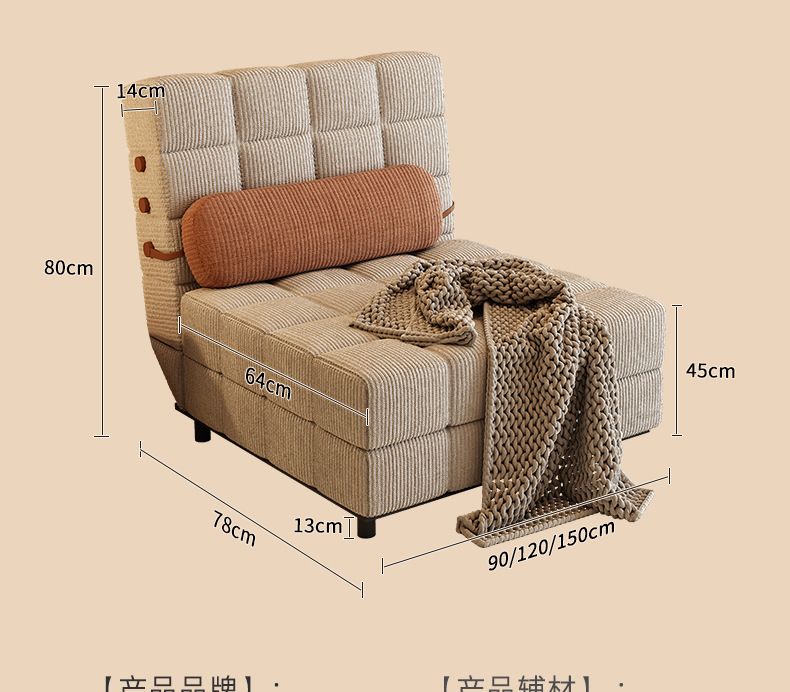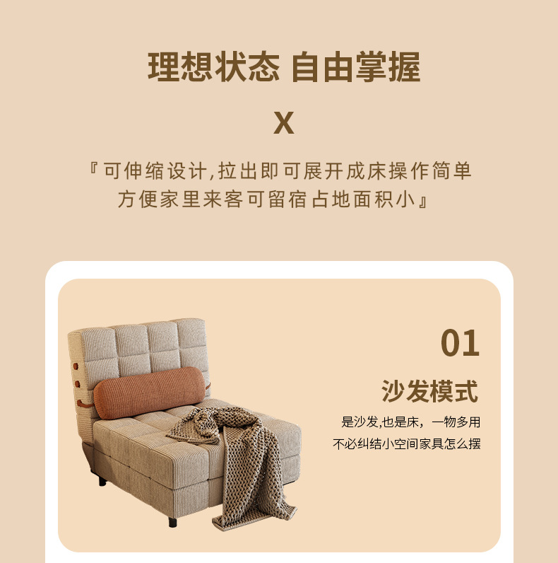 크림색 소파베드 접이식 겸용 2025 소형 거실용 분리 세탁 가능 다기능 접이식 침대 블록형