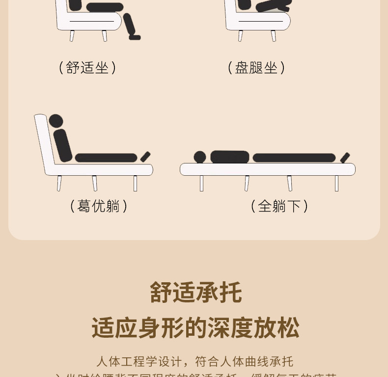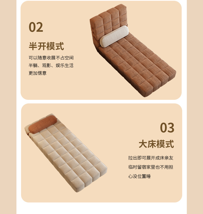 크림색 소파베드 접이식 겸용 2025 소형 거실용 분리 세탁 가능 다기능 접이식 침대 블록형스토어 가기