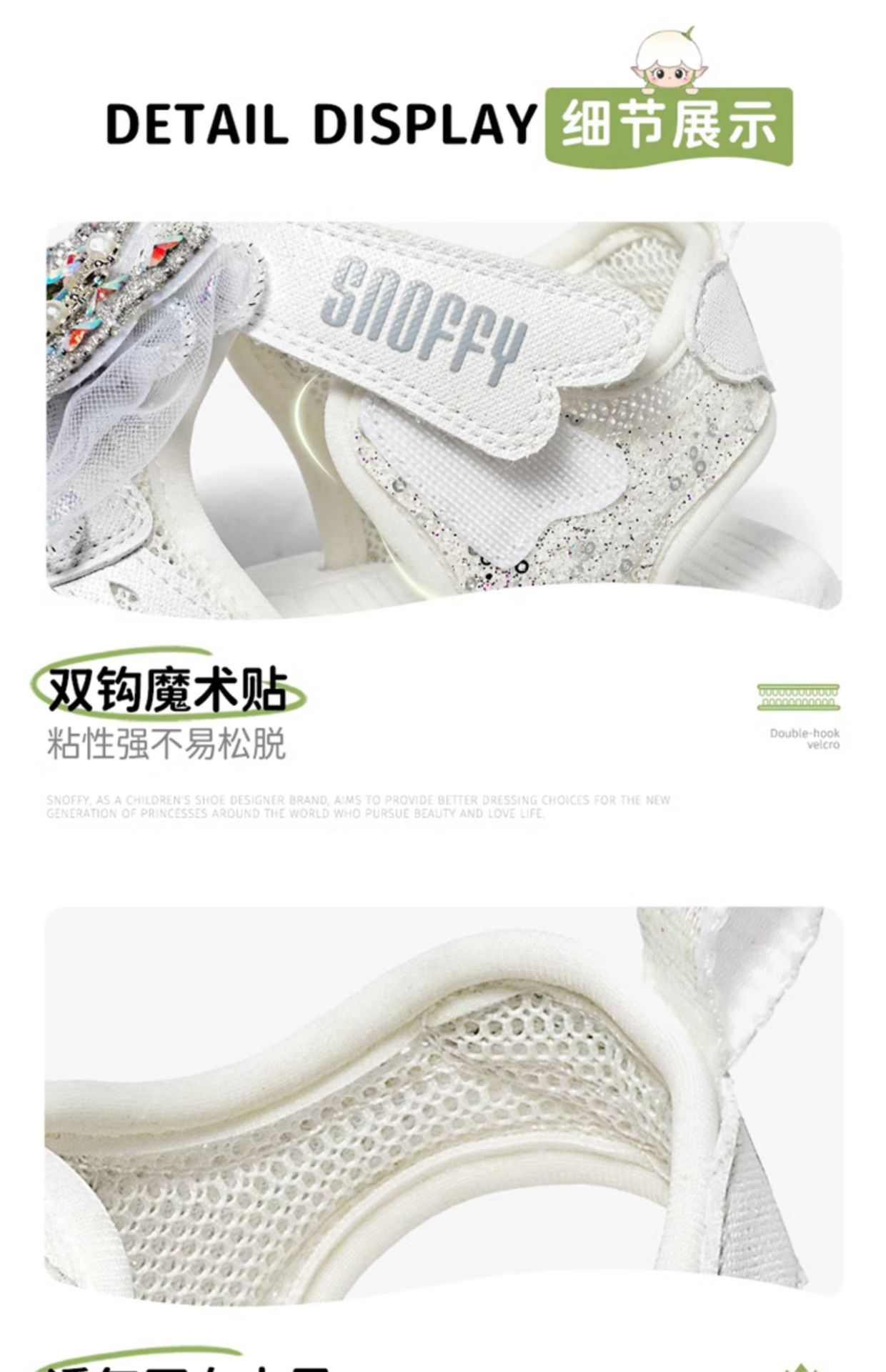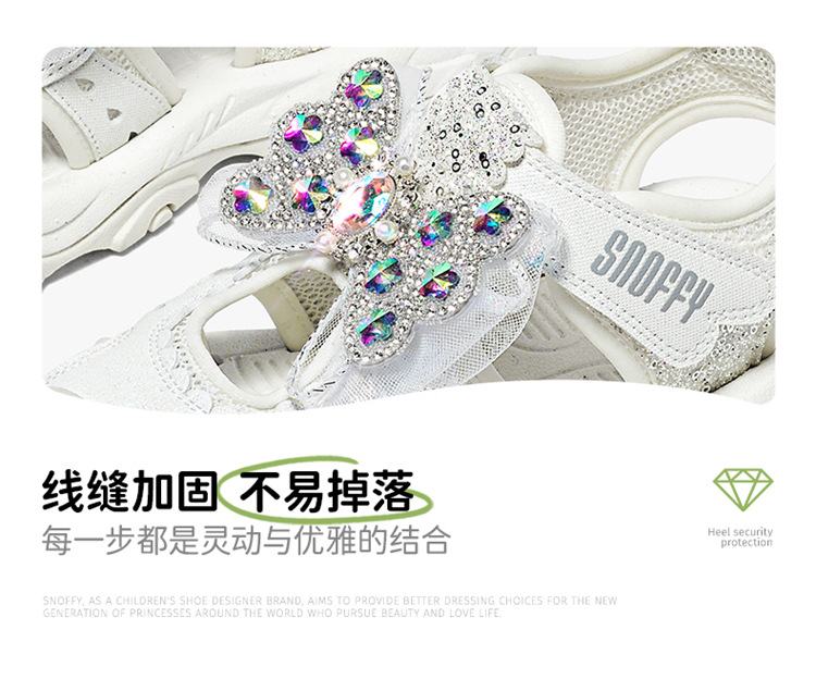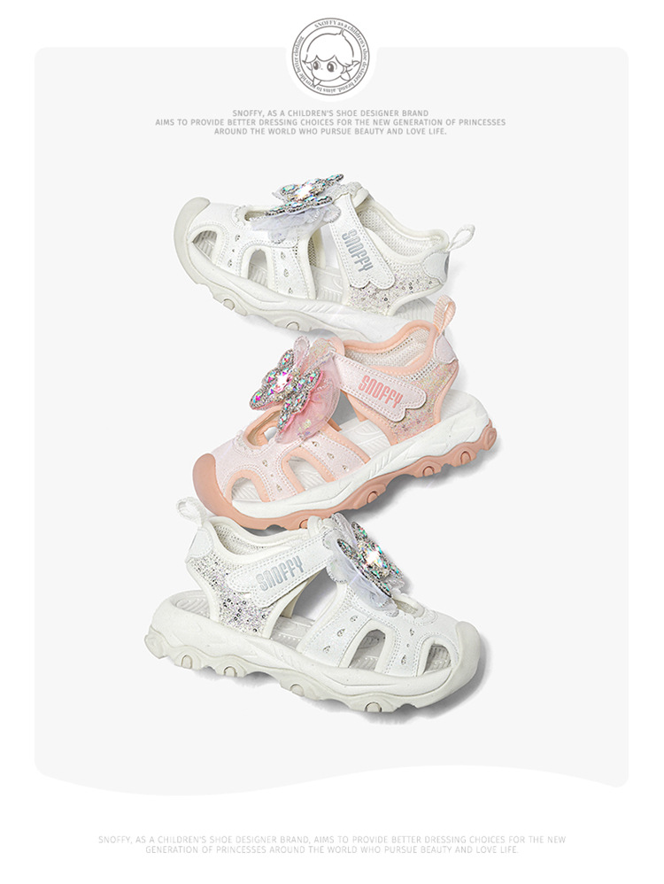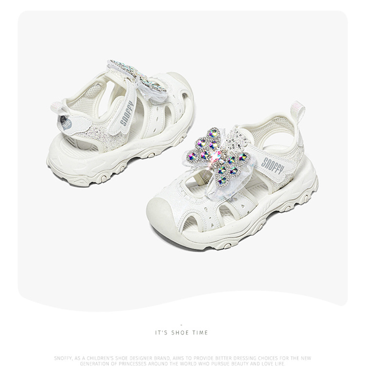 Snafi Girls Sandals 2025 여름 새로운 Rhinestone Princess 신발 야외 추적 레저 워터 Baotou 샌들스토어 가기