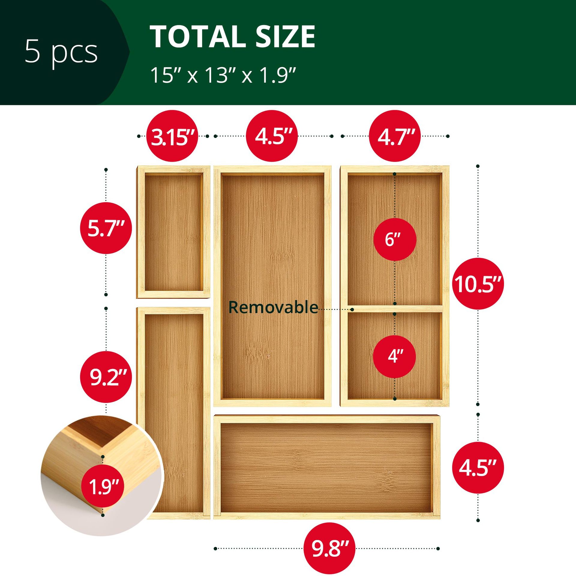 대나무 나무 데스크탑 저장 상자 간단한 서랍 구획 저장 상자 주방 식기 저장 상자 단단한 나무 저장 상자
