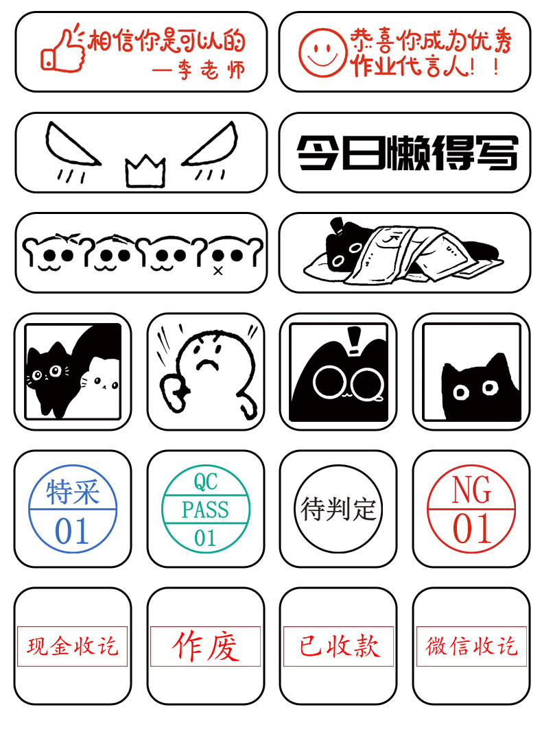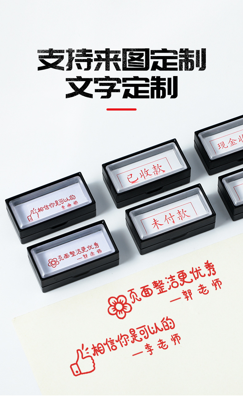 사각형 휴대용 소형 스탬프, 빠른 건조 감광성 스탬프, DIY 수첩 만화 교사 평가 스탬프