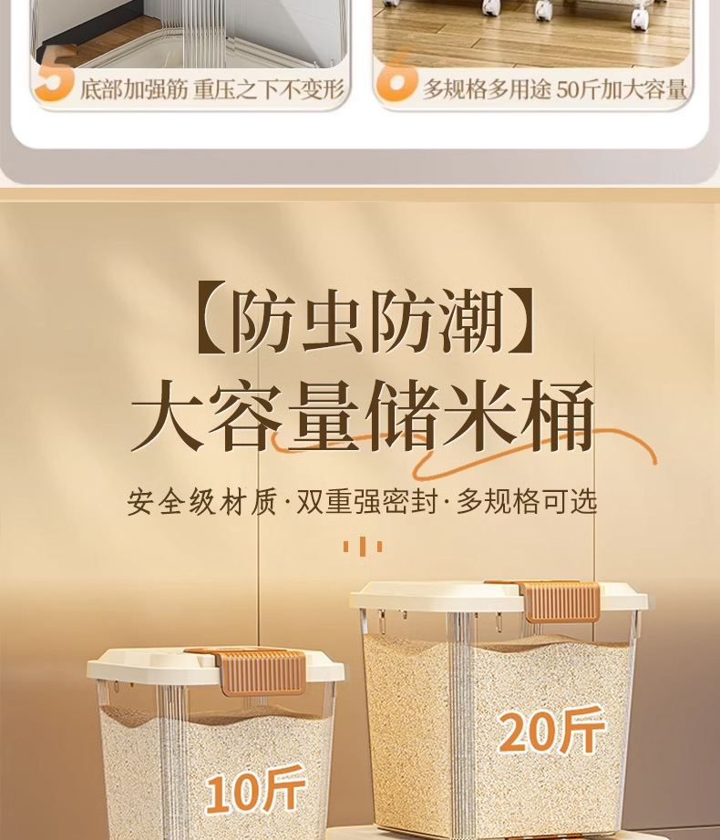 투명 쌀통, 방충 및 방습 밀봉 쌀 저장 용기, 가정용 다기능 쌀통, 두꺼운 곡물 및 밀가루 통