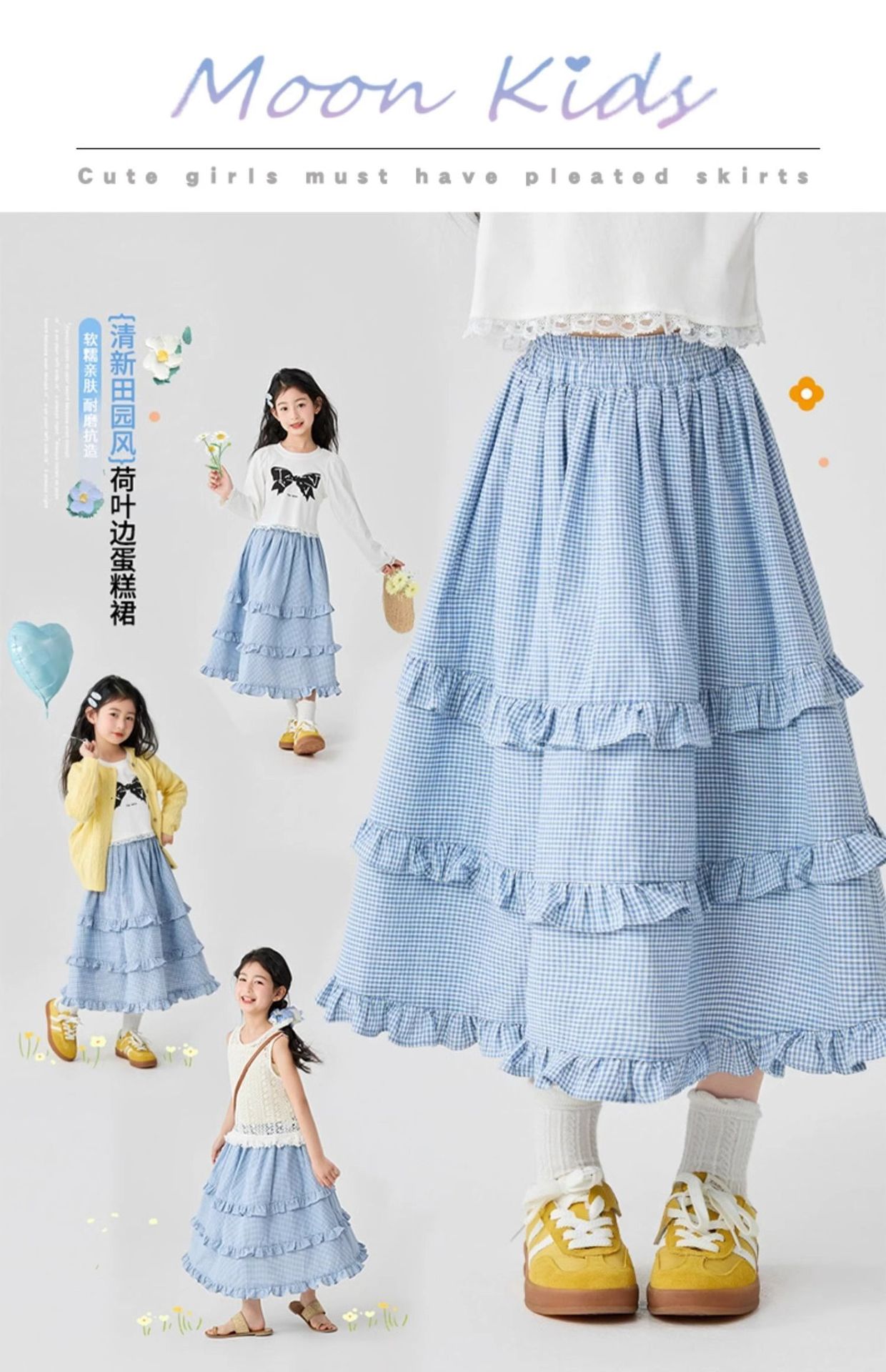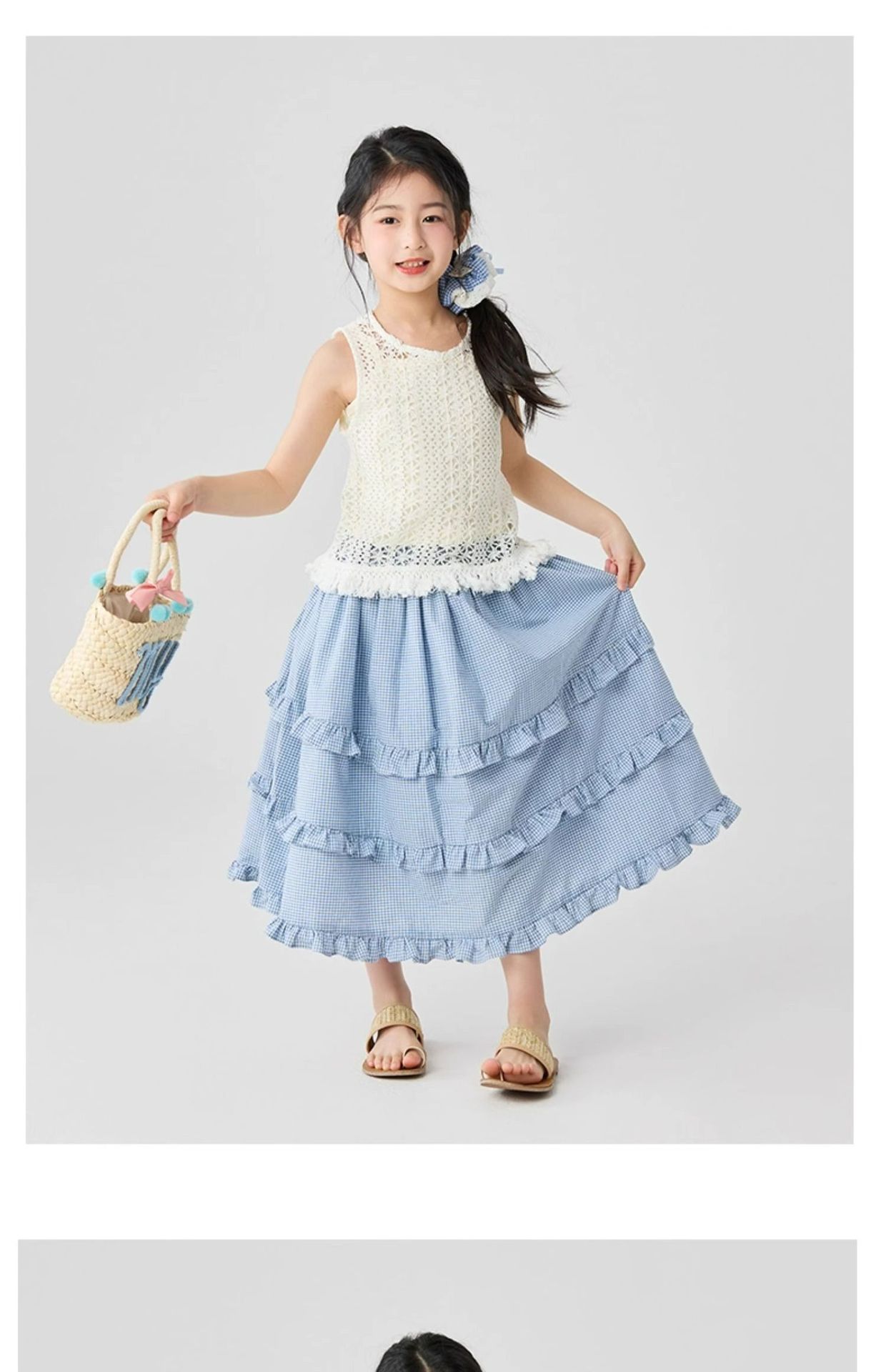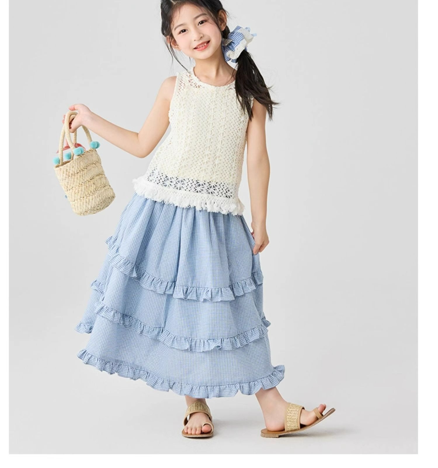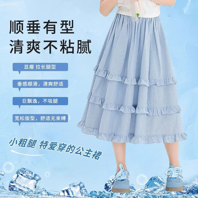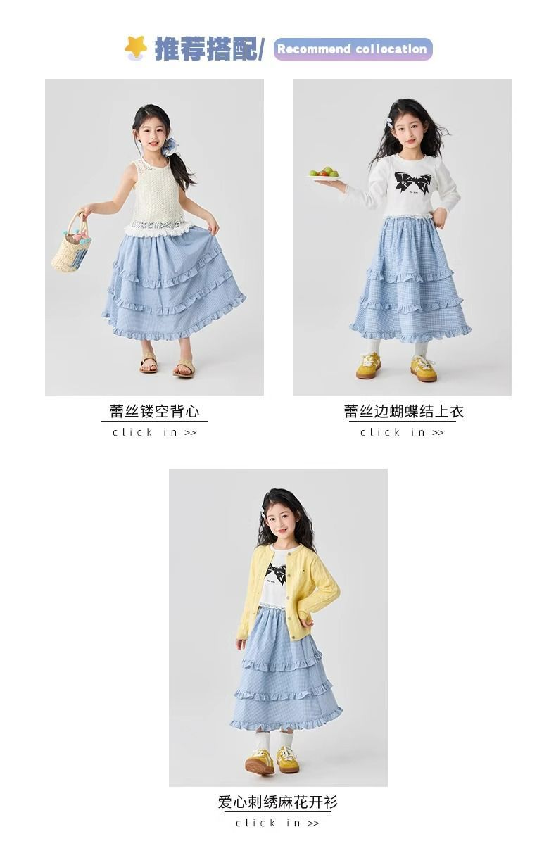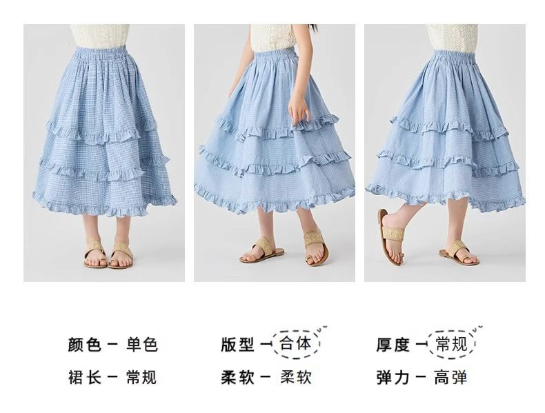 소녀 스커트 봄과 가을 어린이 서양식 러플 스커트 여성용 대형 어린이 격자 무늬 중장 케이크 스커트