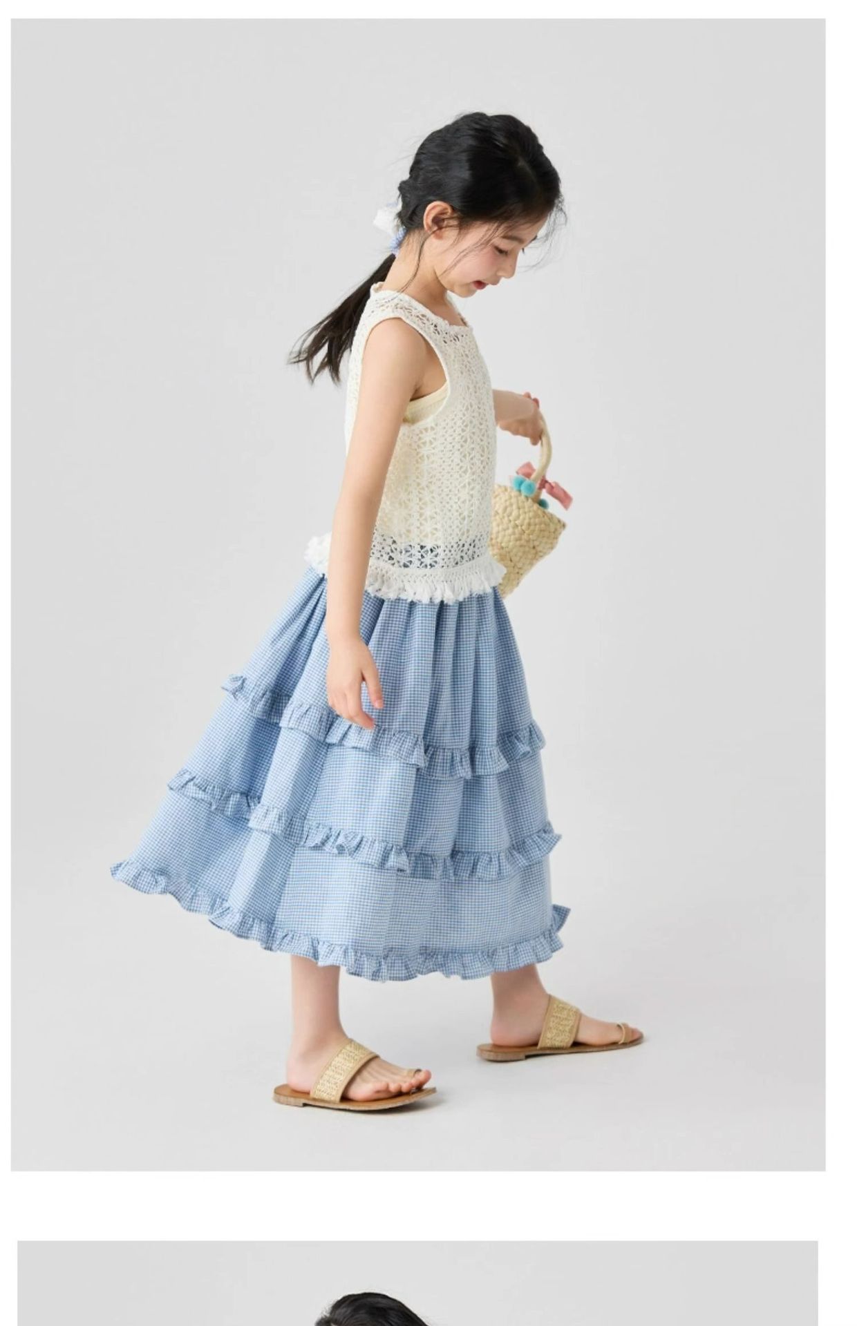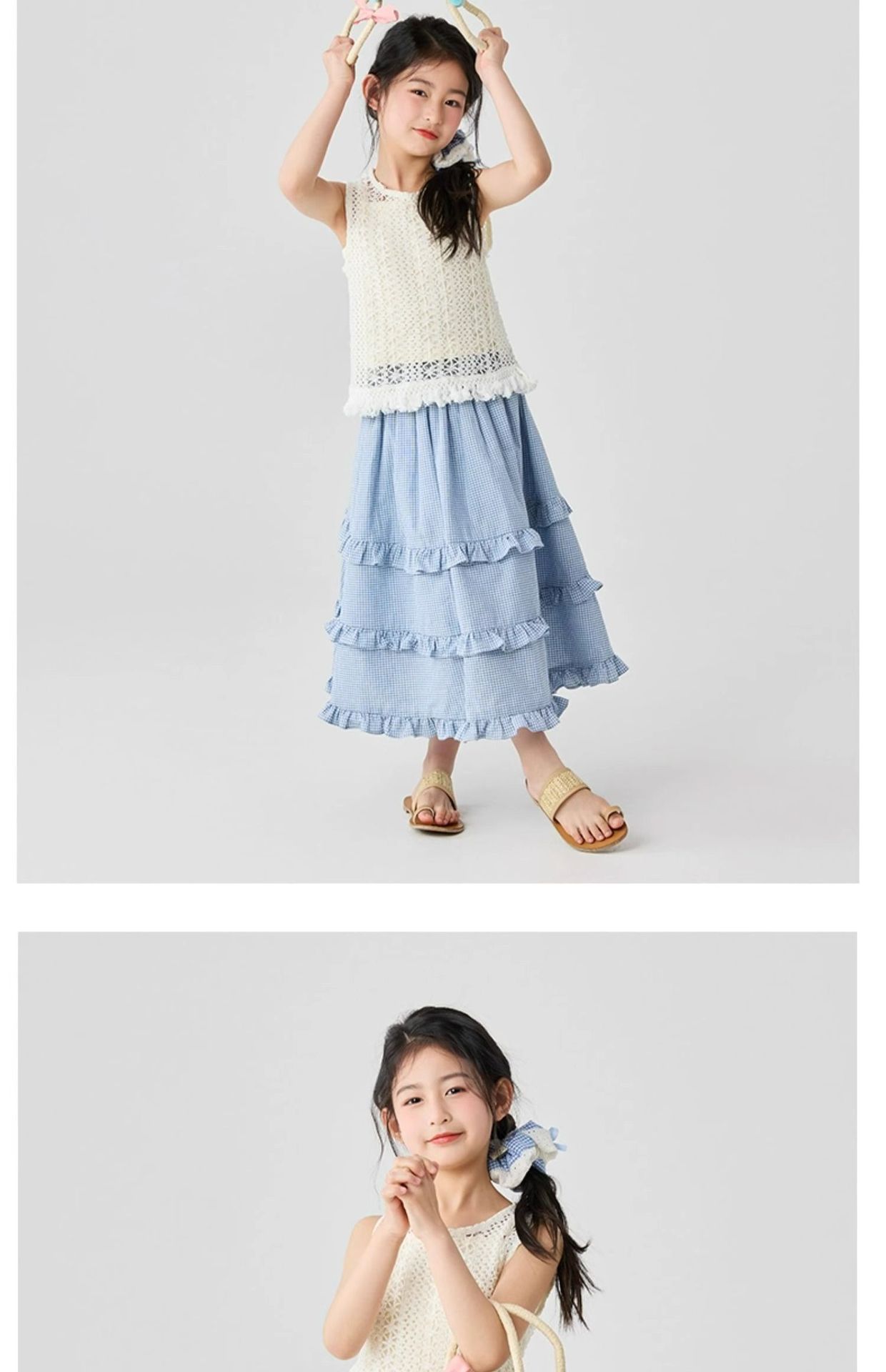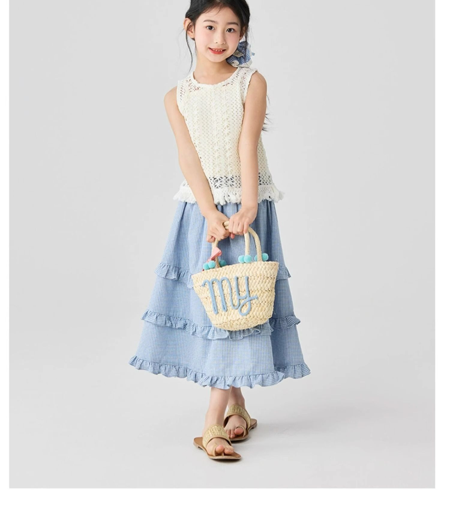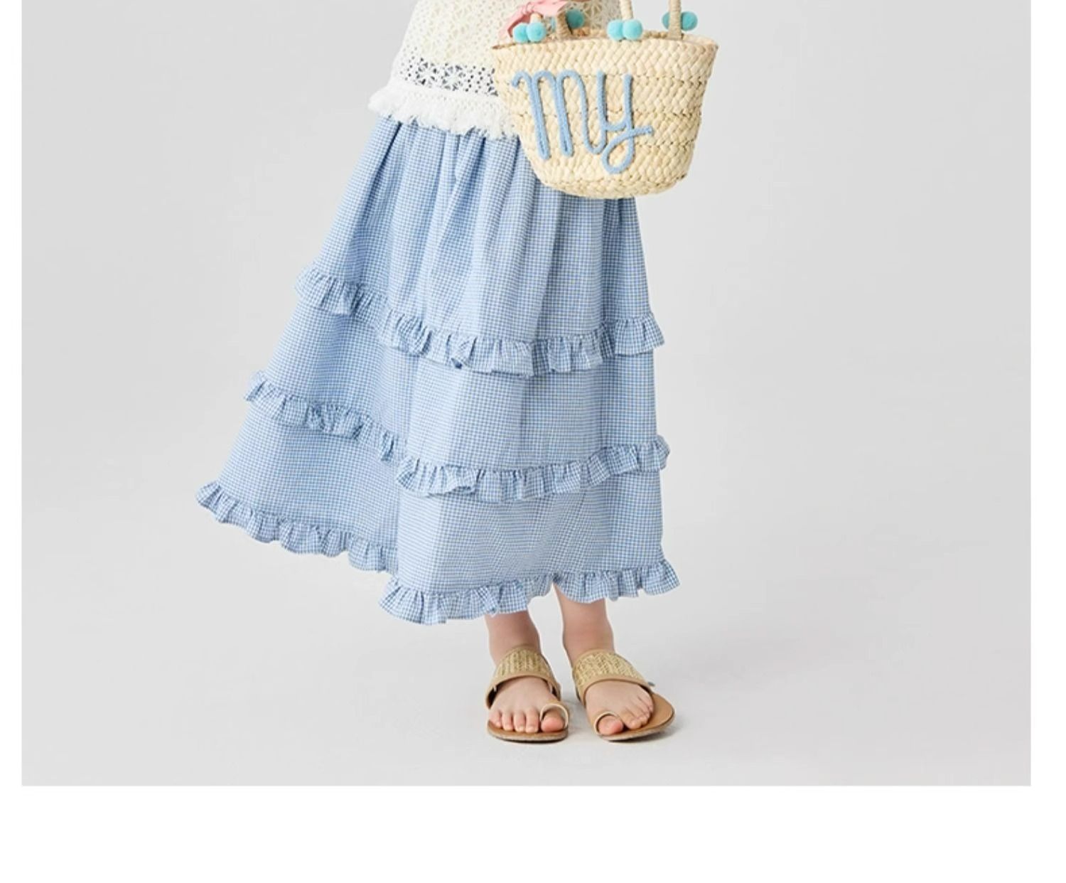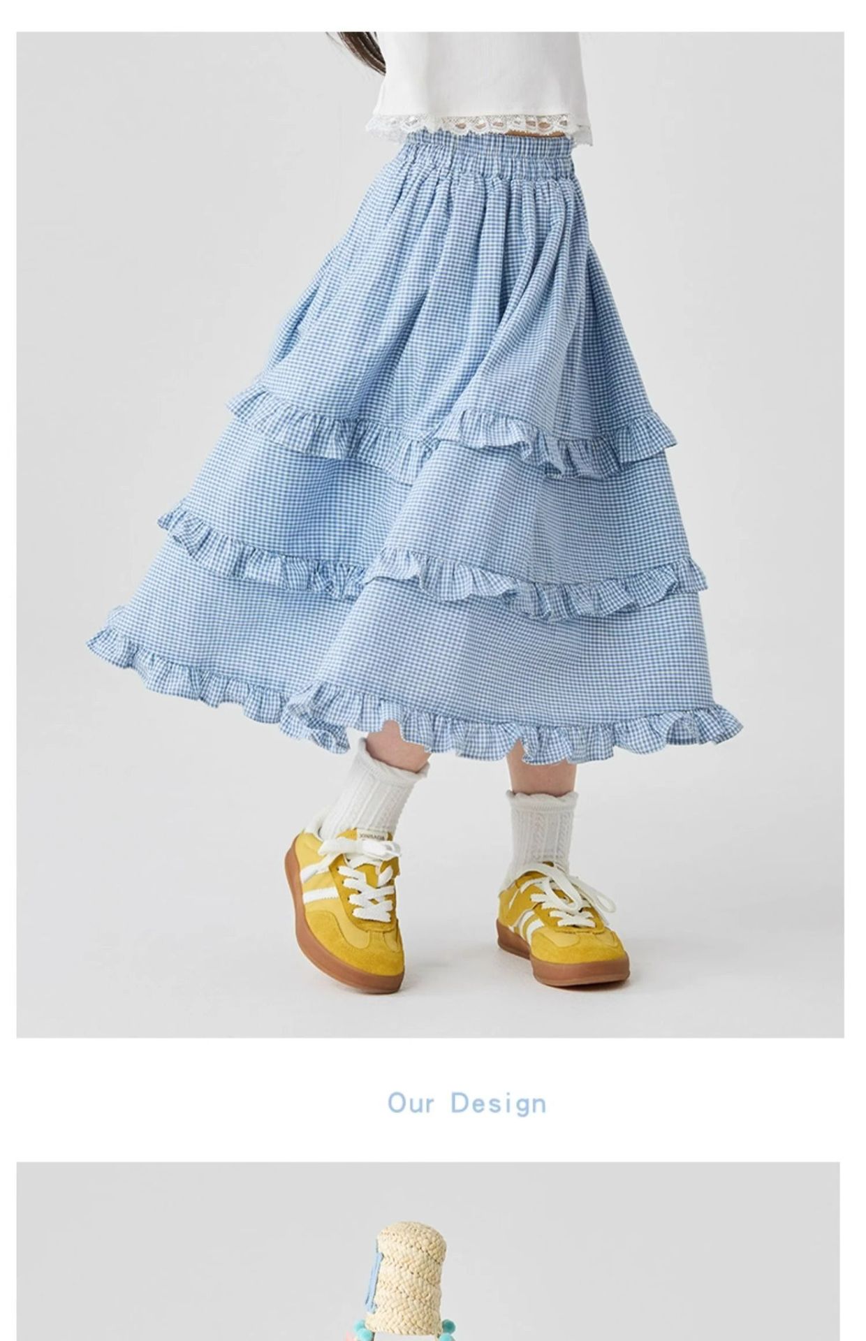 소녀 스커트 봄과 가을 어린이 서양식 러플 스커트 여성용 대형 어린이 격자 무늬 중장 케이크 스커트