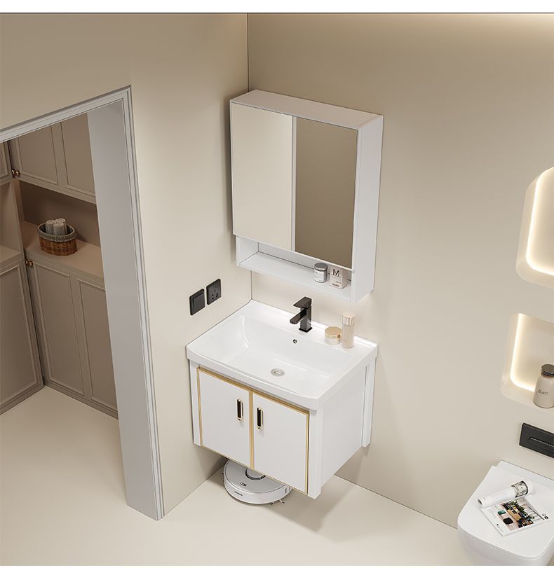 • 거울이 달린 수납장 [일반 고화질 거울]-크림 화이트/61*40 세라믹 일체형 세면대