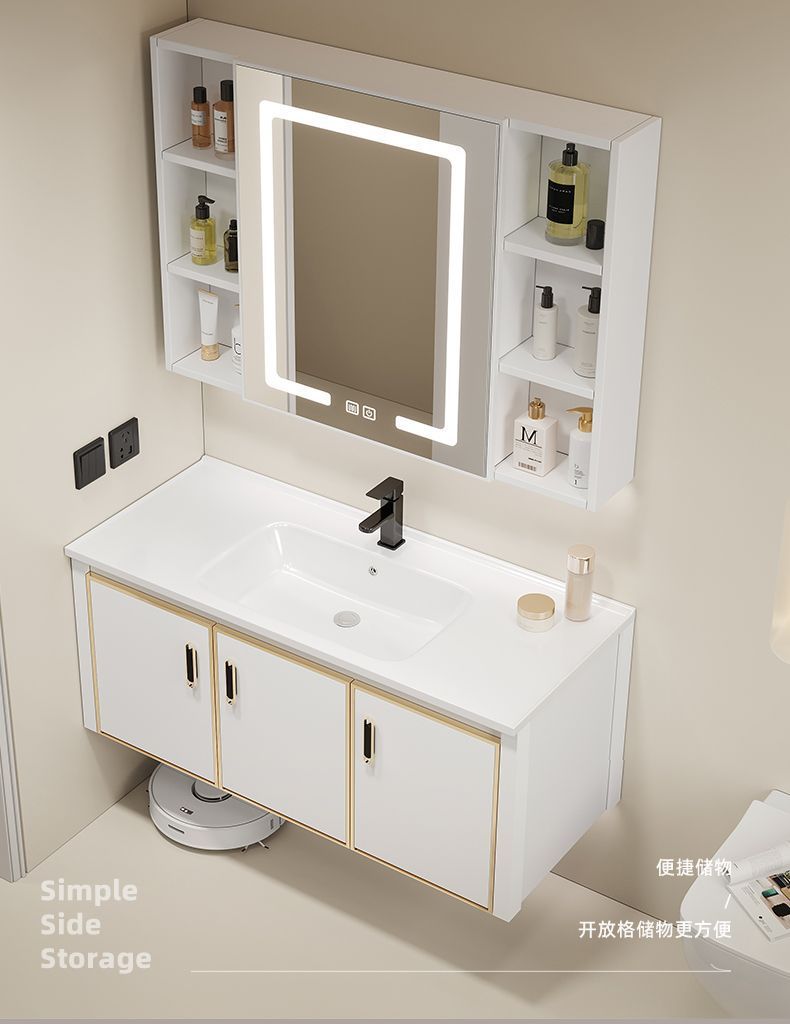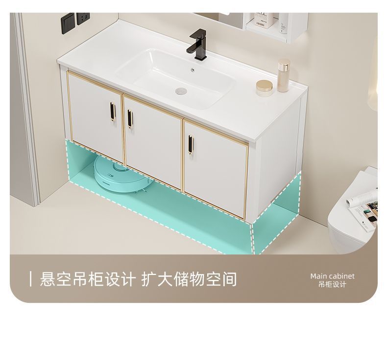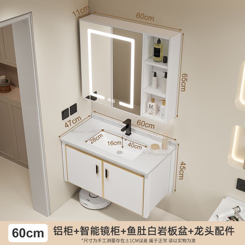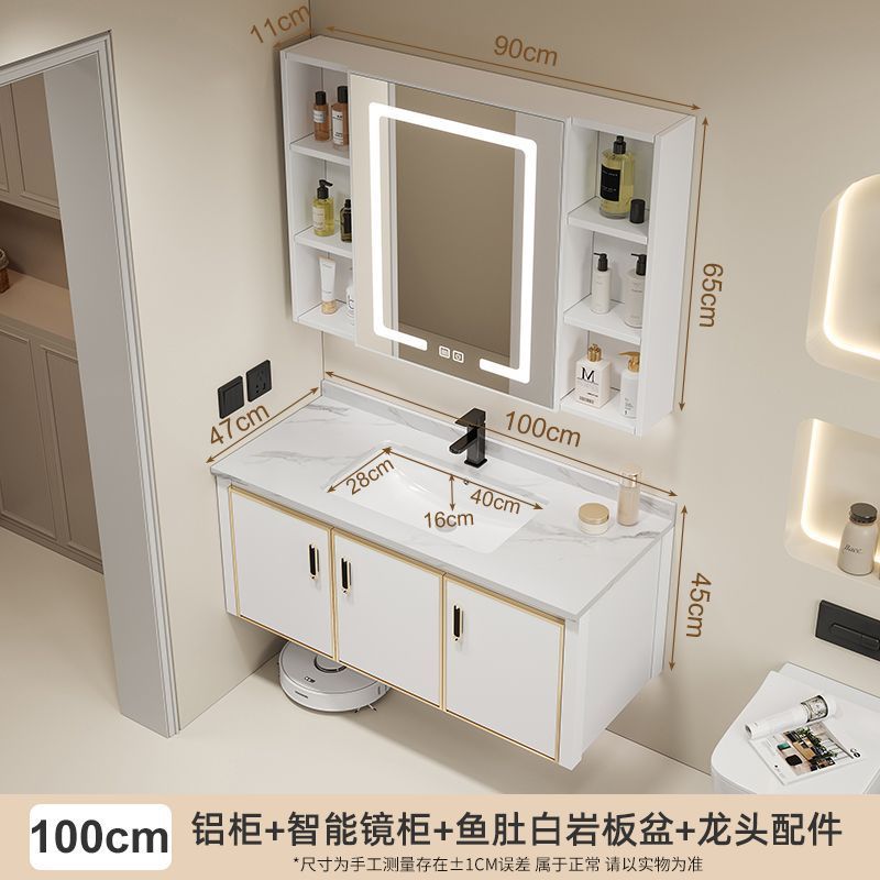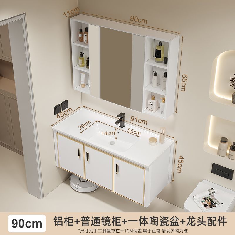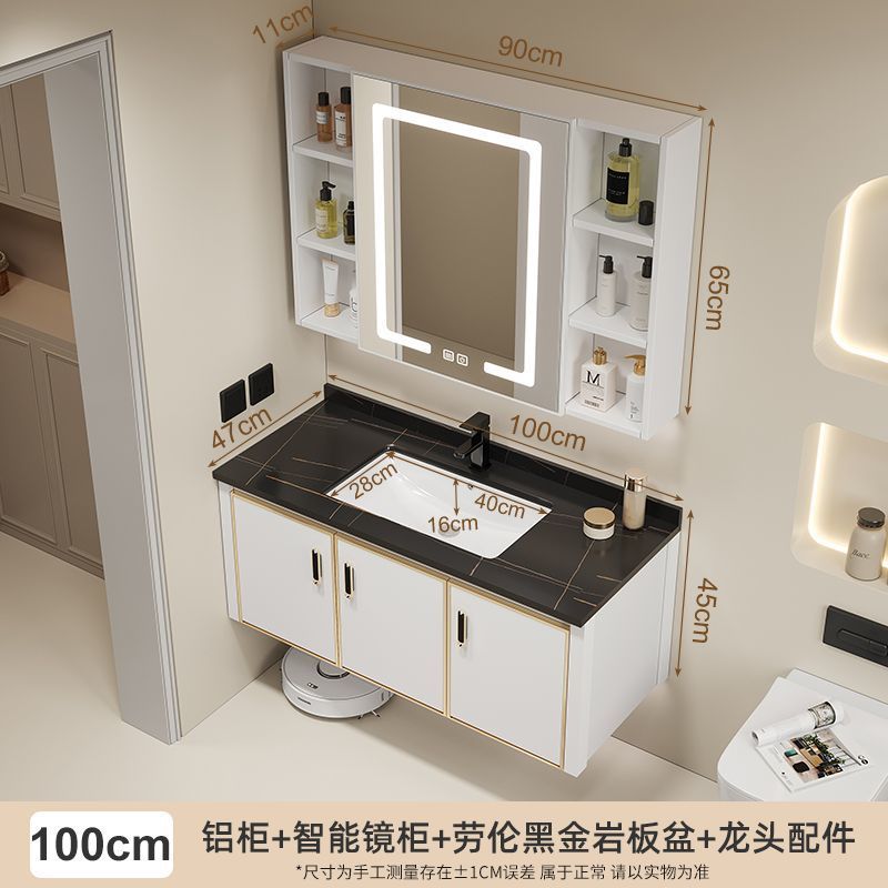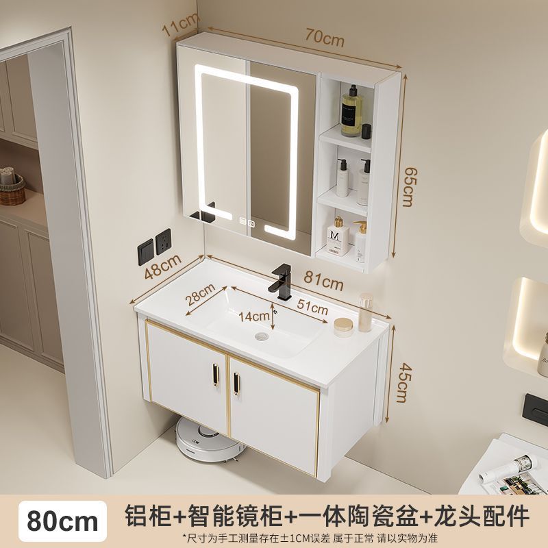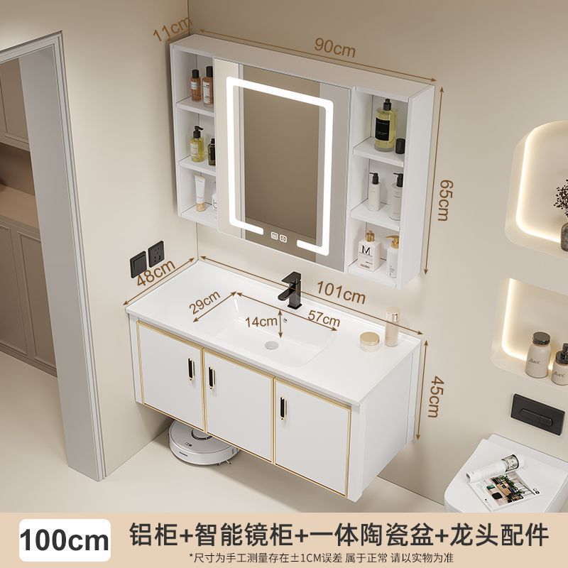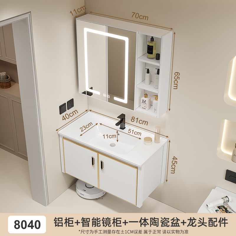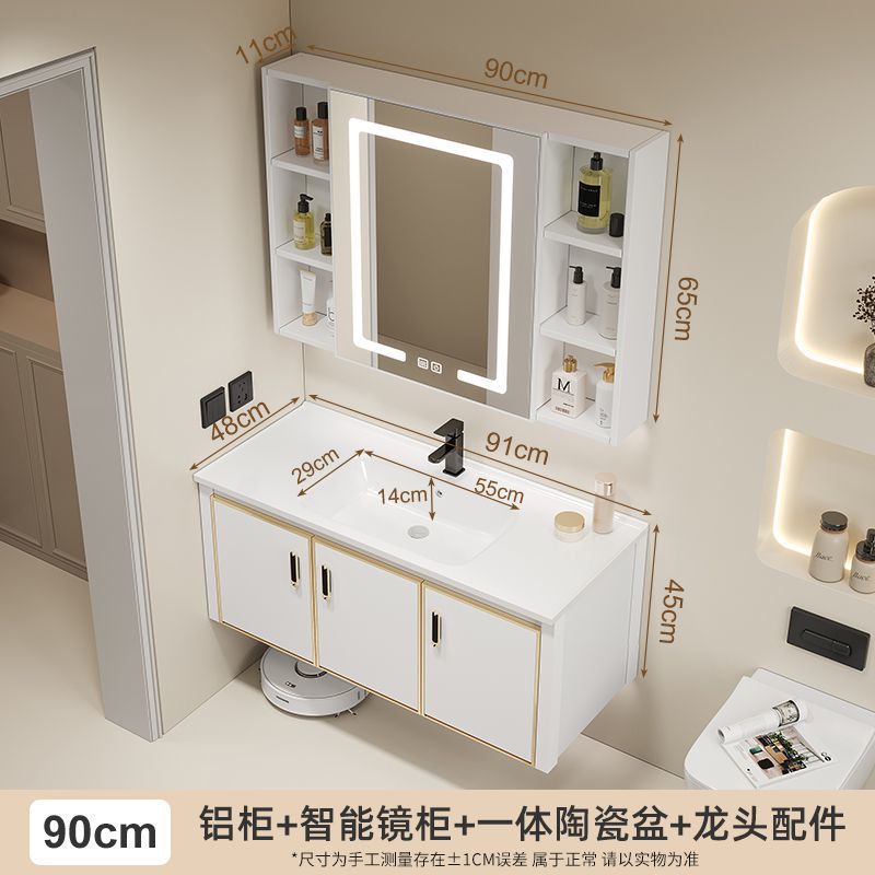 공간 알루미늄 욕실 캐비닛 세면기 내각 조합 욕실 세라믹 올인원 분지 세면대 싱크대 스마트 미러 캐비닛스토어 가기