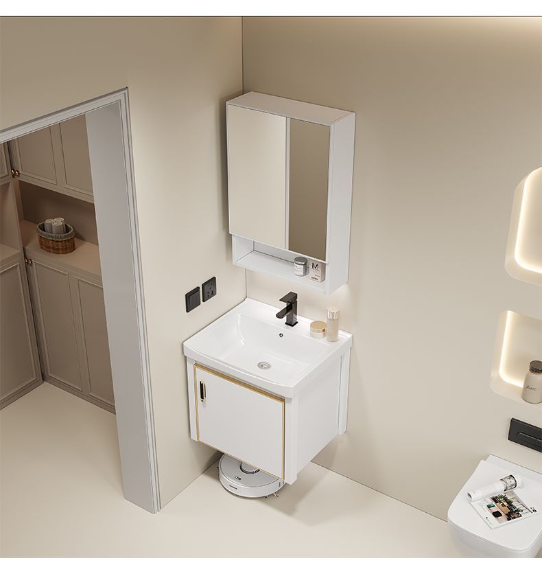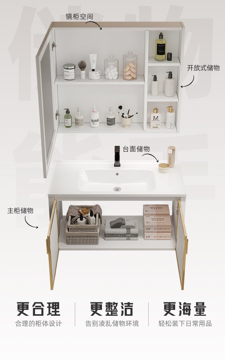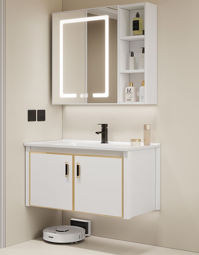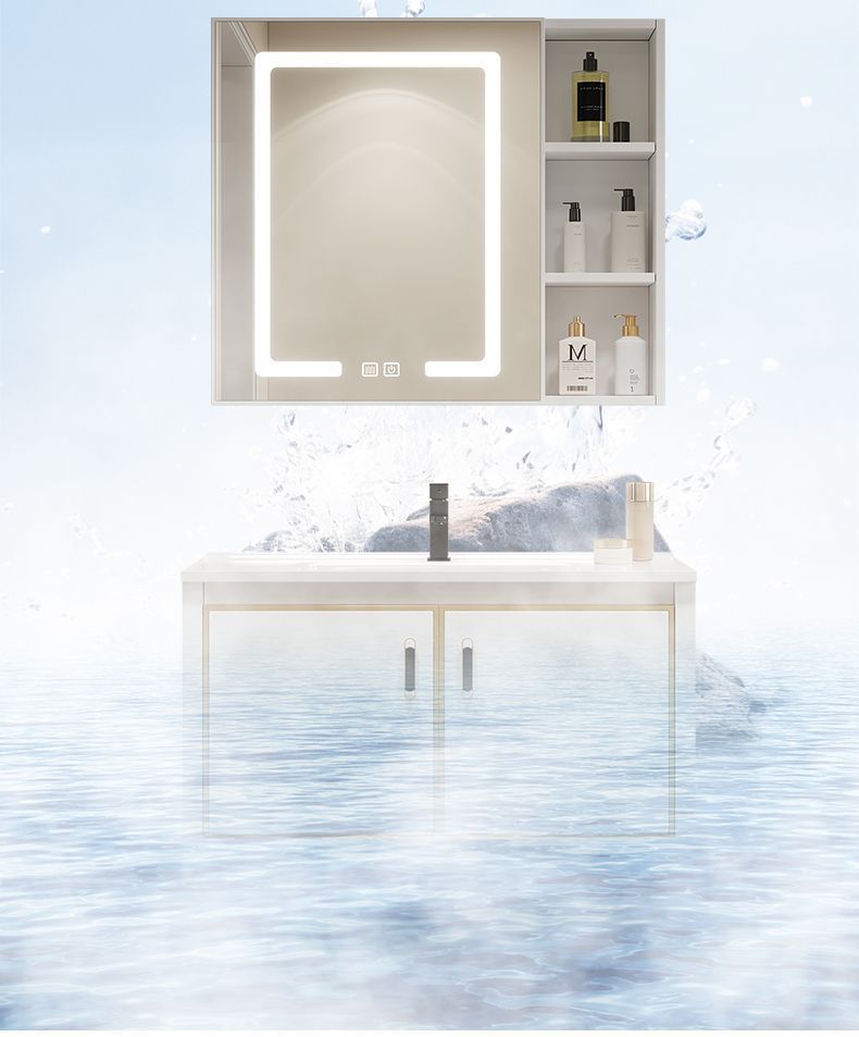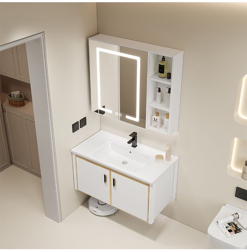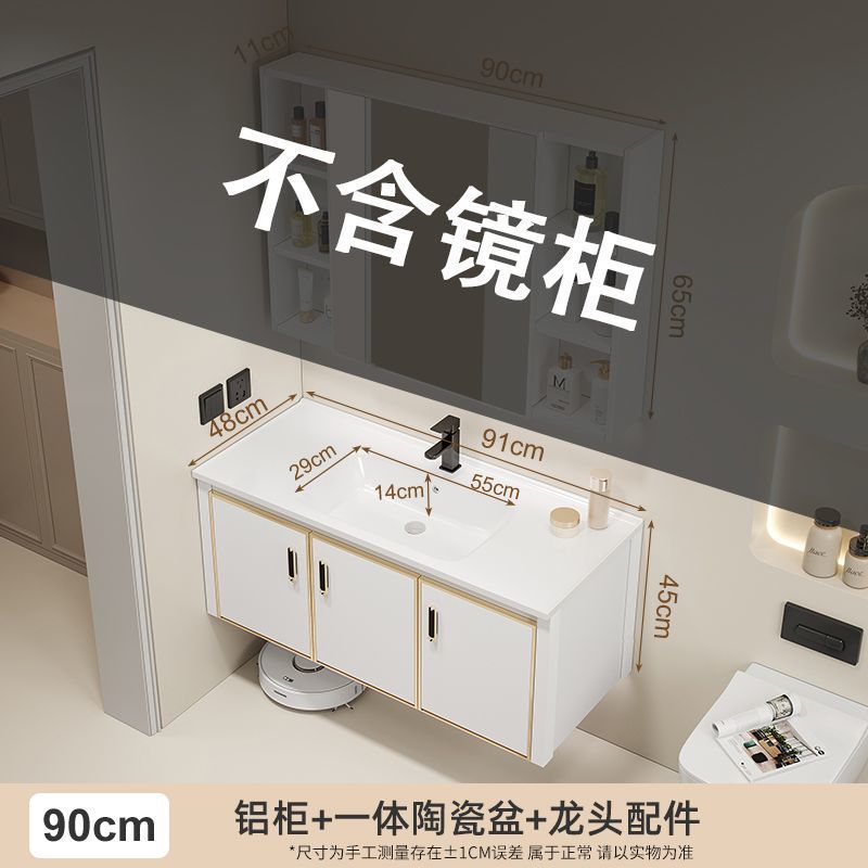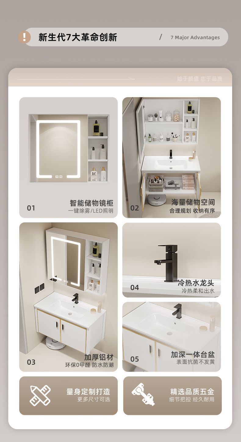 공간 알루미늄 욕실 캐비닛 세면기 내각 조합 욕실 세라믹 올인원 분지 세면대 싱크대 스마트 미러 캐비닛스토어 가기