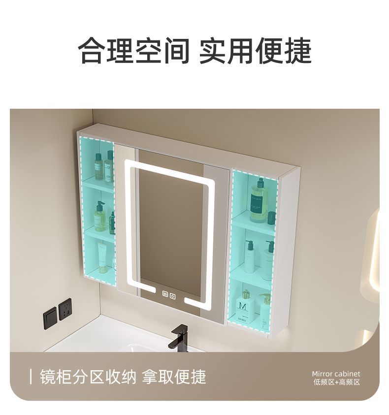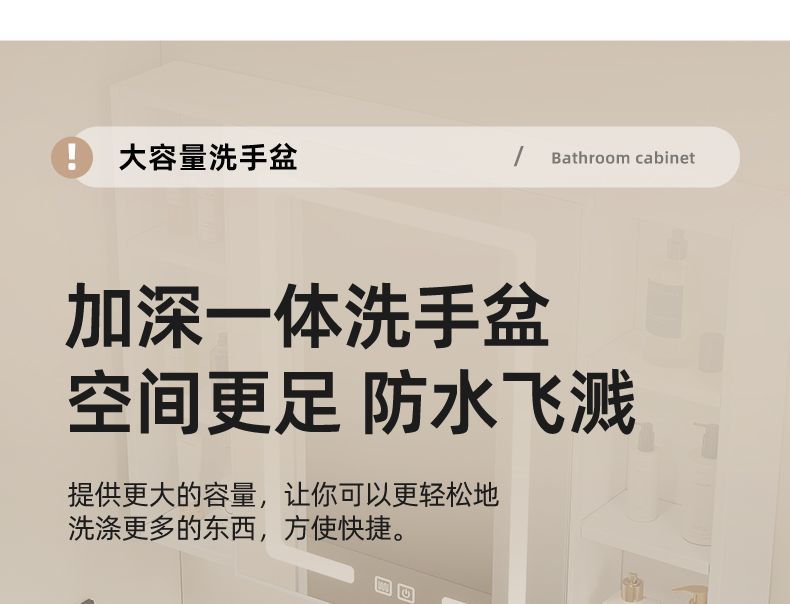• 거울이 달린 수납장 [조명 김서림 방지 거울]-크림 화이트/81*48 세라믹 일체형 세면대