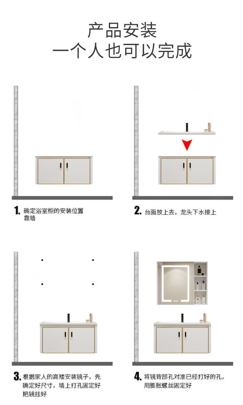• 거울이 달린 수납장 [일반 고화질 거울] - 크림 화이트/81*48 세라믹 일체형 세면대